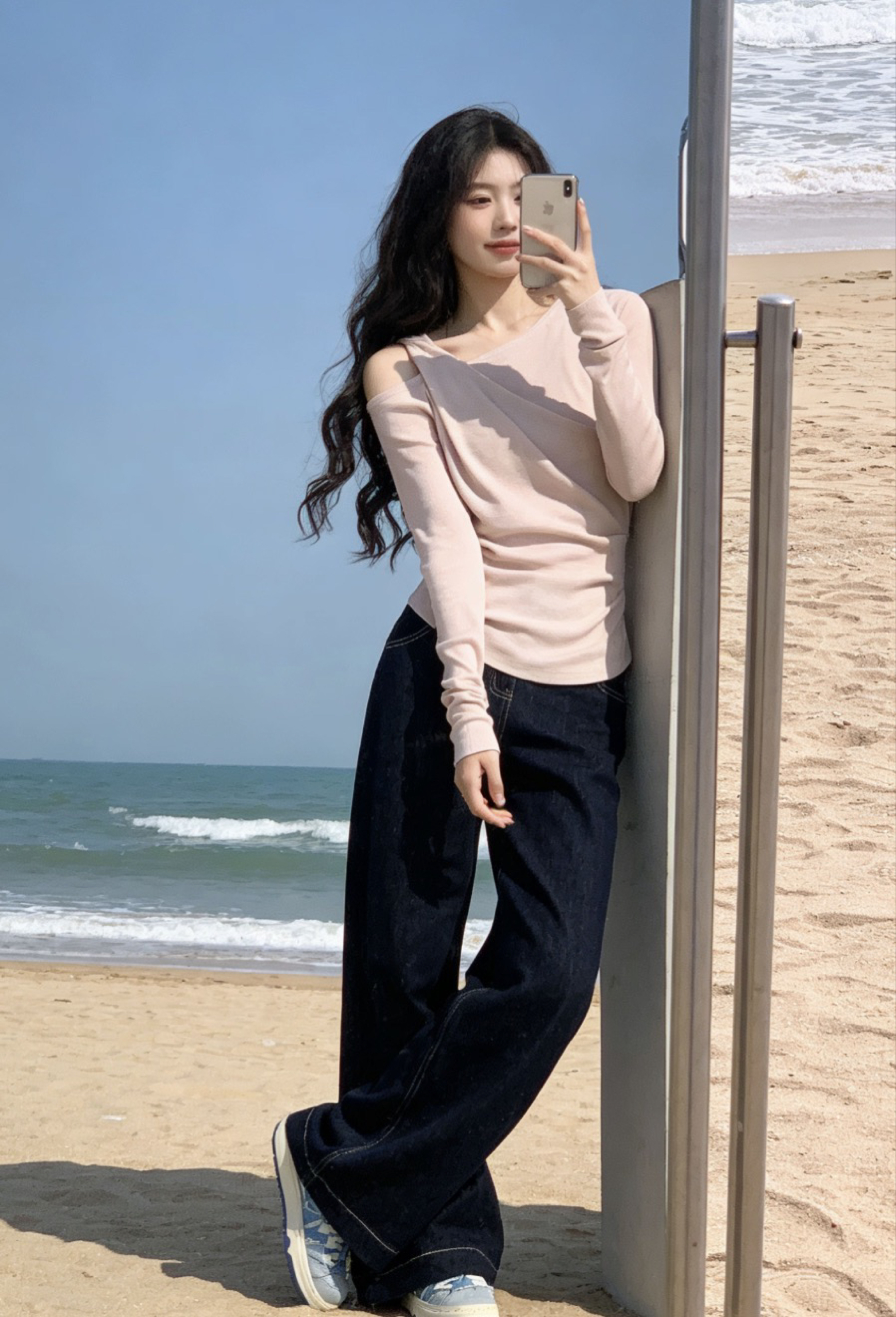 今日穿搭 粉色长袖露肩上衣➕阔腿裤 青春气息满满 元气少女穿搭 休闲舒适 又露肩的小性感拿捏🤏🏻