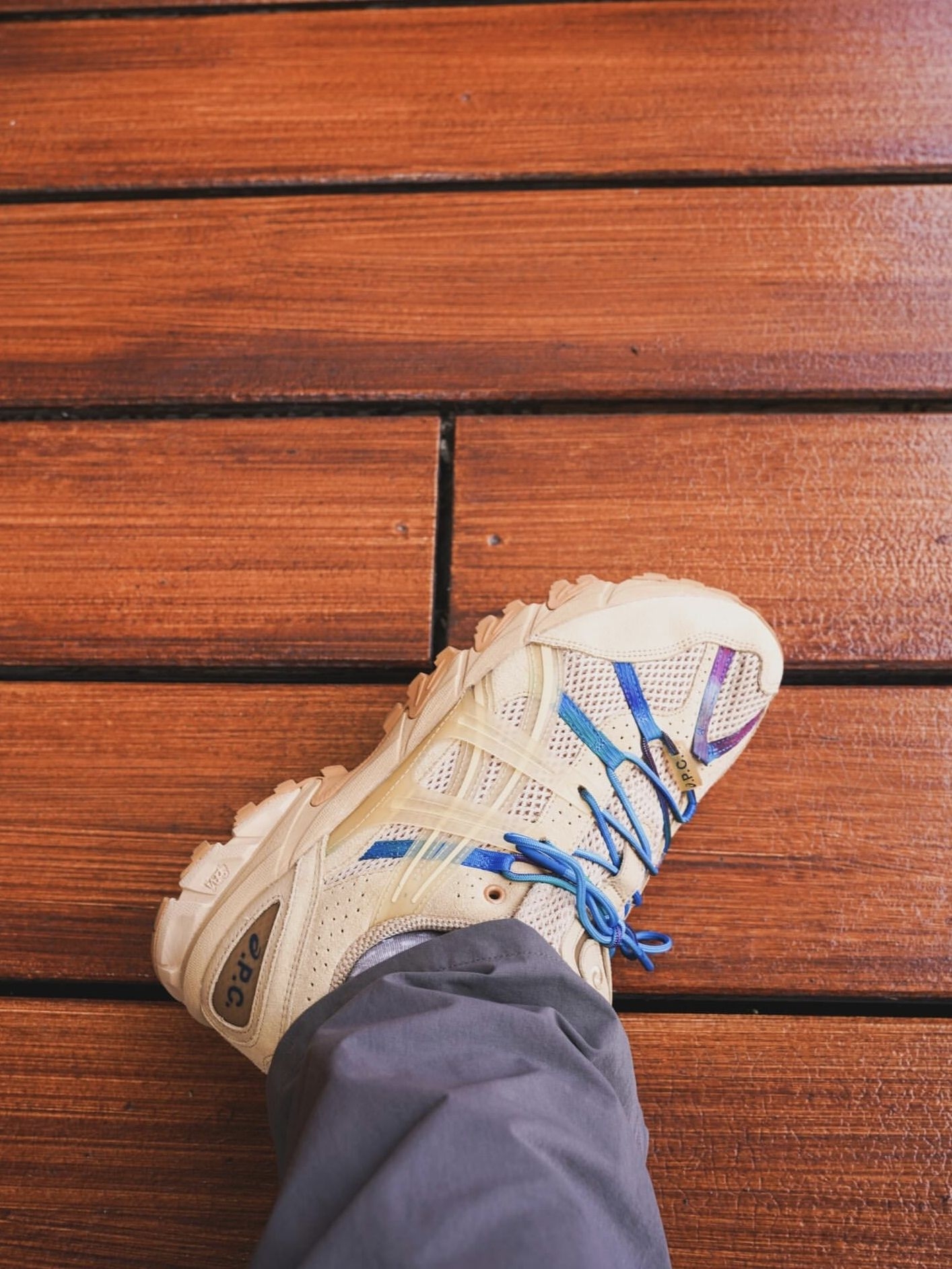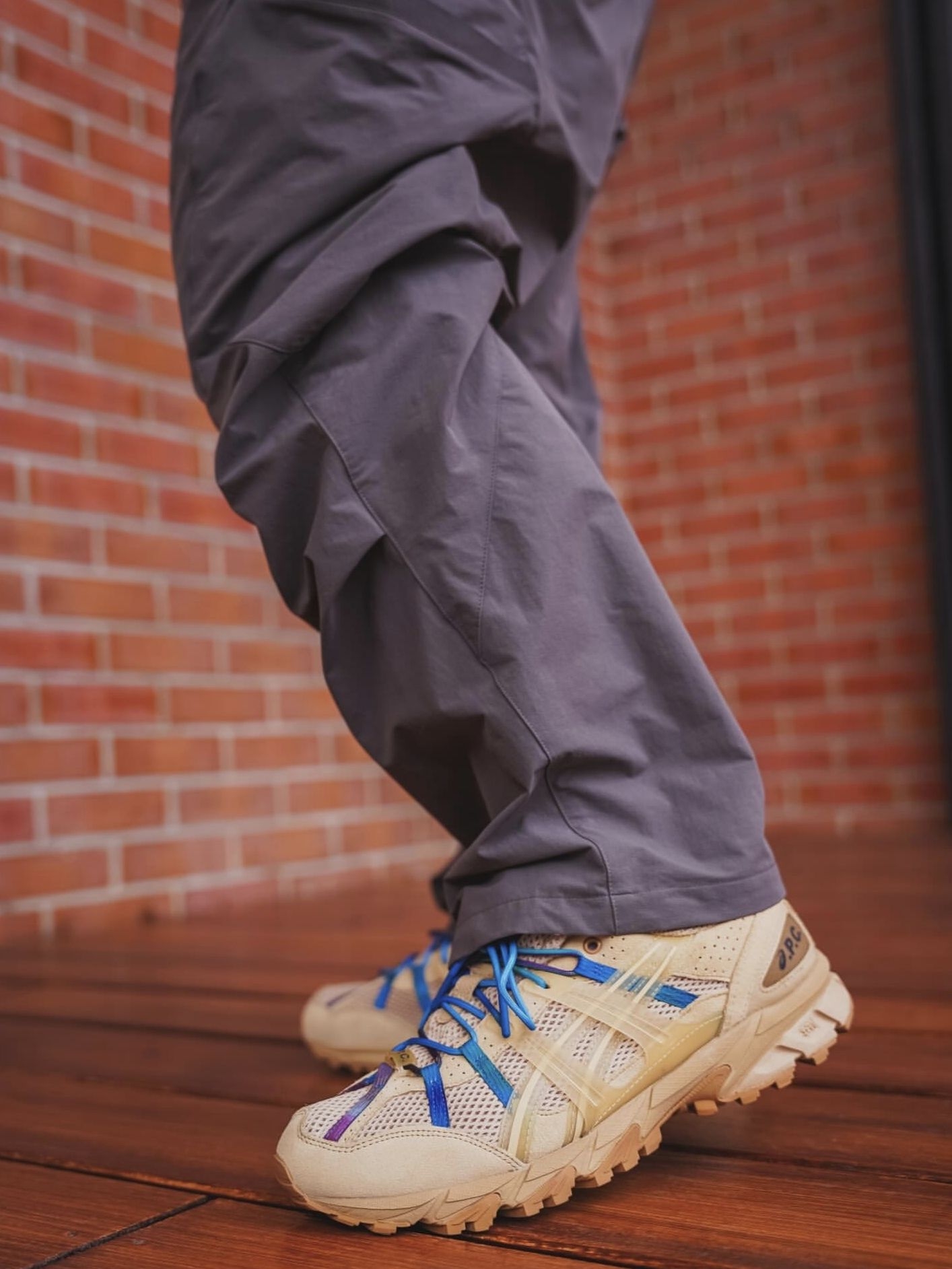 我直呼耐看,这双联名款把法式极简和户外机能感揉得恰到好处,沙色皮革+网布拼接,搭配渐变蓝鞋带与侧条,在红砖墙与木地板的映衬下,质感被拉满,是小众鞋头里越穿越有味道的狠角色。 选这双鞋的原因 - 联名质感拉满:A.P.C.与Asics的强强联手,沙色皮革细腻温润,网布透气清爽,渐变蓝细节低调点缀,没有多余设计却尽显法式极简美学,辨识度拉满。 - 脚感舒适实用:Gel缓震科技加持,中底回弹柔和,锯...
