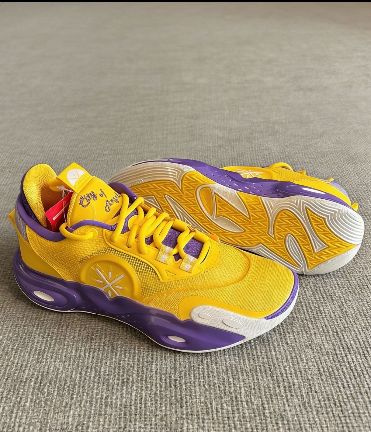 这双鞋的紫金配色真的戳我!上脚很轻便,网面透气不闷脚✨ 包裹性不错,打球时脚感稳,日常出街也吸睛~ 穿了快两周,鞋底耐磨度在线,性价比很可👍