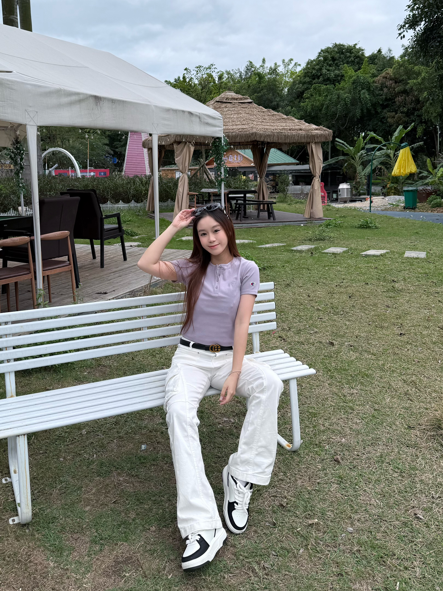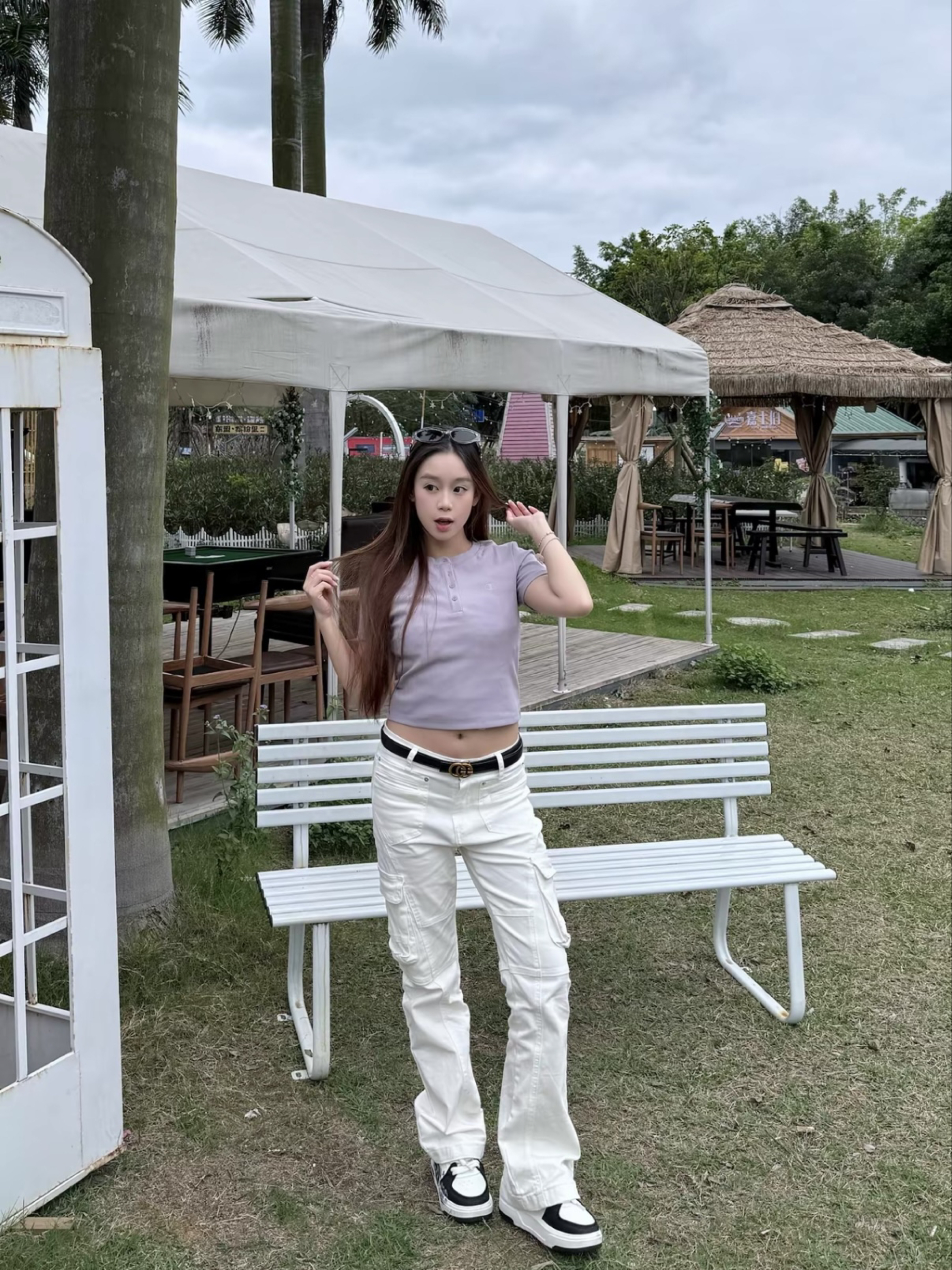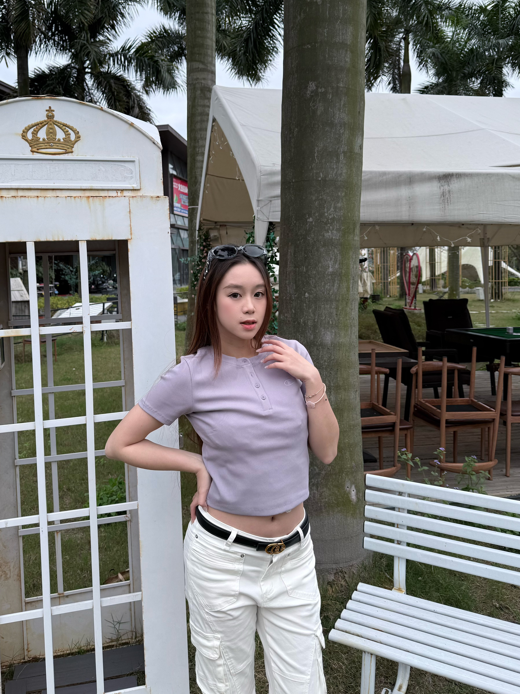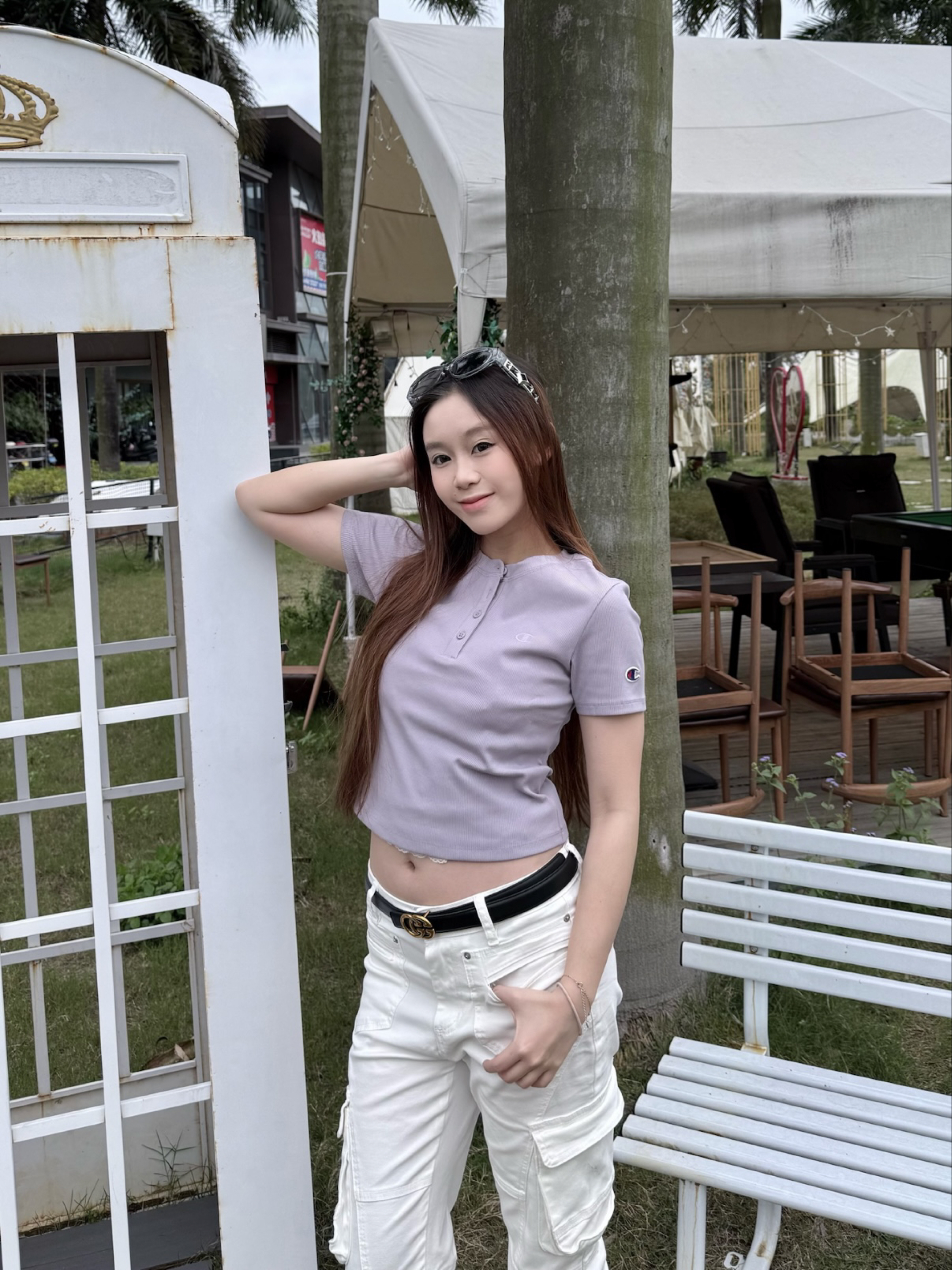开春穿的太素,就得靠腰带把穿搭搞起来 给大家推荐cheekkiss这条小腰带 细带设计就很适合女孩子👧🏻 金色logo很高级大气 今天一套是纯色穿搭 上衣冠军紫色短款 下面搭配白色牛仔裤👖 再戴上这条腰带整体看起来就很精致啦~