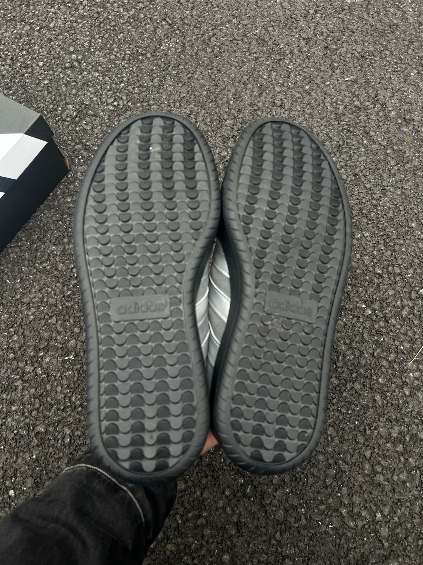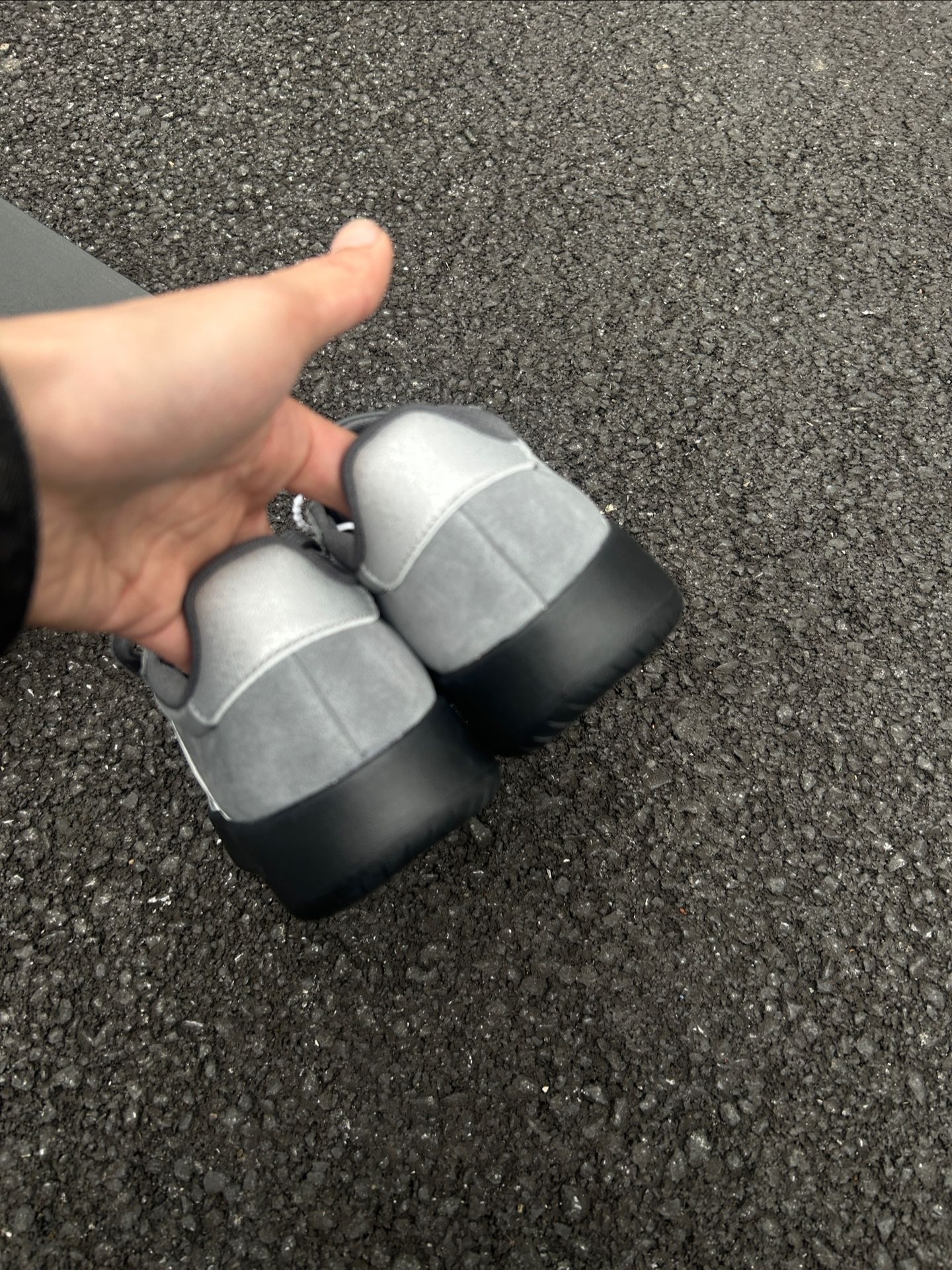 今天来说一下这双阿迪达斯德训鞋 几个大家都会想要问的问题吧~ 颜色是深灰色 鞋底厚度约3cm,鞋底是橡胶大底 宽脚建议买大一码,包裹更舒适,脚型偏窄直接正码正拍,不用纠结!上脚走久了也不磨脚 配牛仔裤、休闲裤、运动裤都不违和! 麂皮材质雨天慎穿,容易吸水留痕;日常打理用软毛刷轻刷即可~ 颜值直接看图~ #时尚爆品推手 #此人鞋商极高 #单鞋拿捏春日氛围感 #马年限定穿这双 #就是个板鞋脑袋