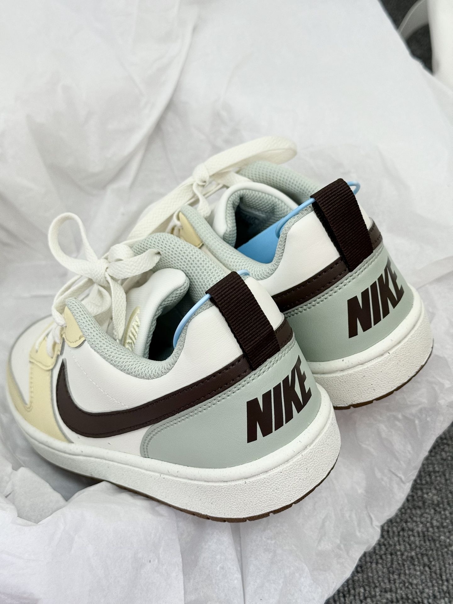 谁懂啊!这双Nike奶油板鞋直接把春天穿在脚上了🍃 奶fufu的米黄+干净米白+温柔薄荷绿+复古摩卡棕,配色像一块融化的香草薄荷慕斯,软乎乎的太治愈了! 鞋型是经典的Court Borough,微宽鞋头不挤脚,还能悄悄修饰脚型,搭牛仔裤、百褶裙、运动裤都超绝,妥妥的春日百搭王! 鞋底软弹有支撑,走路久了也不累,通勤、上学、逛展都能穿,实用性拉满! 细节也很戳人:棕色Swoosh复古又高级,后跟薄荷...