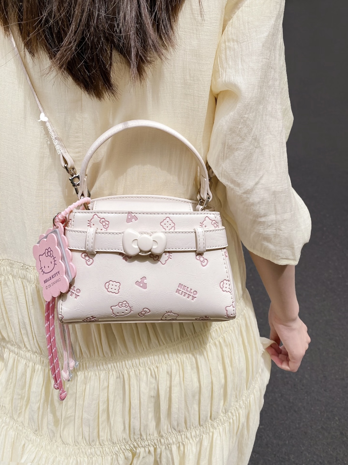 背出门被追着问的Kitty包!🐱 虽然装不下世界,但装得下耳机、口红和好心情~ 质感在线,双链设计也很贴心 手提是精致小可爱,斜挎是随性少女感 今天配了身白色系穿搭,感觉温柔度刚刚好✨ 你们觉得,它和我的日常风格搭吗?