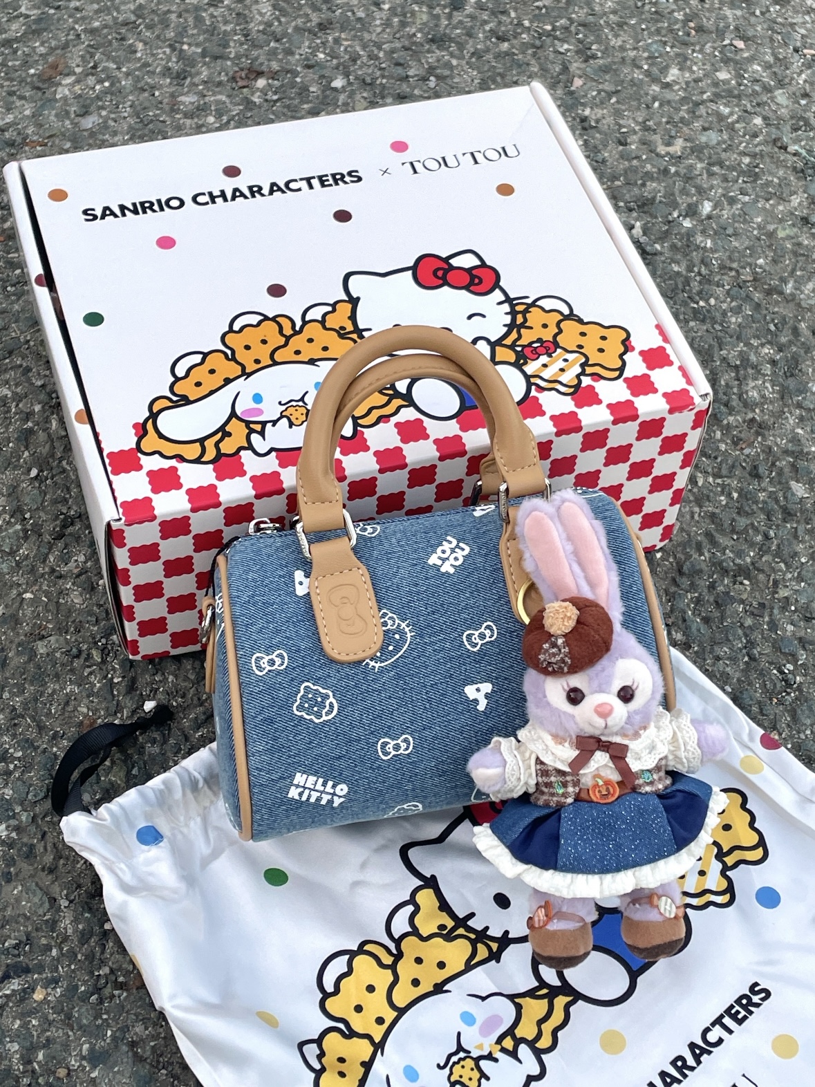 不吹不黑!完全被介只包拿捏住了! 😉真不愧是TOUTOU和hellokitty正版联名~ 满印牛仔印花面料而成的包身 整个炒鸡重工又显质感! 连手腕连接处都是蝴蝶结~妥妥的显档次 kitty+饼干元素挂件~太重工了叭✔️ 还是一年四季百背不腻的款~ 日常怎么到都吼吼看出街回头率杠杠的!
