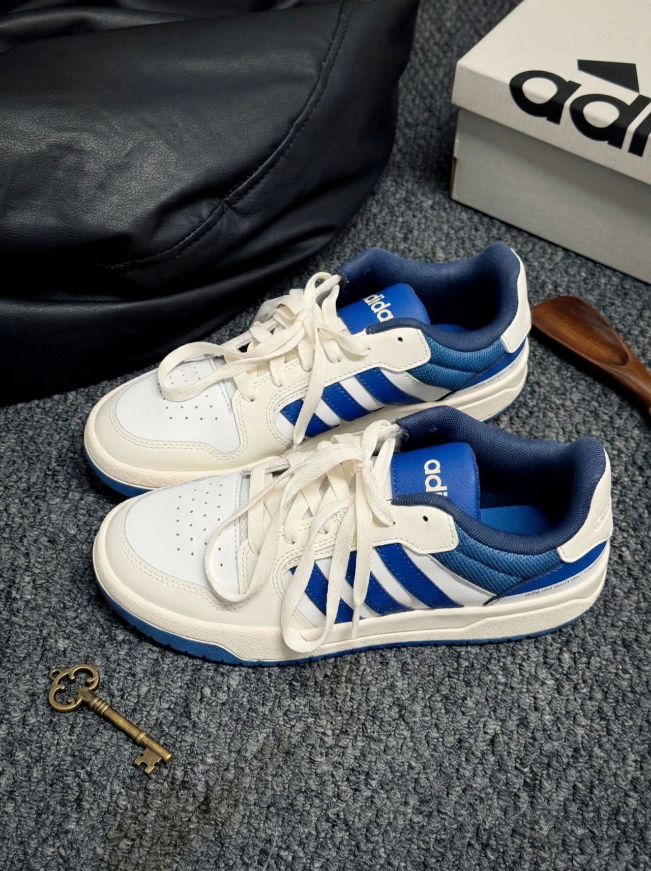 春天的第一双板鞋我先锁死这双!💙 奶fufu的米白+干净的克莱因蓝,经典三条杠设计,复古感直接拉满,上脚就是青春校园剧男主/女主本人! 皮质鞋面摸起来巨有质感,软乎乎的不磨脚,鞋底软弹又防滑,走路逛一天都不累~ 不管是配牛仔裤、运动裤还是百褶裙,都能轻松穿出氛围感! 学生党上课、打工人通勤、情侣出街都超合适,百搭又耐看,性价比直接拉满! 真的越看越爱,这双鞋我能循环穿一整个春天!✨