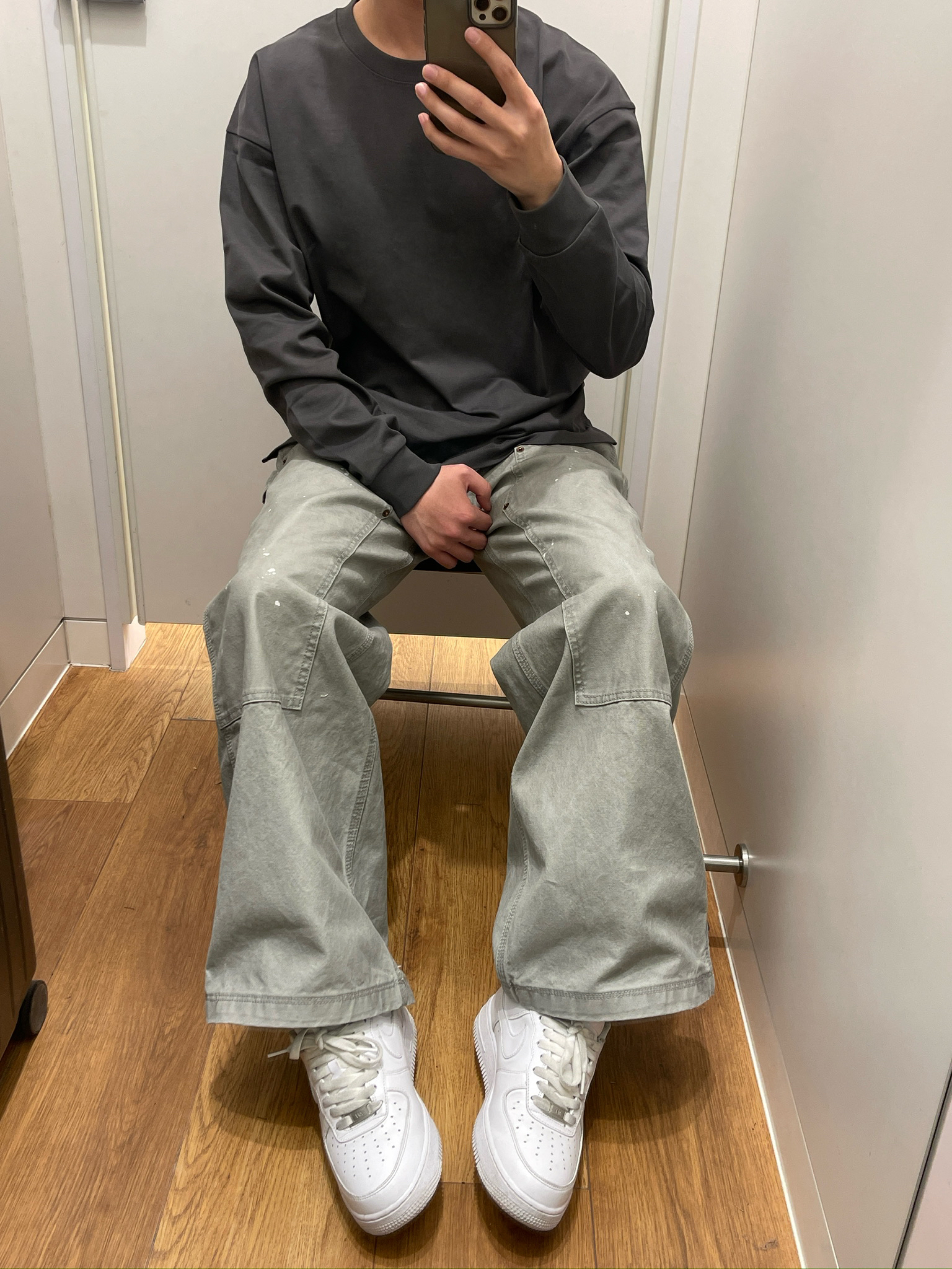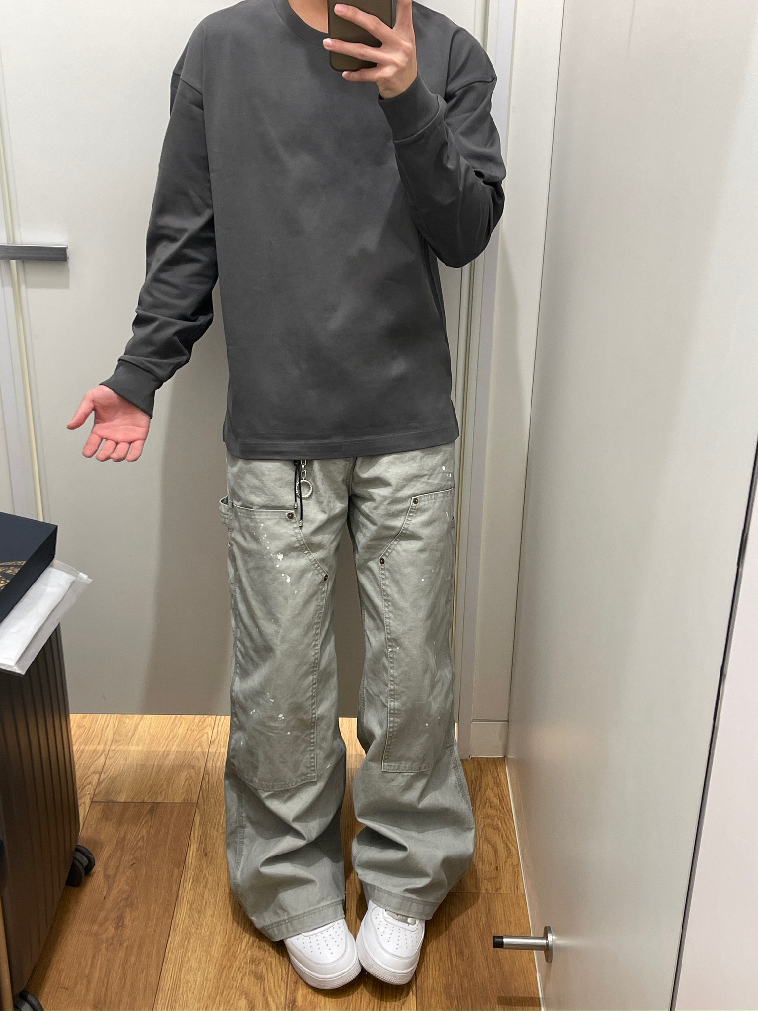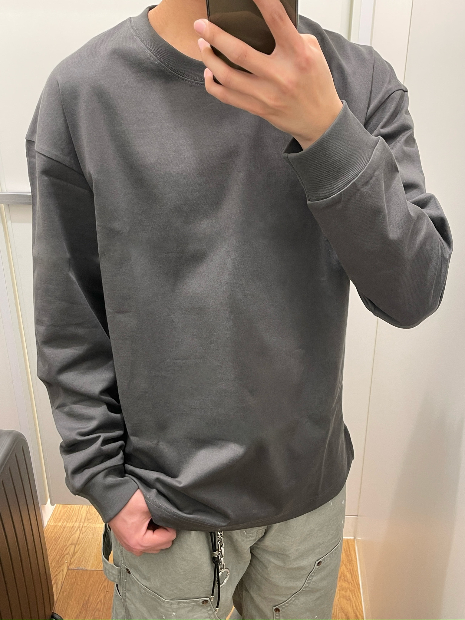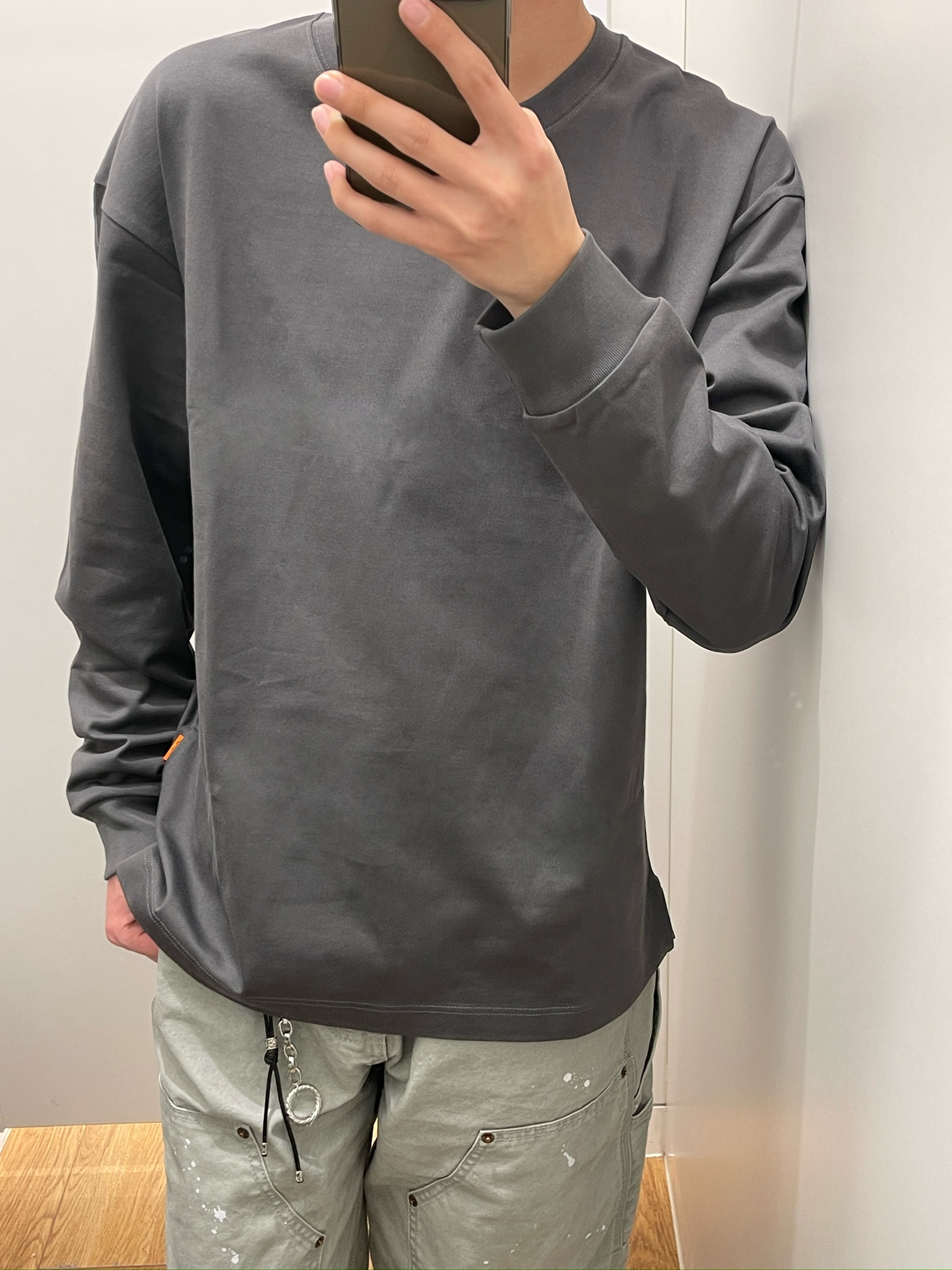 【深灰长袖+泼墨工装裤,日常通勤太好穿了✨】,由用户 顾海oo 分享,来自安徽。这是一篇来自识货社区的真实用户分享笔记。