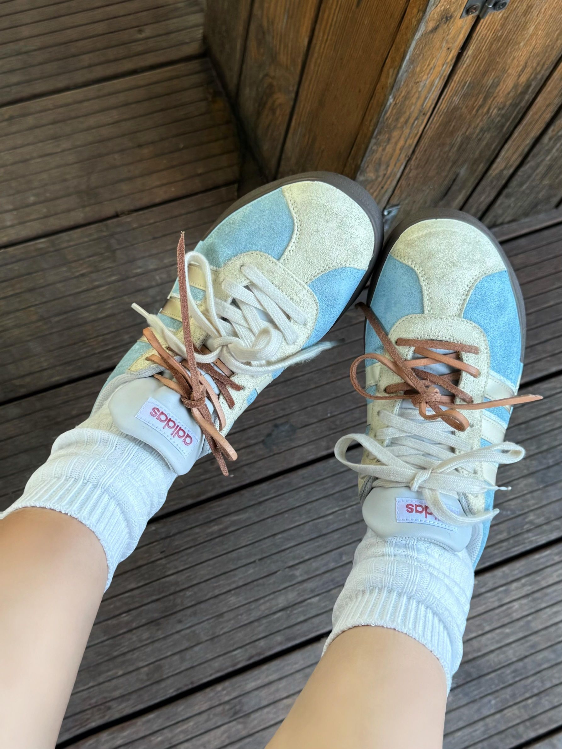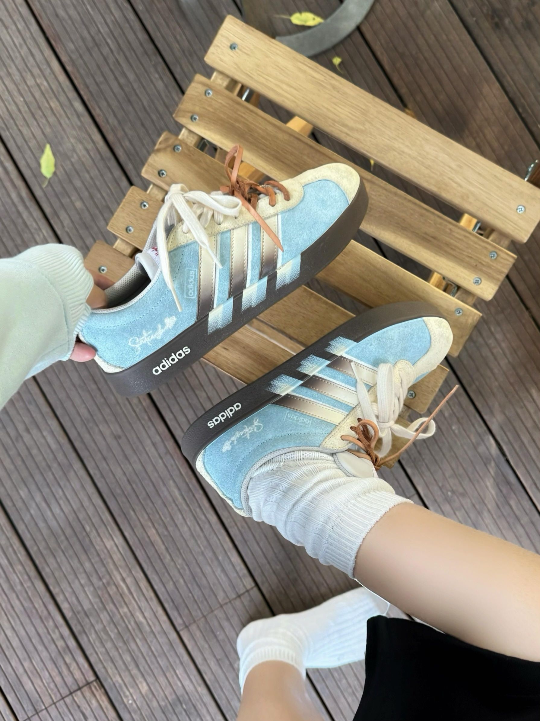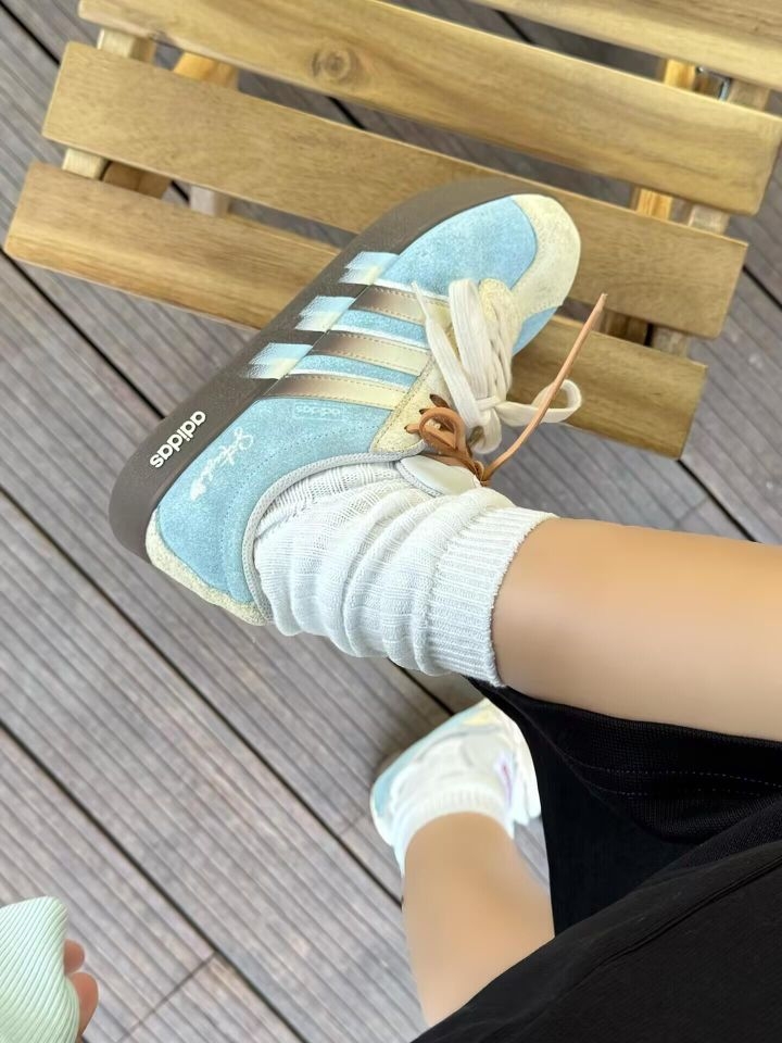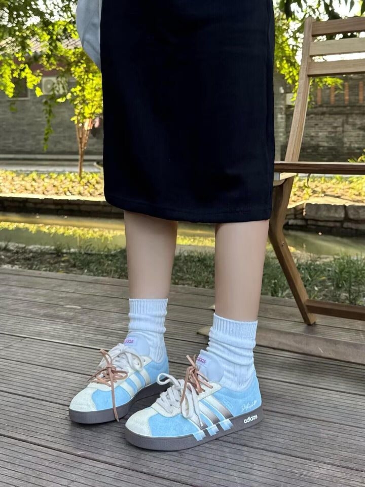 终于找到能焊在脚上的德训鞋了! 雾霾蓝+奶白的配色温柔到骨子里,麂皮质感细腻又高级,搭配堆堆白袜,慵懒松弛感直接溢出屏幕~ - 🤍 风格亮点:复古鞋型+渐变条纹,简约不单调,日常穿超耐看,越看越喜欢! - ✨ 舒适度:鞋底软弹,包裹性好,暴走一天也不累,打工人/学生党闭眼入! - 📸 出片技巧:搭配黑裙+户外绿意背景,温柔感拉满,朋友圈九宫格不够发! #韩系穿搭 #松弛感OOTD ...