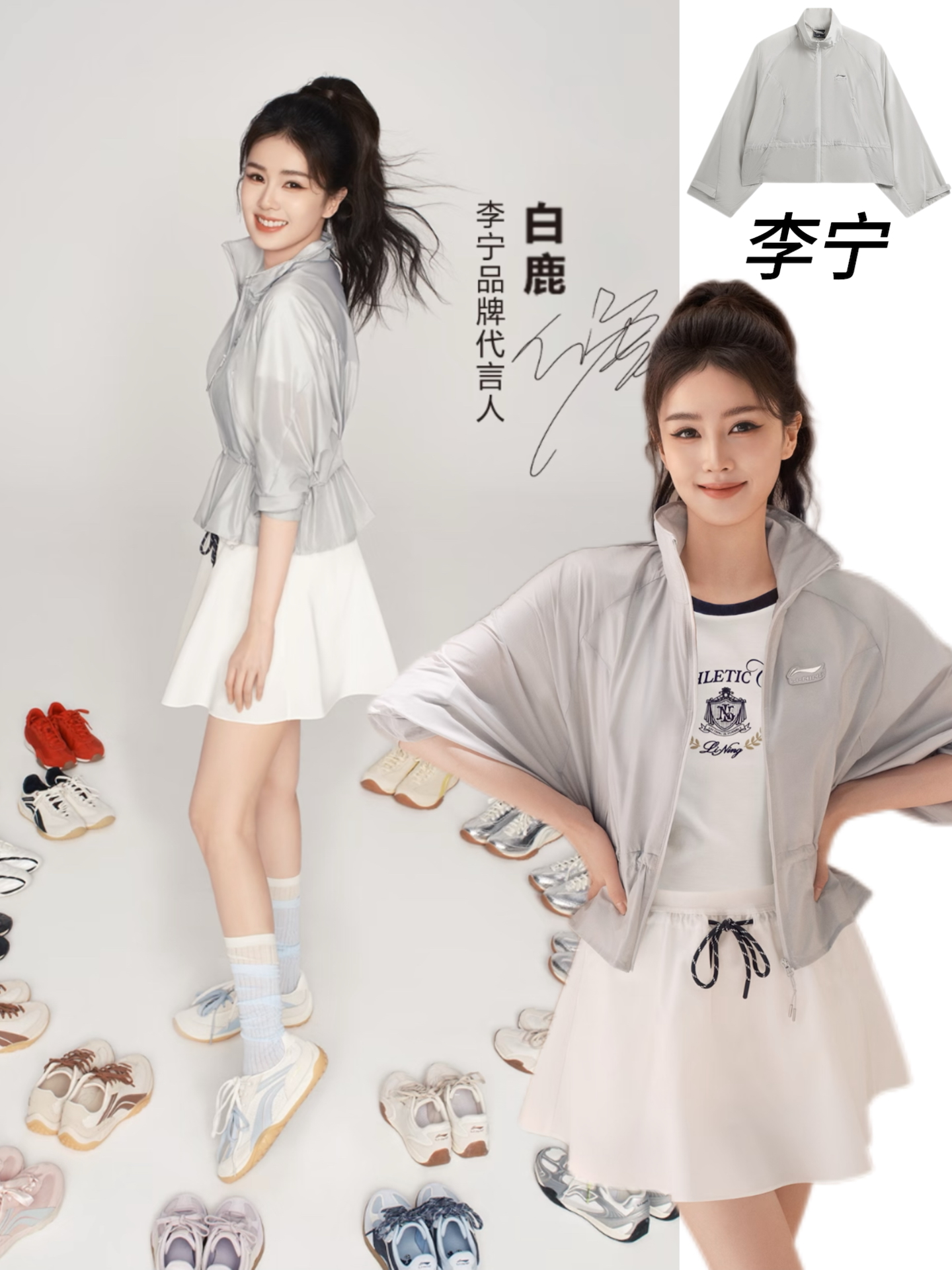 p1是李宁的浅灰防晒外套,价格在300+。它以柔和浅灰为主调,立领+蝙蝠袖设计兼具防晒与造型感,胸口李宁刺绣logo辨识度拉满,轻薄透气面料适配春夏户外,内搭短款T恤即可打造“上宽下窄”的显瘦比例,是元气少女风的核心单品。 p2是李宁的复古学院风T恤,价格在100+。米白色底搭配撞色罗纹圆领+徽章印花,正面精致刺绣是点睛之笔,简约版型柔软亲肤,可单穿也可作为内搭,与浅灰外套形成柔和层次,提升整体清...