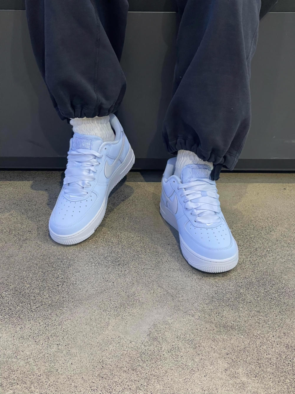 这双清爽雾霾蓝空军一号,真的温柔到骨子里~💙 一眼沦陷的清冷感,早春穿氛围感直接拉满! 高级雾霾蓝鞋面搭配淡灰logo, 干净又治愈,不艳不俗, 自带温柔滤镜,清冷气质稳稳拿捏。 细腻皮革质感在线, 鞋型利落挺括,上脚显脚小、超修饰腿型, 显腿瘦、显腿直,对所有脚型都很友好~ 春夏百搭王说的就是它! 配牛仔裤清爽随性, 搭小裙子温柔仙气, 穿运动裤又甜又酷, 各种风格都能轻松hold住。