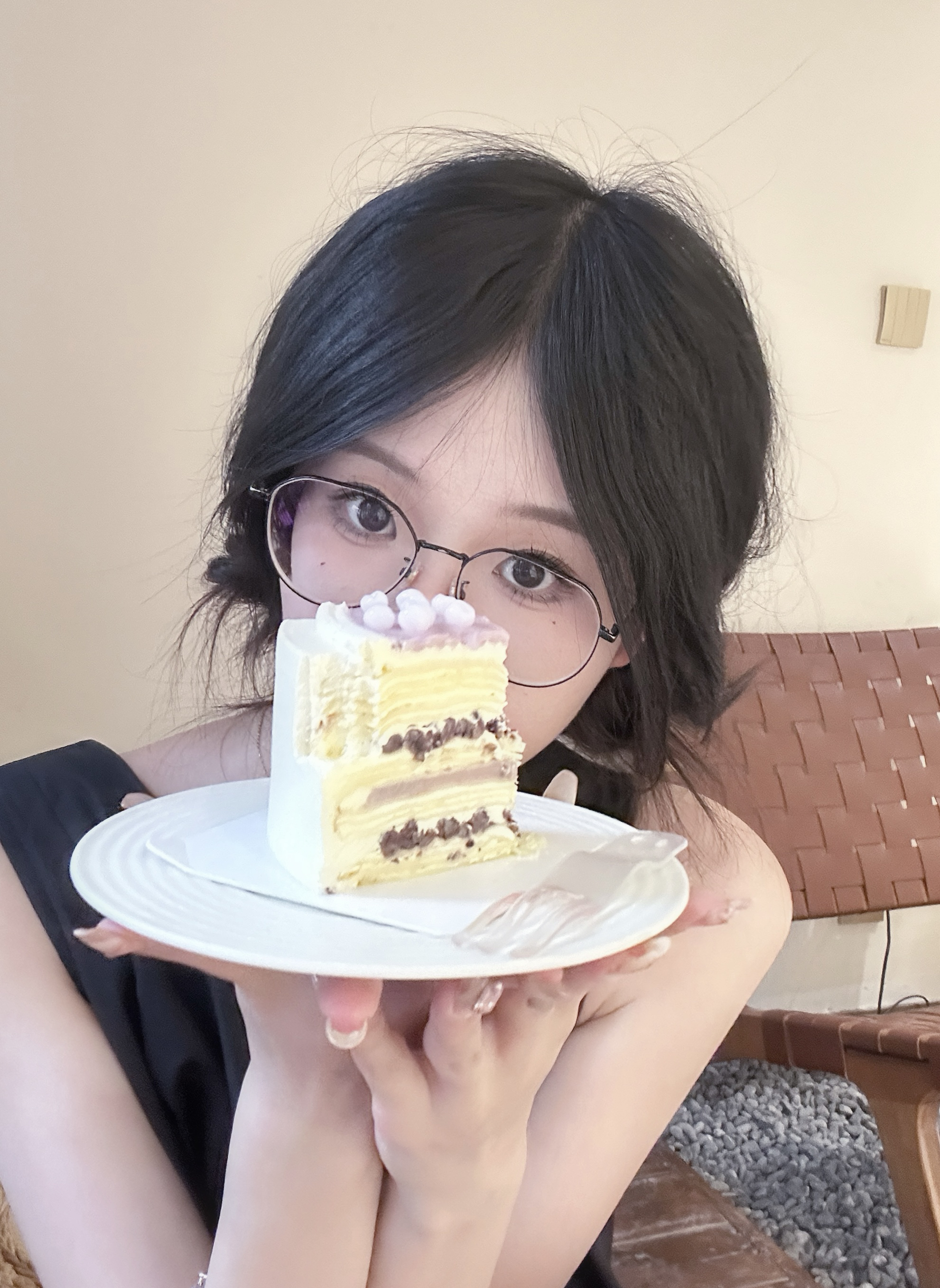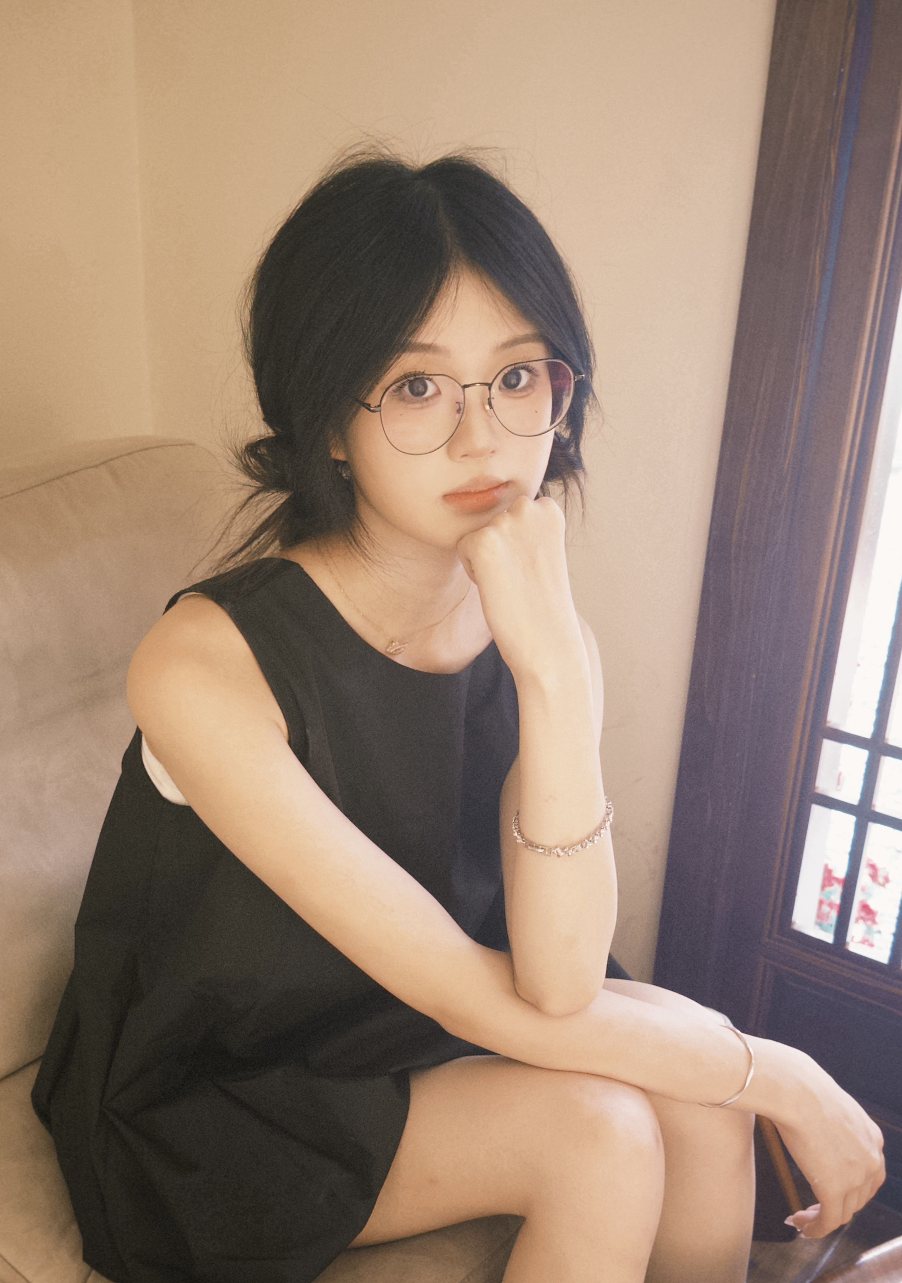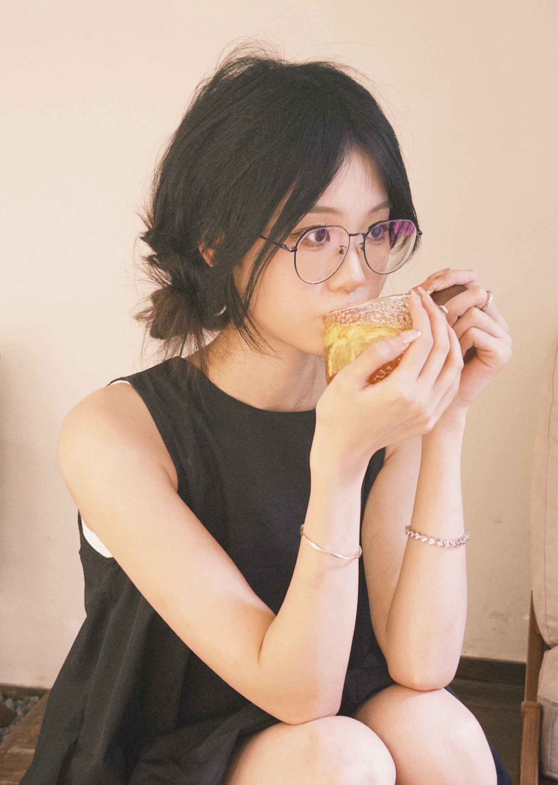 小黑裙➕小丸子发型 #方圆脸发型[话题]# #咖啡店拍照[话题]# #坐姿拍照[话题]# #探店拍照[话题]#