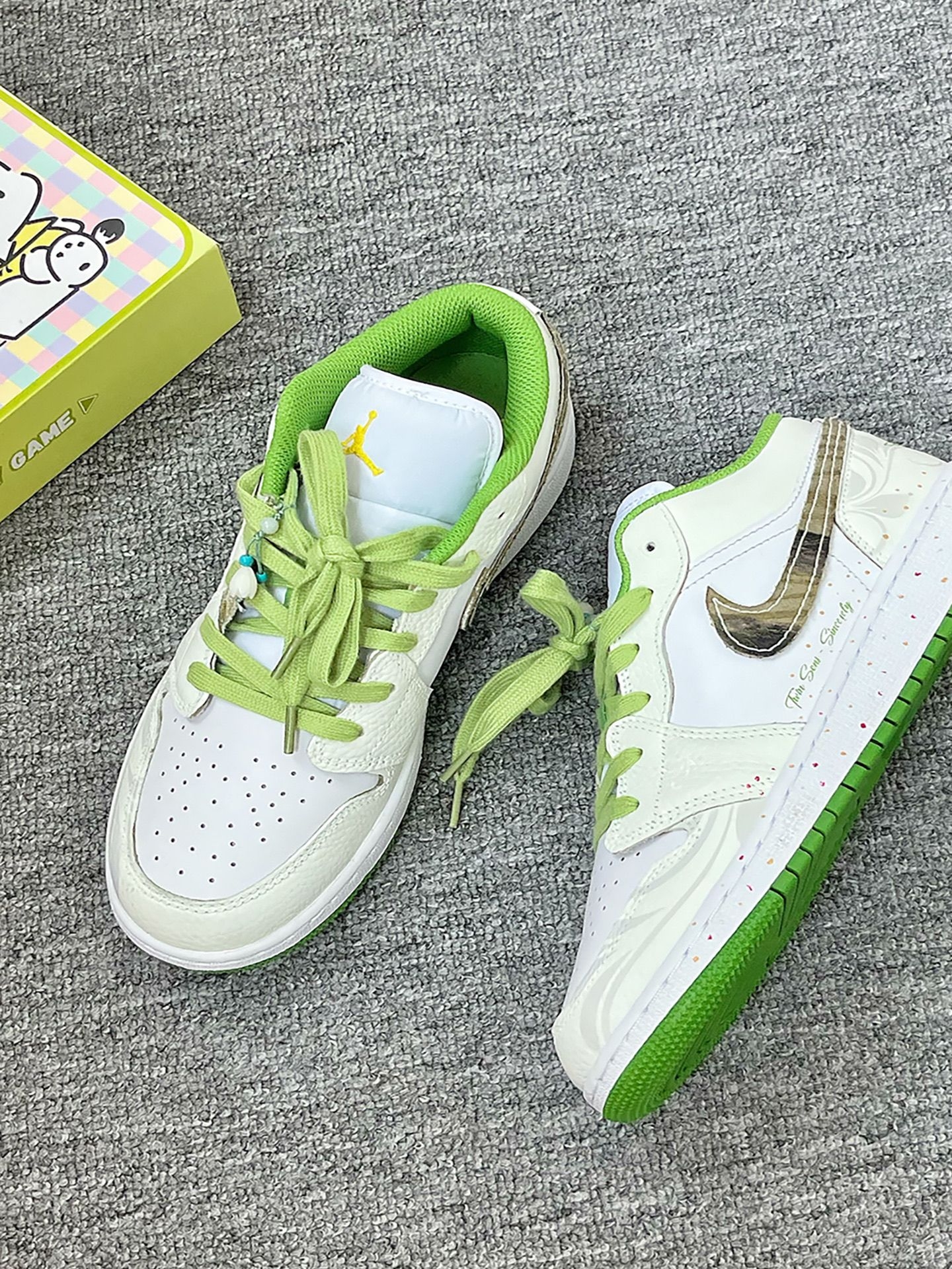 谁能拒绝一双自带春日氛围感的小白鞋啊!😭 这双AJ1 Low青提奶绿配色真的把清新感拉满了! 白绿撞色像咬了一口刚摘的青提,软fufu的奶绿鞋带+同色鞋领,上脚瞬间变温柔甜妹~ 鞋身还藏了小心机:木纹Swoosh+细碎彩点中底,细节控狂喜! 脚感软弹不磨脚,配牛仔裤、百褶裙都超绝,通勤上学都能穿! 春天就该穿这种清清爽爽的鞋子,拍照巨出片,朋友圈已经被问爆链接了! 姐妹们闭眼冲,这双绝对是今年春夏...