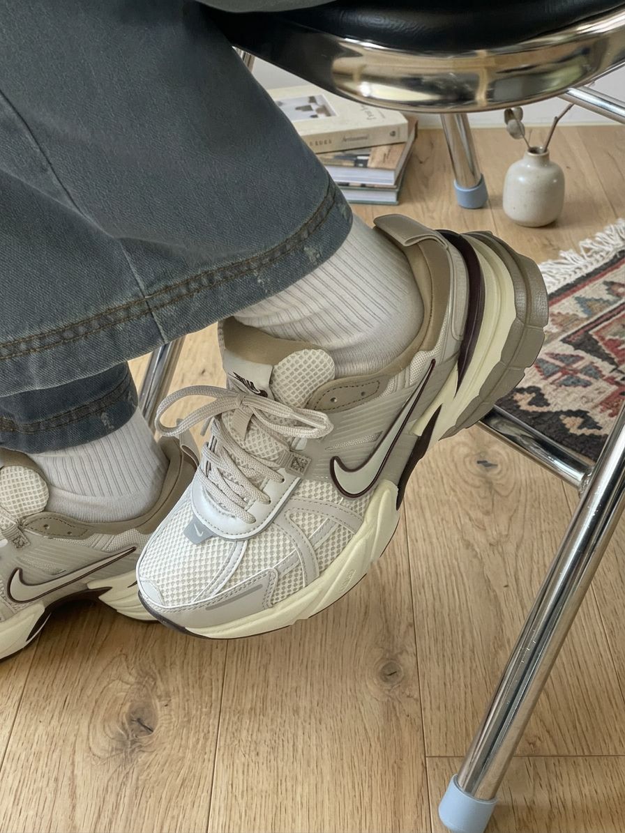 这双Nike复古跑鞋以浅灰网面为主调,搭配米白与绿色细节,网面材质透气舒适,厚底设计复古有质感,Nike标志低调亮眼。搭配米白阔腿裤或浅灰连衣裙,轻松适配日常出街、咖啡馆小坐。置于灰色地面上,绿灰配色在阳光下柔和呈现,成为复古风格的点睛之笔。经典设计+舒适材质,闭眼入不踩雷,让每一步都充满惬意与潮流感!