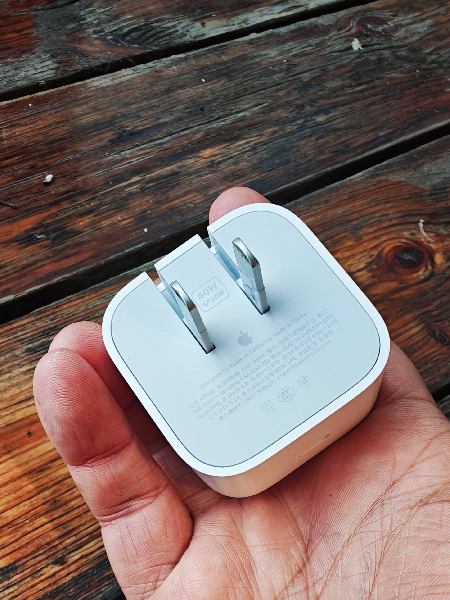 作为苹果全家桶老用户,之前买Macbook Air的时候选配了一个苹果35W双C口充电器,基于体验不错,最近看到新款40W单口就又忍不住剁手了。它标称40W、动态峰值可达60W,实际用它给iPhone 15 Pro、MacBook Air充电,充电头和手机、笔记本发热都低,算是比较稳定(但说实话没有感觉到预想中的极速⚡️),速度呢?!好吧,用下来最大的心理安慰也就是系出同门,好看还没有兼容问题了...