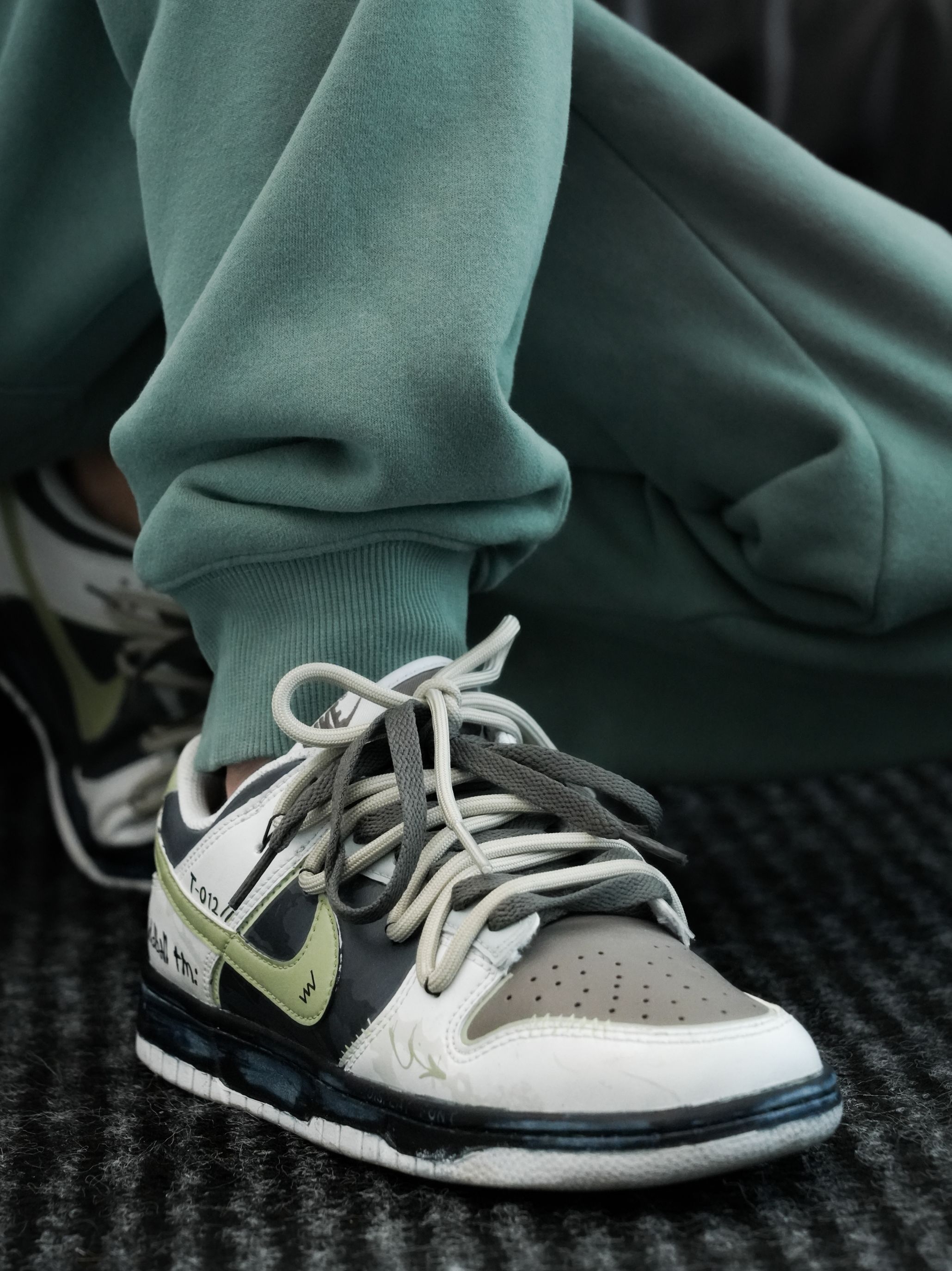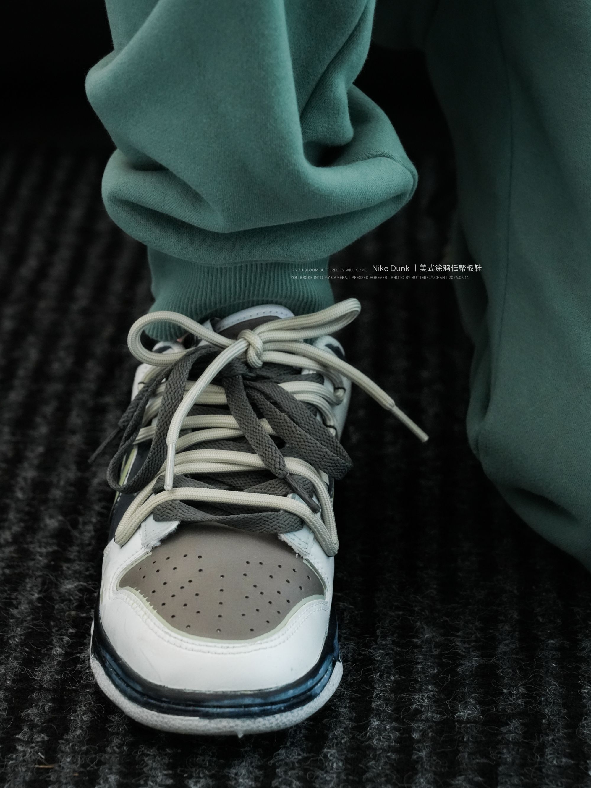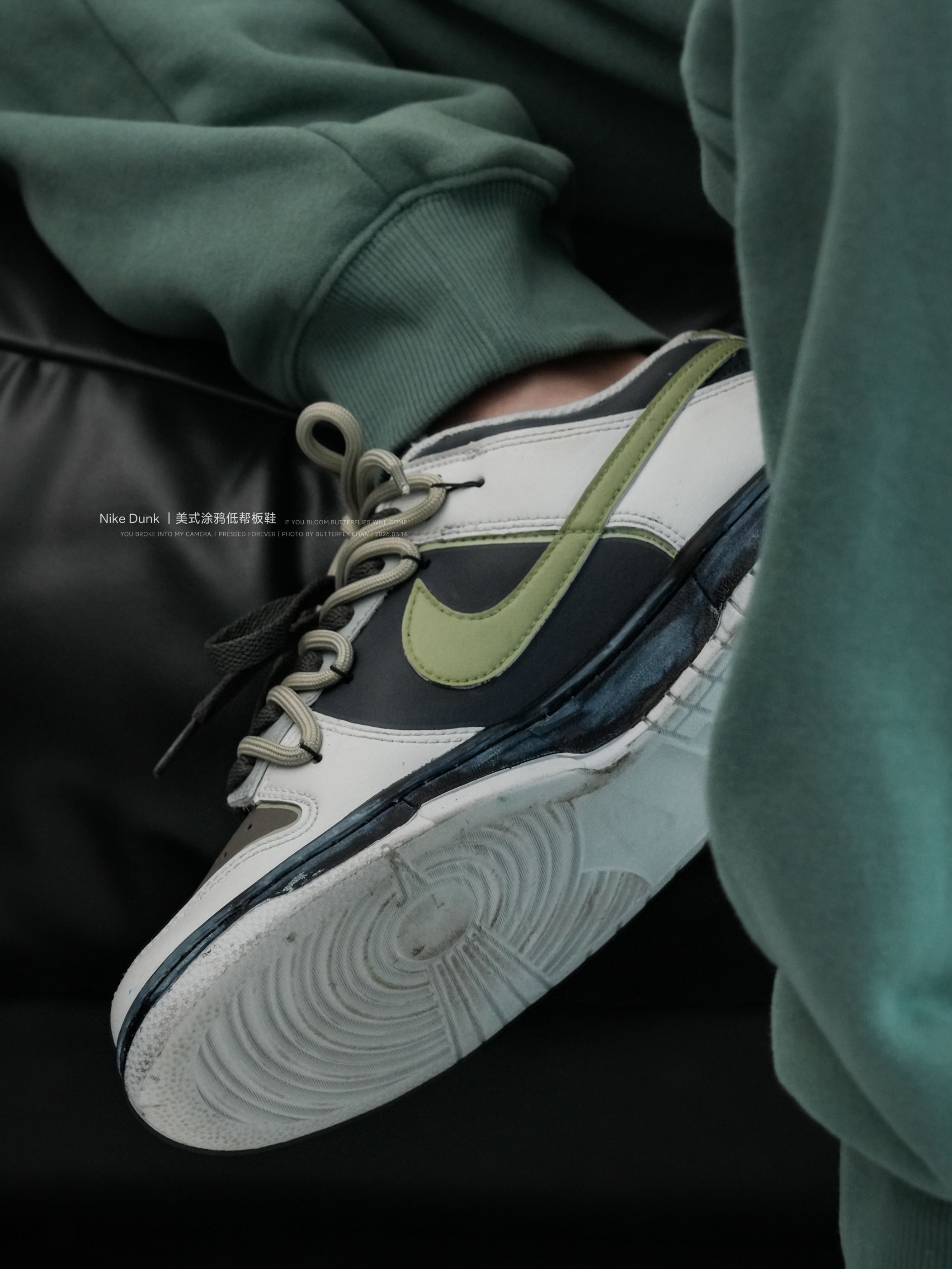 普通Dunk看多了容易腻 但这双真的不一样 灰黑基底搭配淡绿✓钩子 👟身的涂鸦细节超有质感 做旧中底加上双👟带设计 随便搭条牛仔裤👖就是美式街头风 彻底摆脱“路人感” - 作为日常穿的板鞋👟 它真的不磨🦶 👟帮填充很软,新👟也不会卡脚踝 就是👟底偏硬了点 橡胶大底抓地力也在线 下雨天走路也稳,再也不用担心滑🦶啦 - 不管是搭运动裤、工装裤还是休闲裤都挺不错的 男、女生都适合 一套穿搭有它点睛👀 瞬...