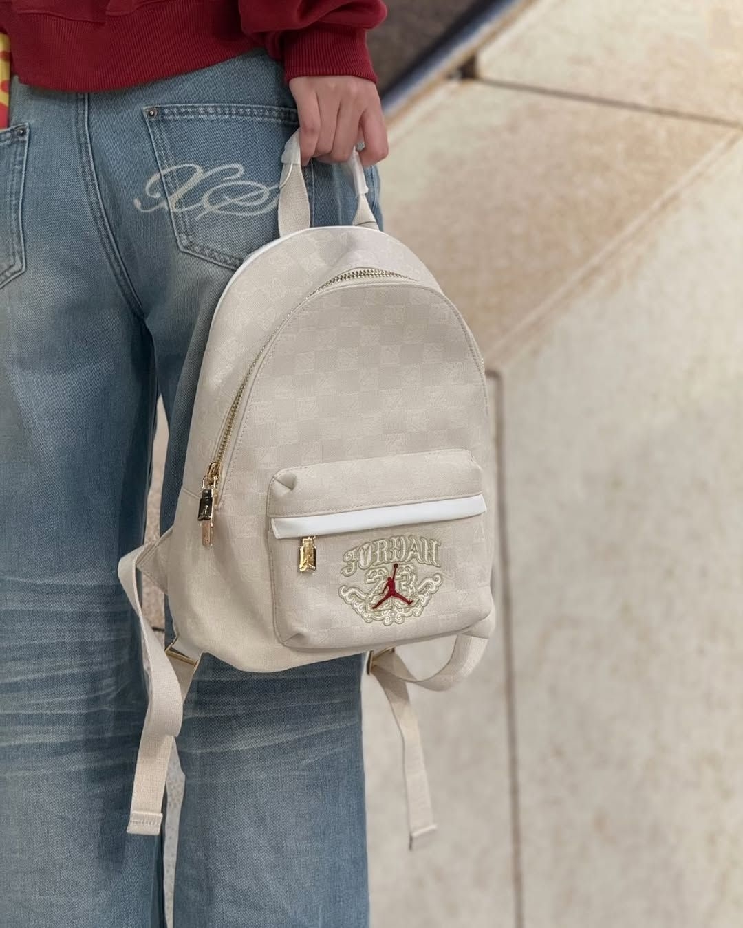 谁懂啊!可太喜欢今年Jordan新年配色书包啦! ✅ 大号:通勤上课一把抓,电脑、书本全装下,满印老花低调又显品味,飞人刺绣潮酷感拉满。 ✅ 小号:约会逛街无负担,手机、口红、充电宝刚好装,米白老花温柔又百搭! 米白配色不挑穿搭,不管是卫衣牛仔裤还是小裙子,都能搭出CP感。细节做工超在线,飞人刺绣+皮质包边,背个三五年都不过时! 不管是小包还是大包实用性都很好高