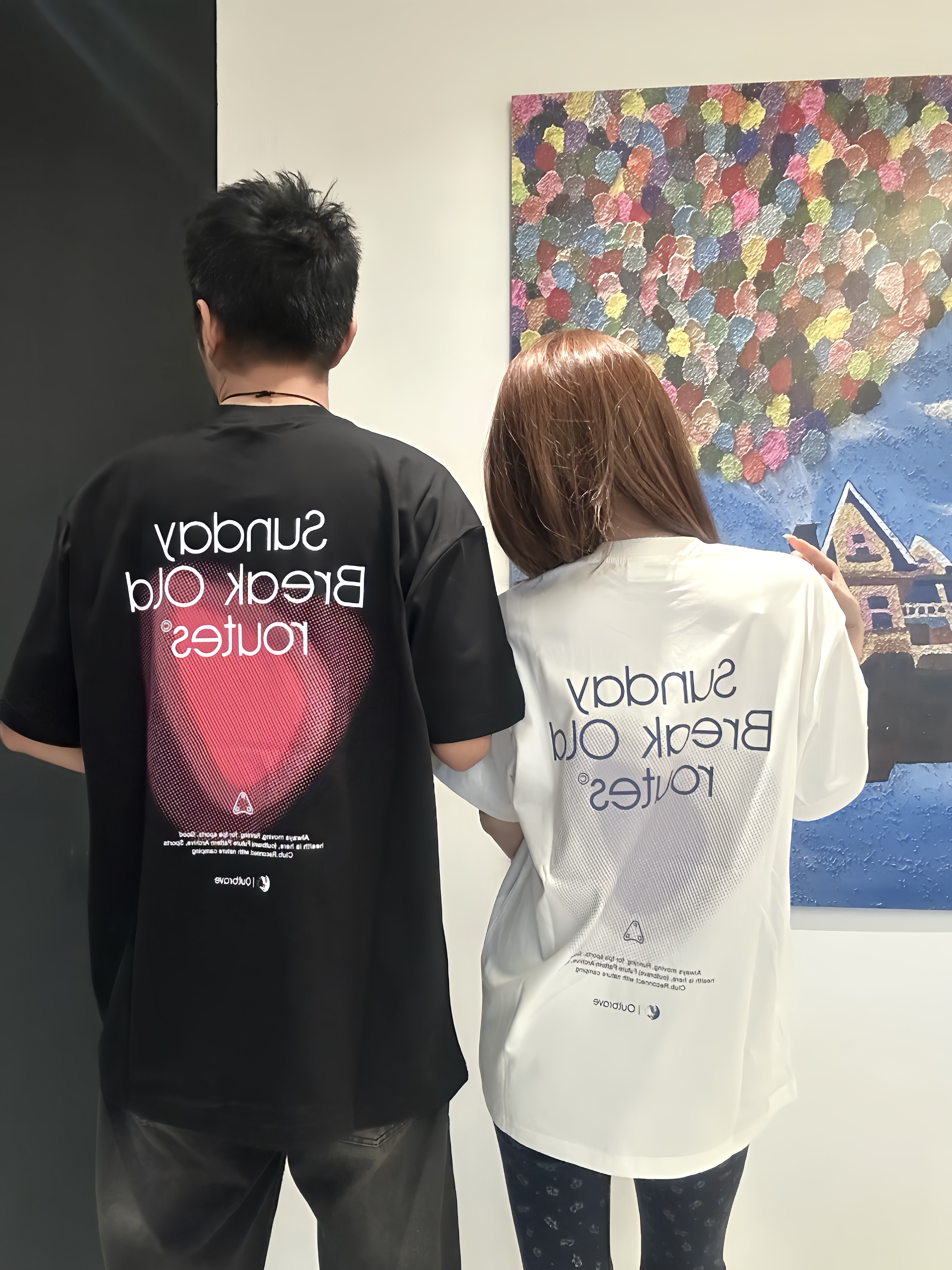 别人一看就知道 我们是一对! 图案设计的超级好 很吸睛 面料也很舒服 很柔软 不闷汗💯 版型很宽松 没有束缚感 逛街约会 户外露营真的超出片📷