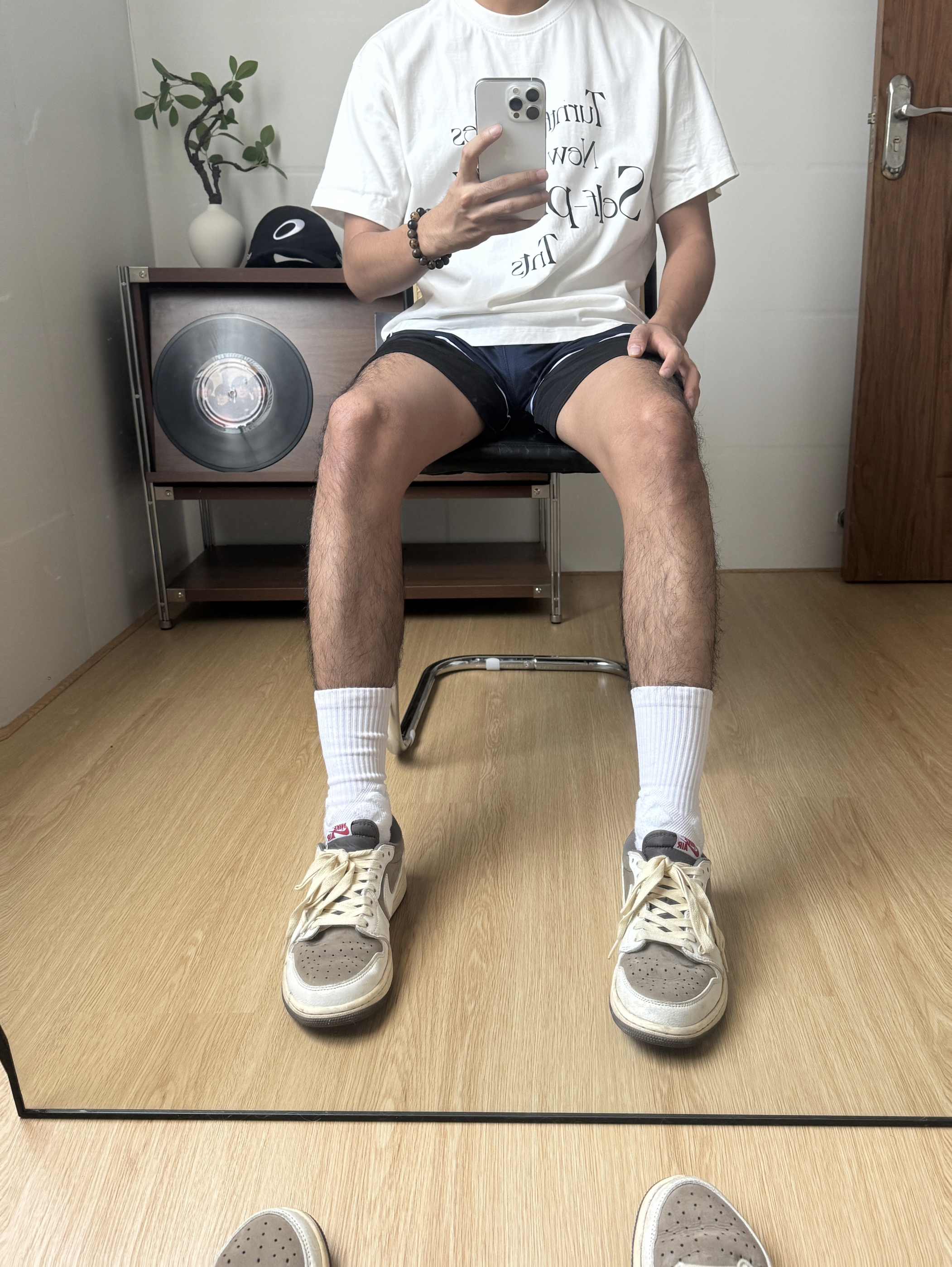 白T上的文字印花随性又有态度,🏃黑蓝撞色运动短裤利落清爽,米白做旧球鞋踩出复古街头感,白袜拉高整体比例,整套穿搭松弛又有少年气,随手一拍都是夏日氛围感📸,自在又不费力的松弛感,就是最好的穿搭状态。