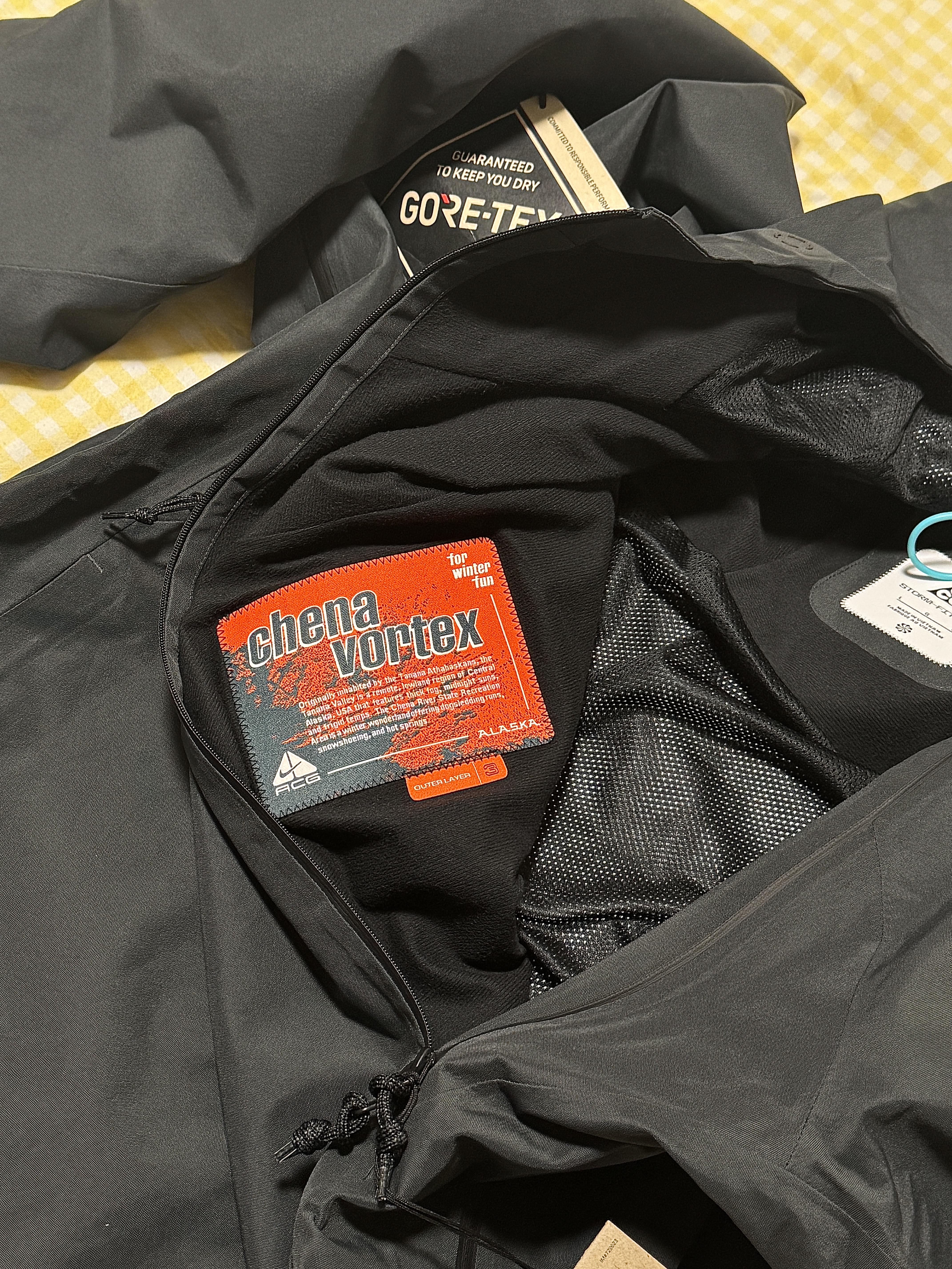 终于入手这件Nike ACG滑雪服,一眼沦陷直接冲💘 实物比图片更绝,上身帅到自恋,雪场&日常都能炸场! 📏尺码参考(181cm/87kg) 穿L码宽松适中,日常当冲锋衣穿刚刚好; 想当滑雪服里面叠穿保暖层,建议买大一码更舒服! 🎨颜色提醒 煤黑色实物偏灰调,不是纯黑,高级哑光感,看图11参考~ 🧵质感&细节 面料做工都在线,手感扎实、版型挺括不臃肿,细节拉满 最爱腹部挂钩设计,挂玩偶、挂雪镜...