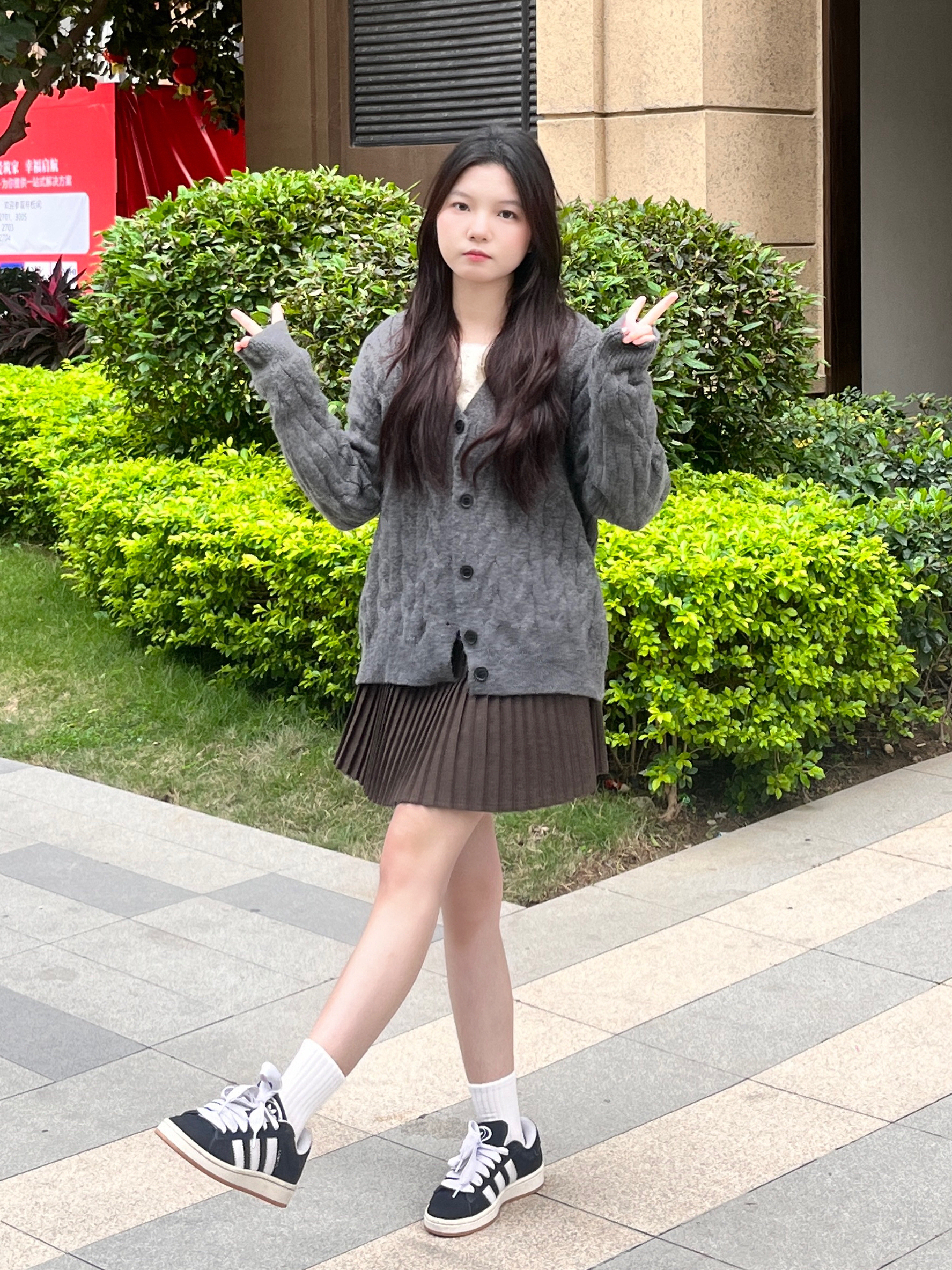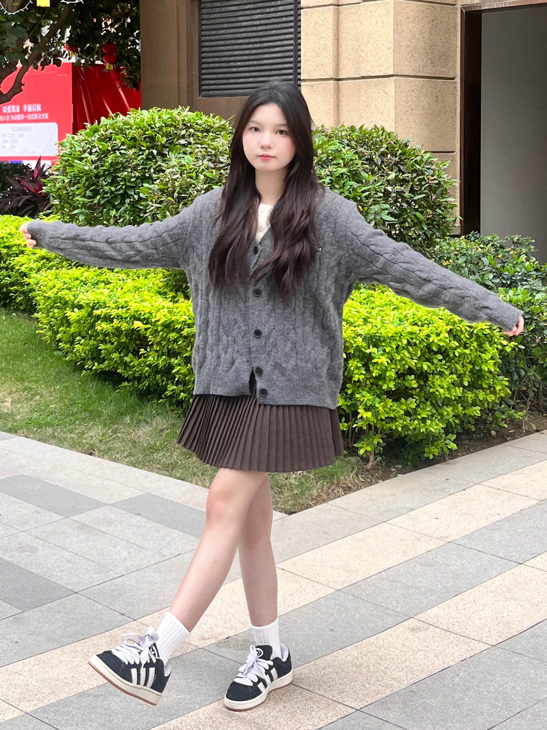 小个子早春穿搭抄作业!📝 身高158 体重85斤,这套直接封神 灰色开衫选的M码,宽松度超适合娇小身材 遮肉又能穿出随性氛围感~ 百褶裙长度刚好,板鞋一搭青春感拉满 潮汕的早春穿这套,不冷不热刚刚好🌿 韩系学妹既视感,拍照巨出片!