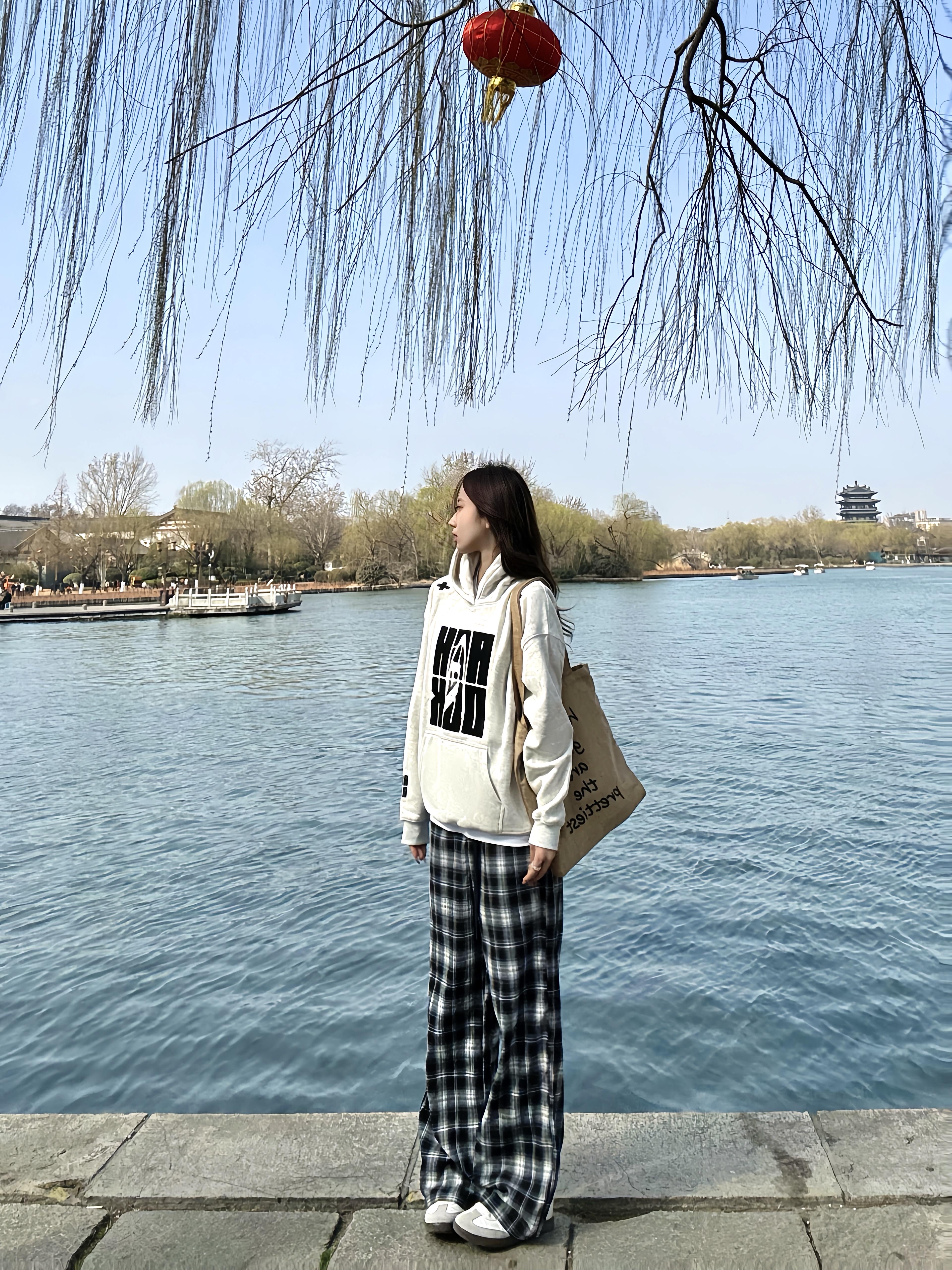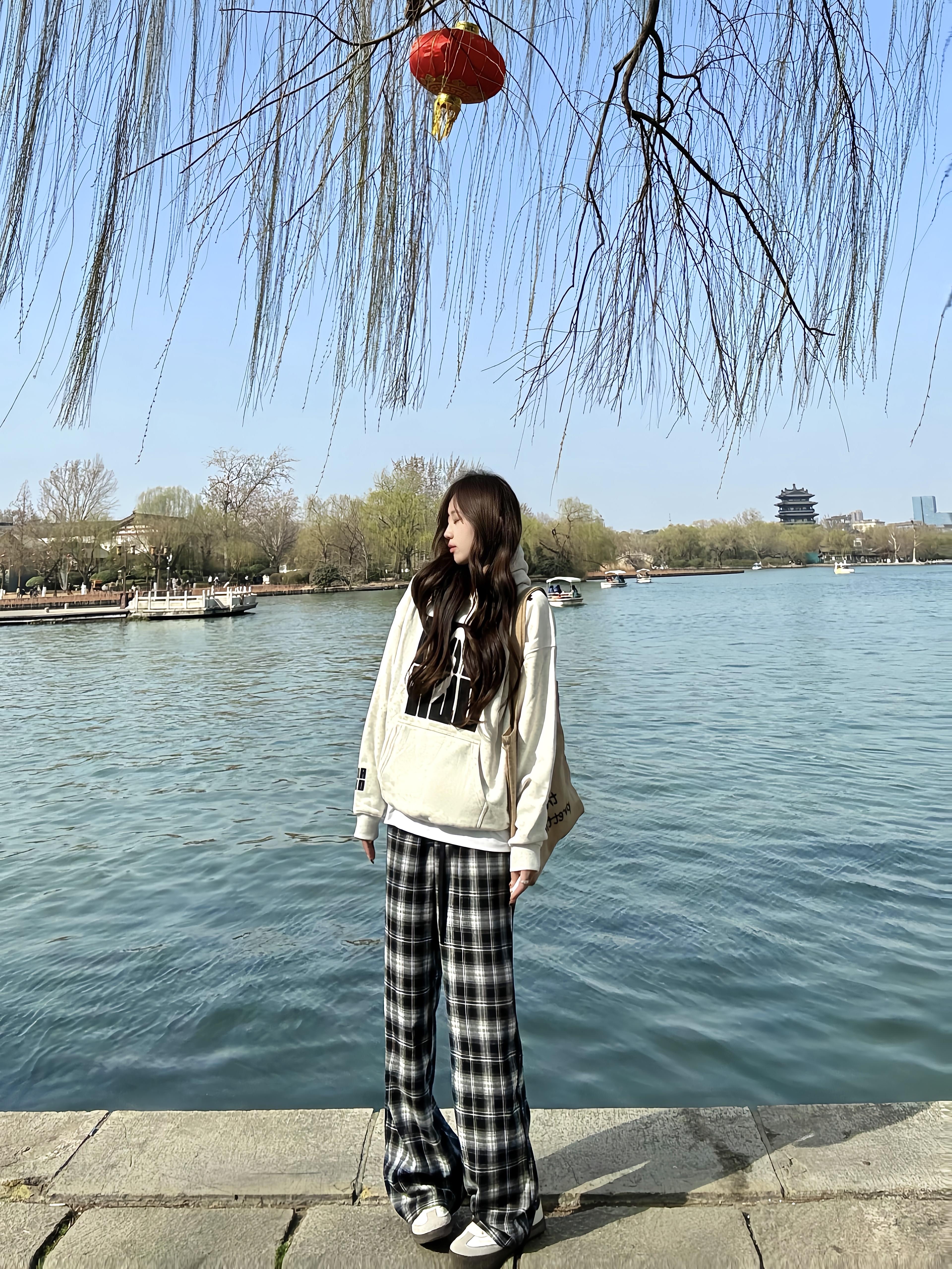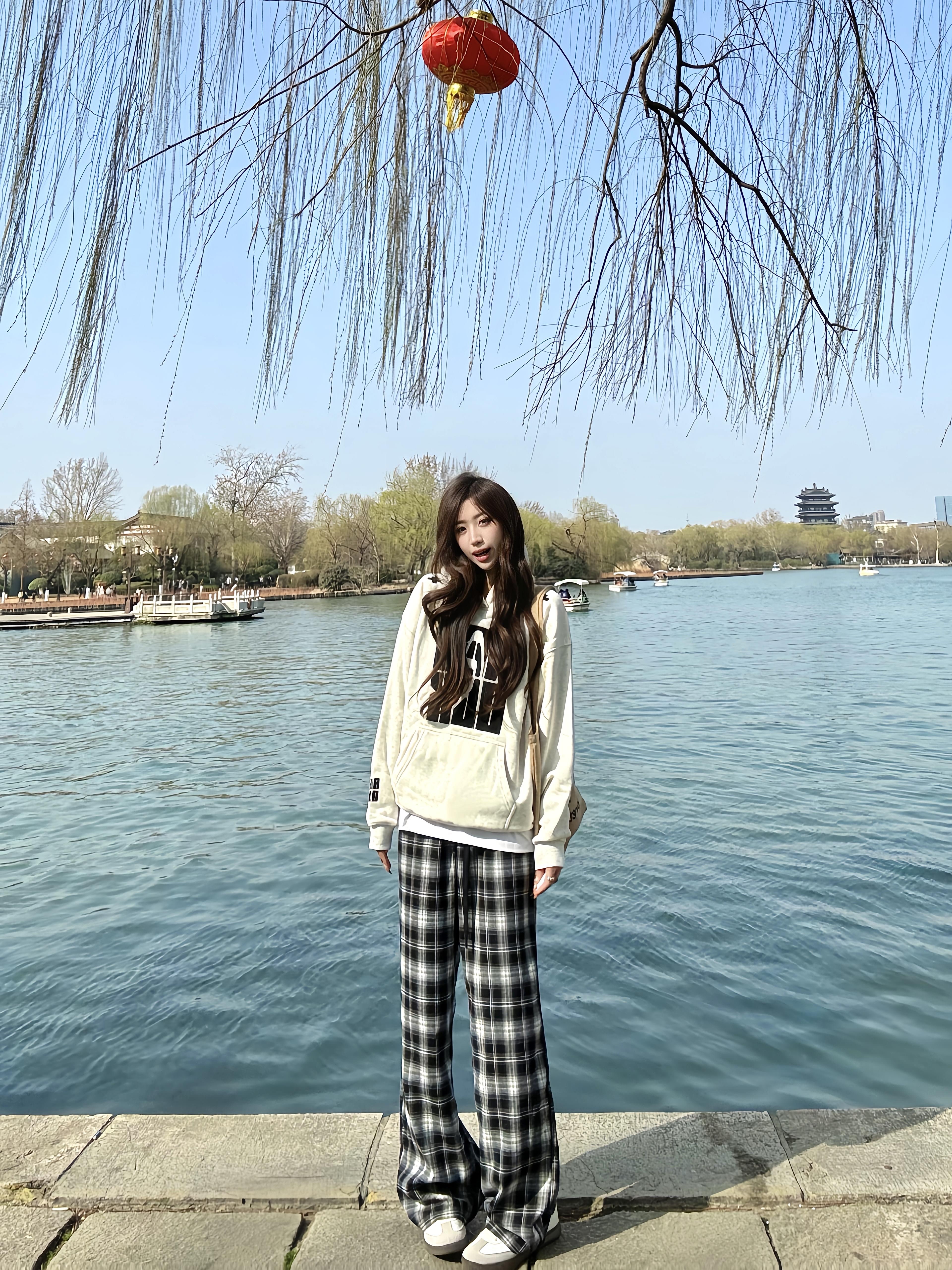 身高|体重:161/88 m 🧍♂️ 穿搭风格:韩系极简风 👔 上衣:花灰色连帽卫衣Achock 👖 下装:格纹阔腿裤 👟 鞋子:samba