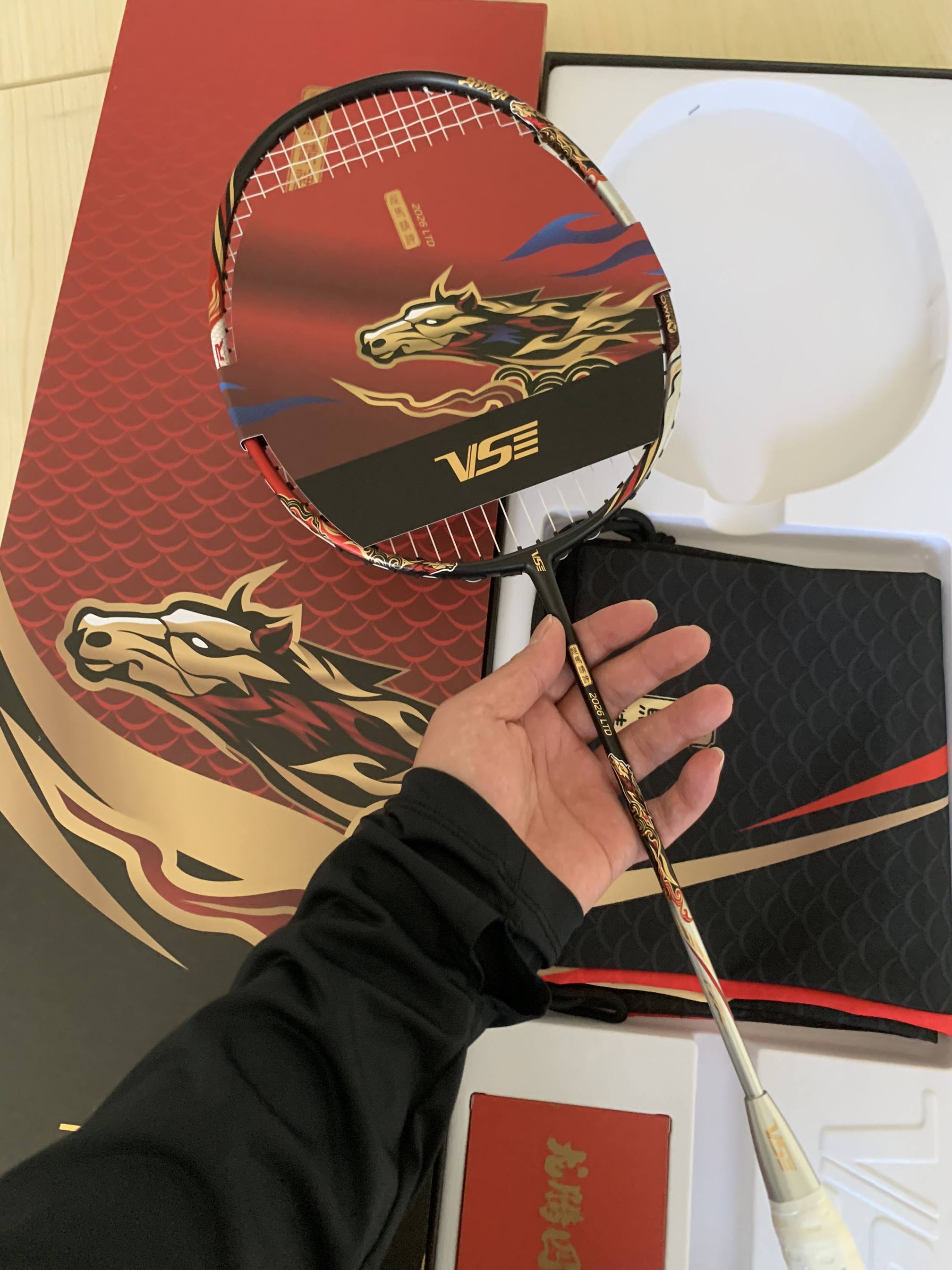 一直想找一把有国风设计的羽毛球拍,看到威臣龙马精神拍的瞬间就决定入手了。红黑撞色的拍身搭配立体的龙马浮雕,鎏金的纹路从拍框延伸到中杆,细节处的烤漆工艺特别精致,就算近距离看也没有一点瑕疵,连拍柄的缠胶都印着品牌logo,国风氛围感拉满。 我平时主打双打后场,需要一把能兼顾进攻和速度的拍。上手这把拍后,第一感受就是破风效果绝了,7.2mm的中杆又硬又弹,杀球时借助拍头的重量,轻轻发力球就像炮弹一样飞...