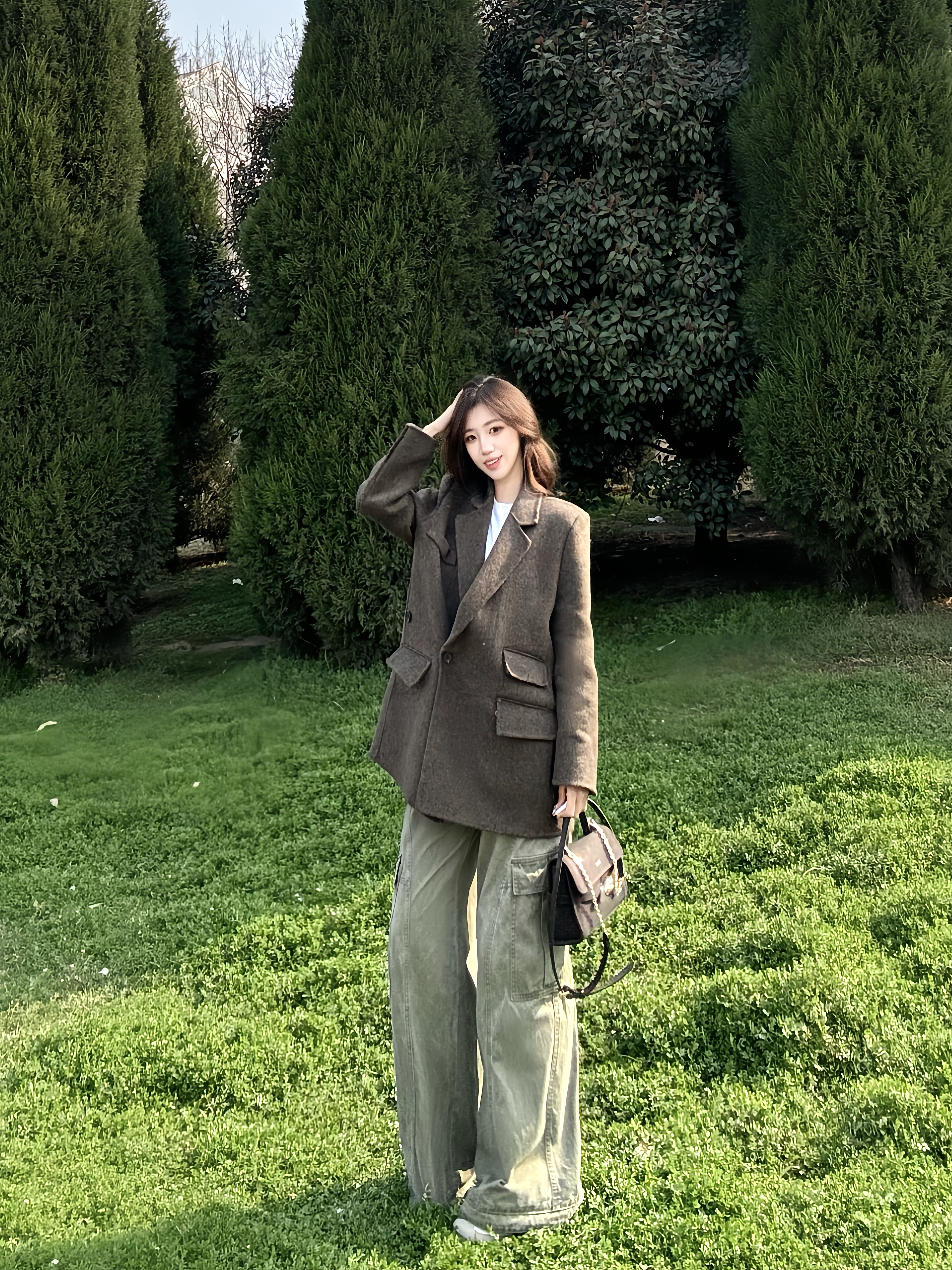 👕推荐单品:GXG复古棕短款大衣 🧍🏻尺码对照(身高|体重):161/88 m 💰价格参考:648