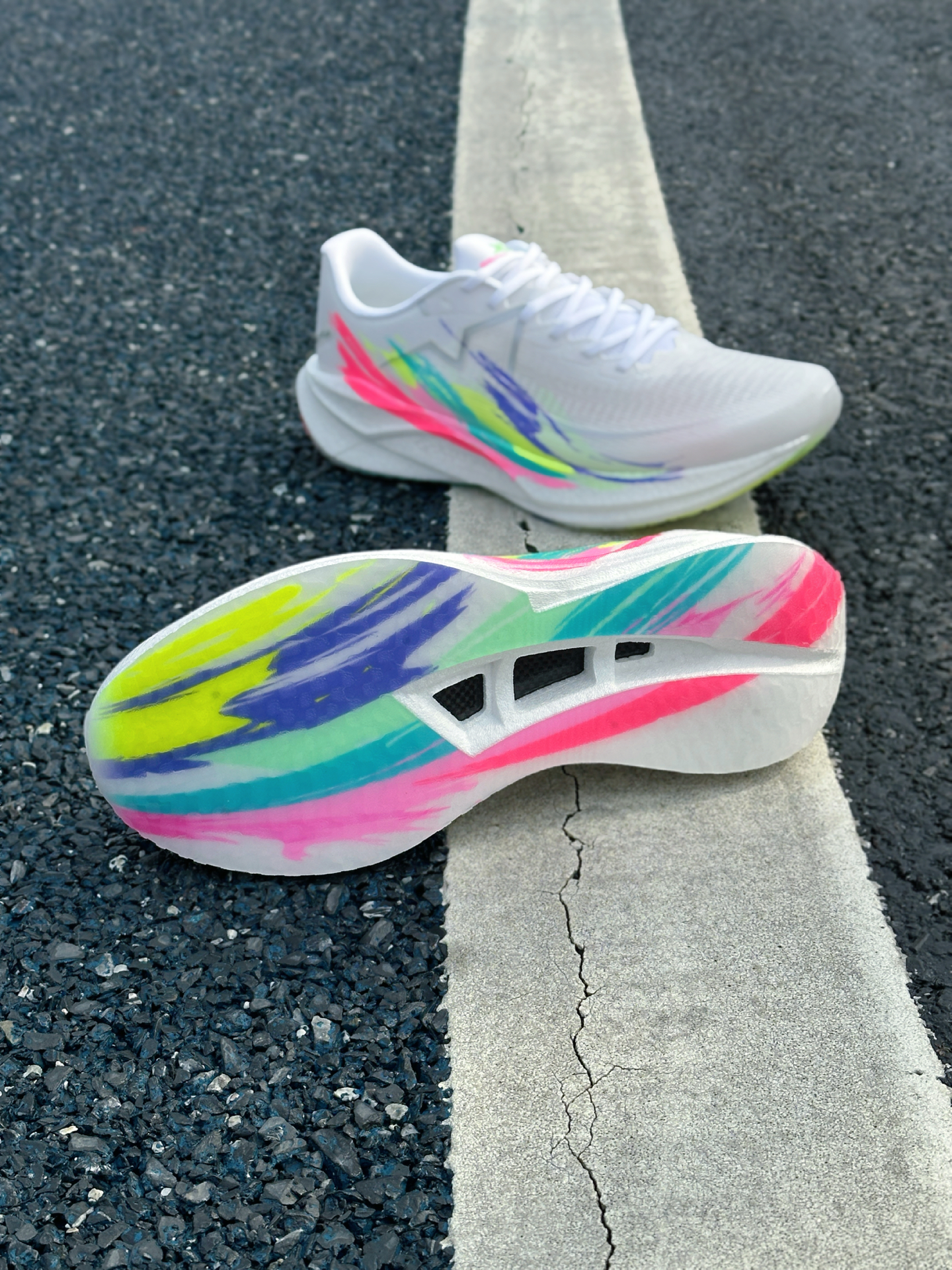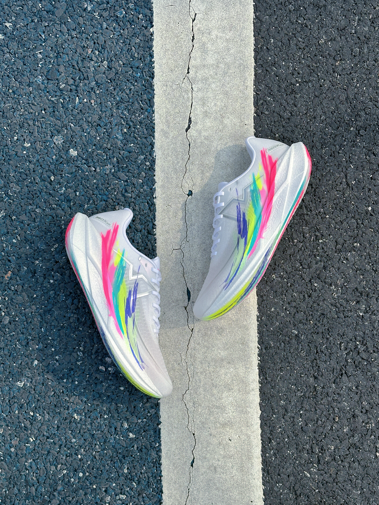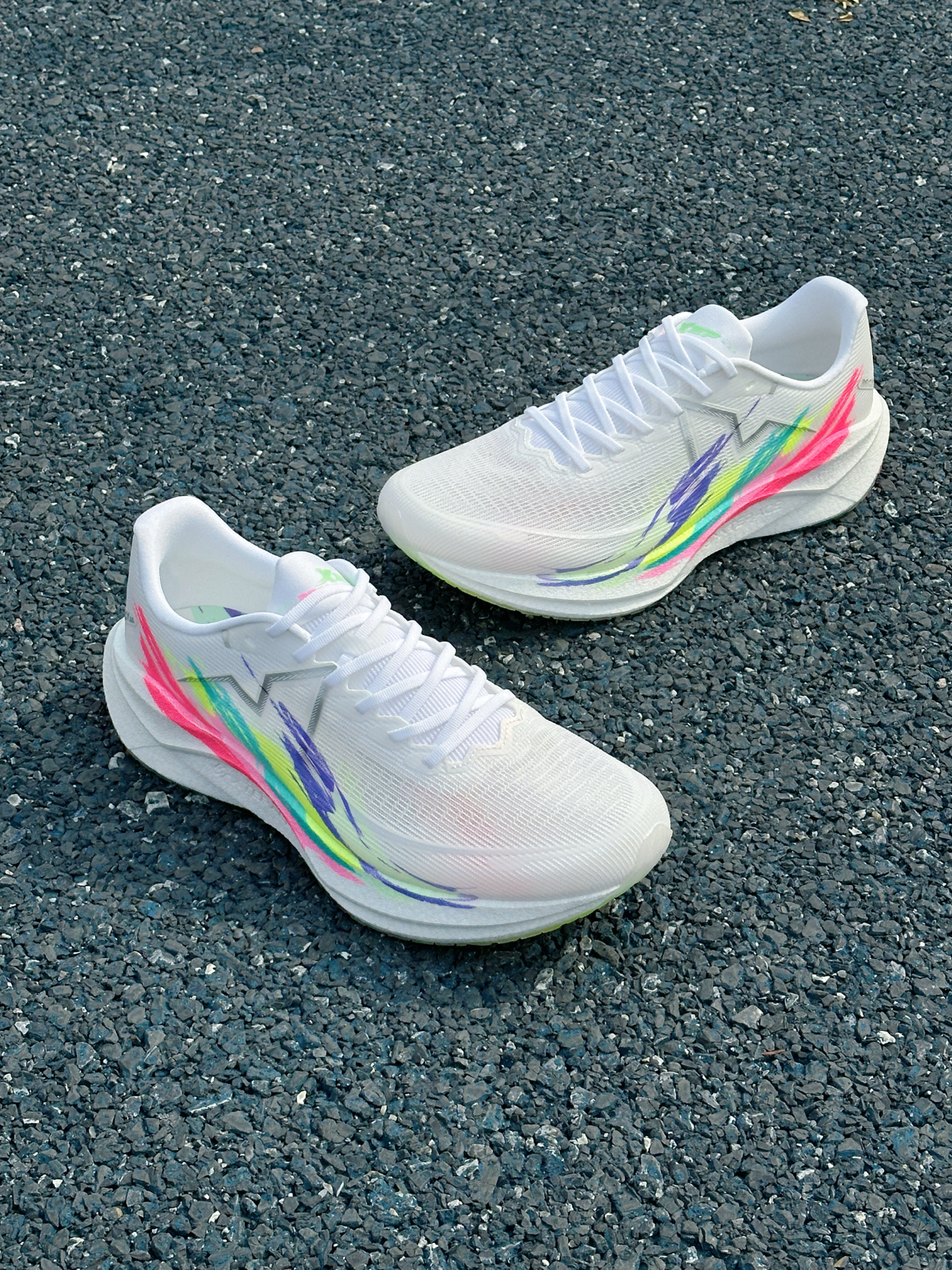 ✨Hello~大家好!这里是以梦喂马 我一直想找一双能兼顾成绩提升与舒适易穿的碳板跑鞋。 新出的特步360X3.0正合我的“胃口”✌🏻 首先颜值方面是真的好看阿 整体设计清爽亮眼,鞋身以干净的白色为基底,搭配七彩渐变笔触涂鸦,仿佛为双脚装上了一对轻盈的“彩虹翅膀”。 配置方面 柔态碳板突破:搭载特步首创的 BT400 柔态碳板,采用航天级玄武岩纤维与碳纤维复合而成。这种复合材料的结合显著提升了碳板...