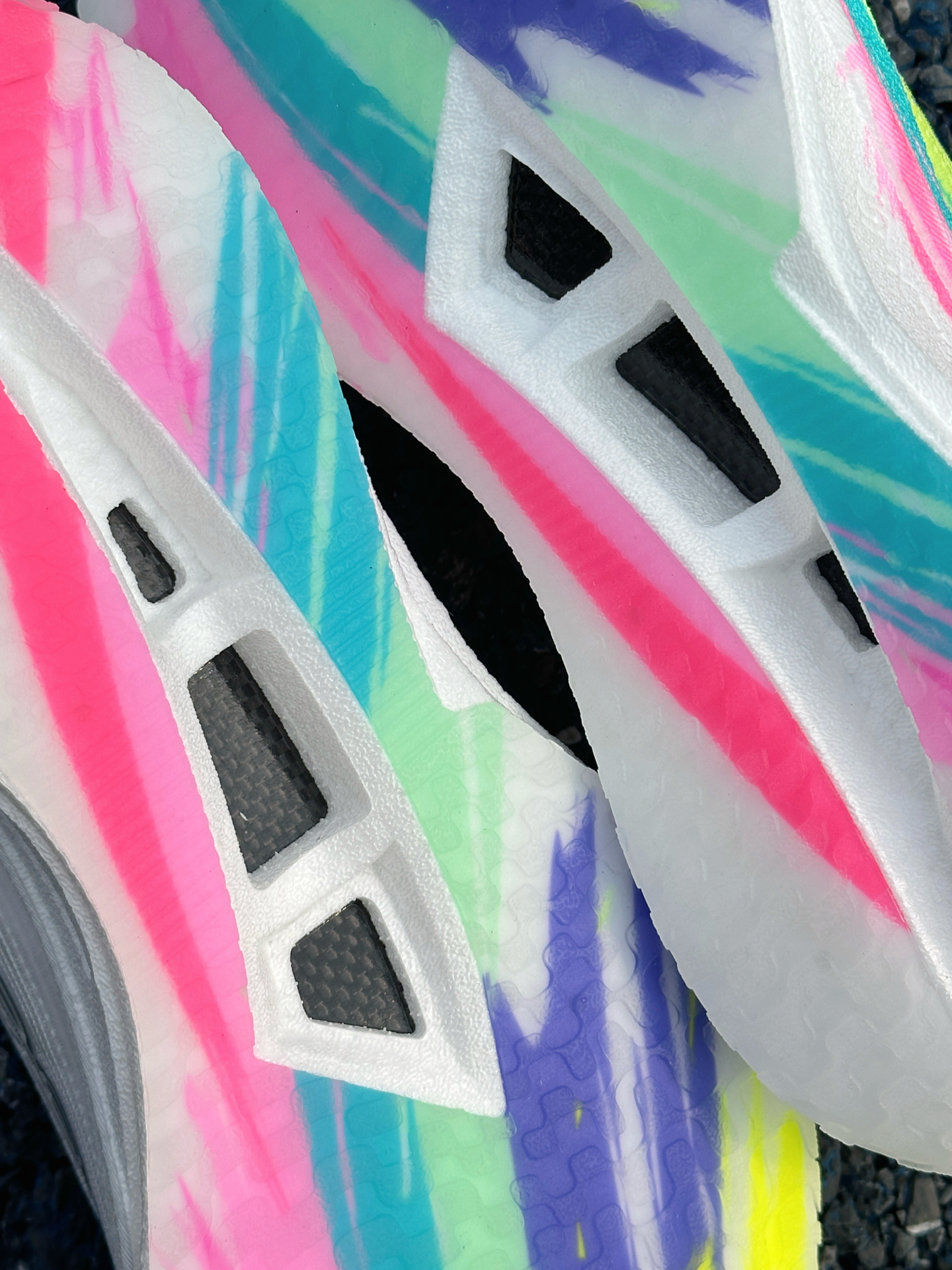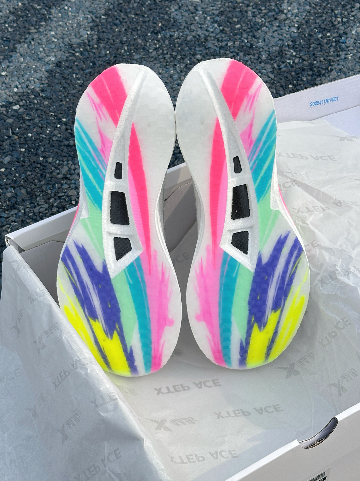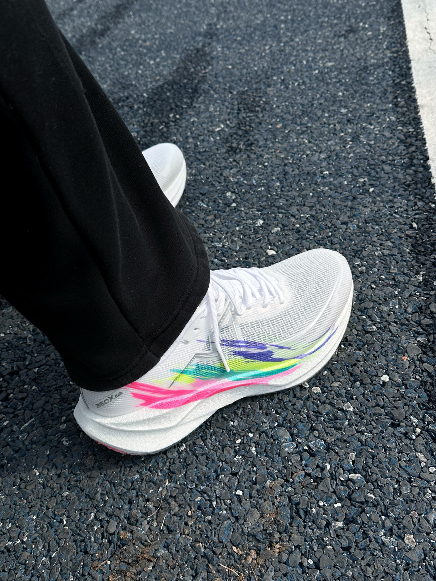 ✨Hello~大家好!这里是以梦喂马 我一直想找一双能兼顾成绩提升与舒适易穿的碳板跑鞋。 新出的特步360X3.0正合我的“胃口”✌🏻 首先颜值方面是真的好看阿 整体设计清爽亮眼,鞋身以干净的白色为基底,搭配七彩渐变笔触涂鸦,仿佛为双脚装上了一对轻盈的“彩虹翅膀”。 配置方面 柔态碳板突破:搭载特步首创的 BT400 柔态碳板,采用航天级玄武岩纤维与碳纤维复合而成。这种复合材料的结合显著提升了碳板...