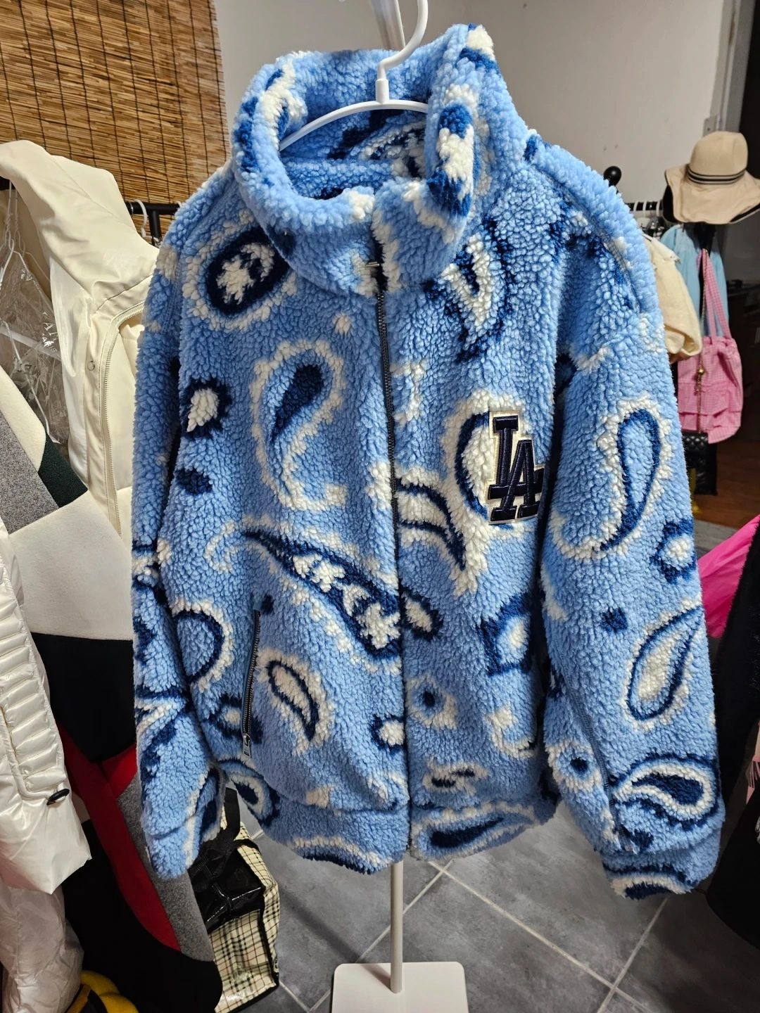 💙MLB这款羊羔绒外套,蓝色腰果花图案超有辨识度,左胸LA标志超吸睛!材质柔软又保暖,秋冬穿超舒服❄️。宽松版型,S-M码可选,日常休闲、街头风都能轻松驾驭,搭配T恤或卫衣就很出彩✨。