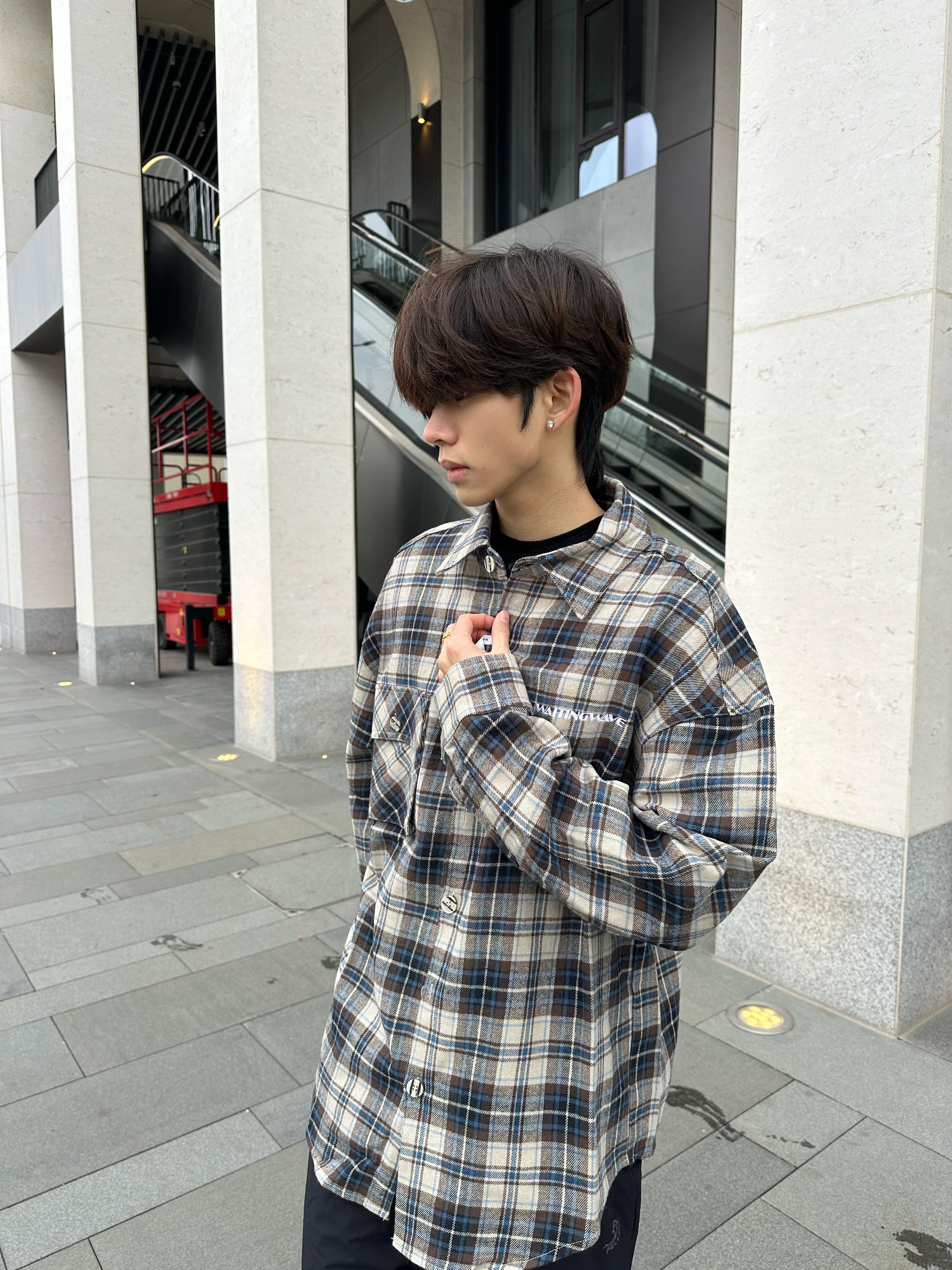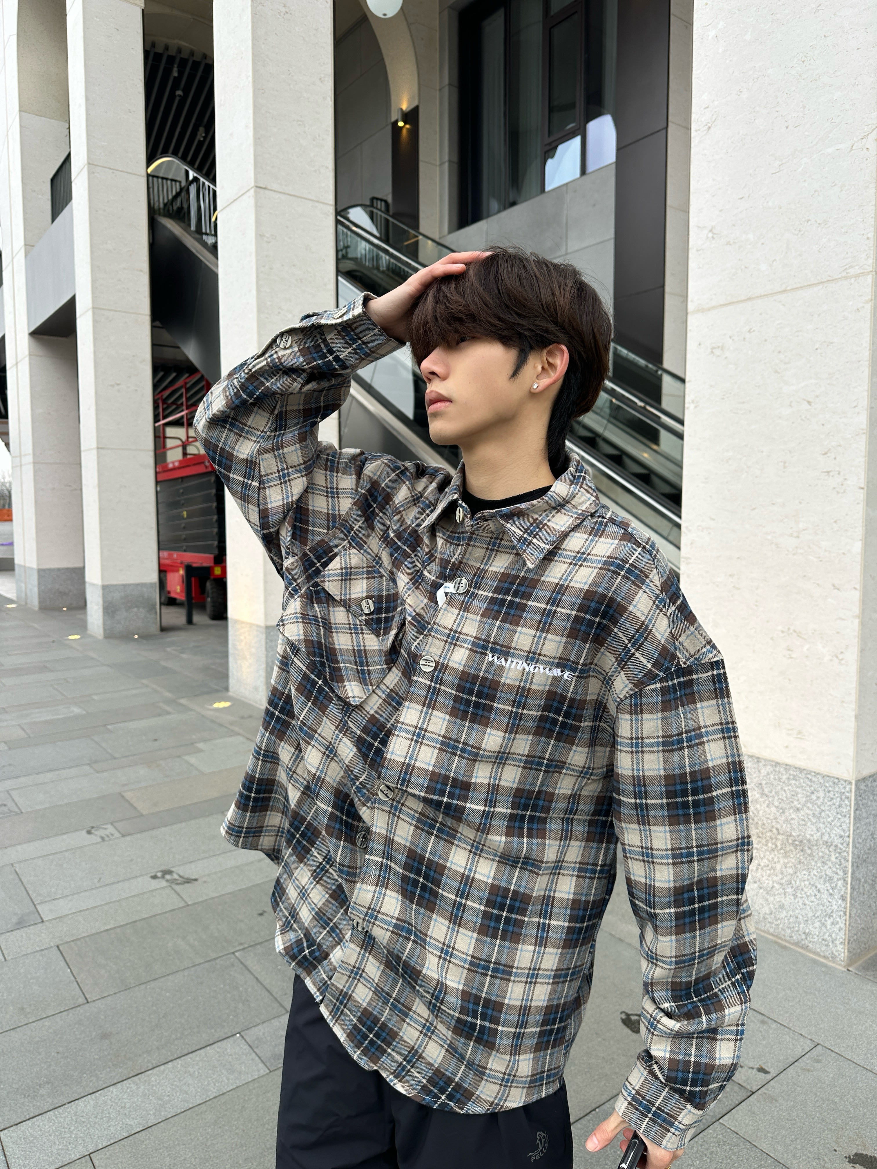谁还没被这件复古格纹衬衫戳中啊!米蓝棕的配色真的太温柔了,磨毛面料摸起来软乎乎的,春天单穿或者叠在卫衣里都巨合适。 宽松版型对各种身材都很友好,胸口小刺绣和口袋细节超加分,随便搭个黑内搭+休闲裤,站在商场门口随手拍都很出片📸 慵懒又不拖沓,少年感直接拉满。 真的会爱这种不用费脑就能穿好看的单品,开春衣柜必备的一件✨