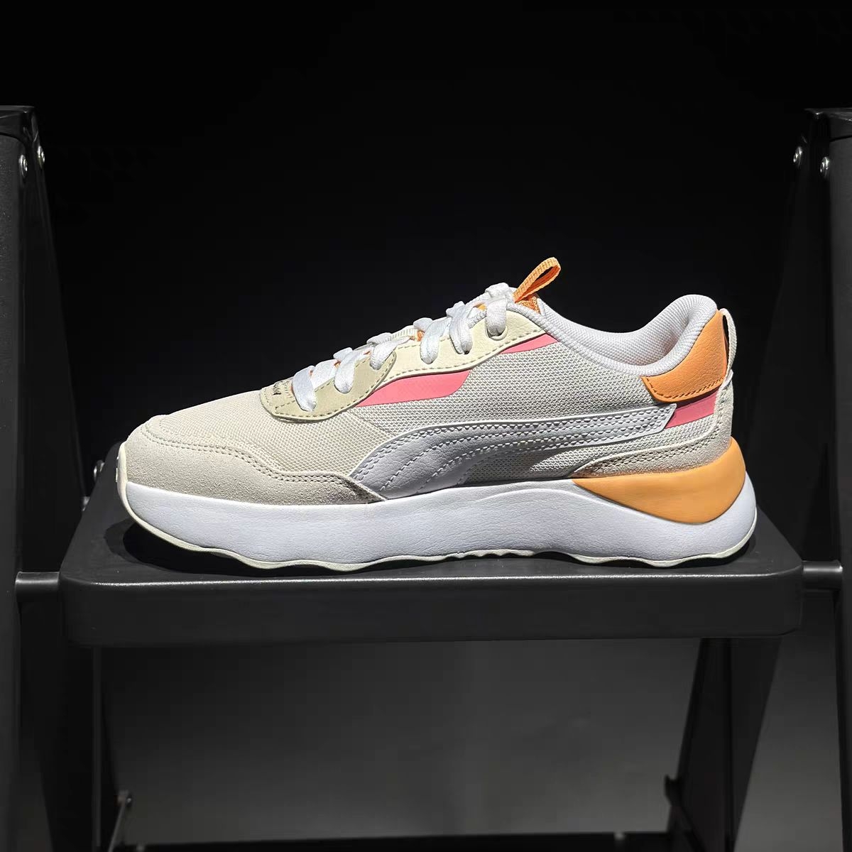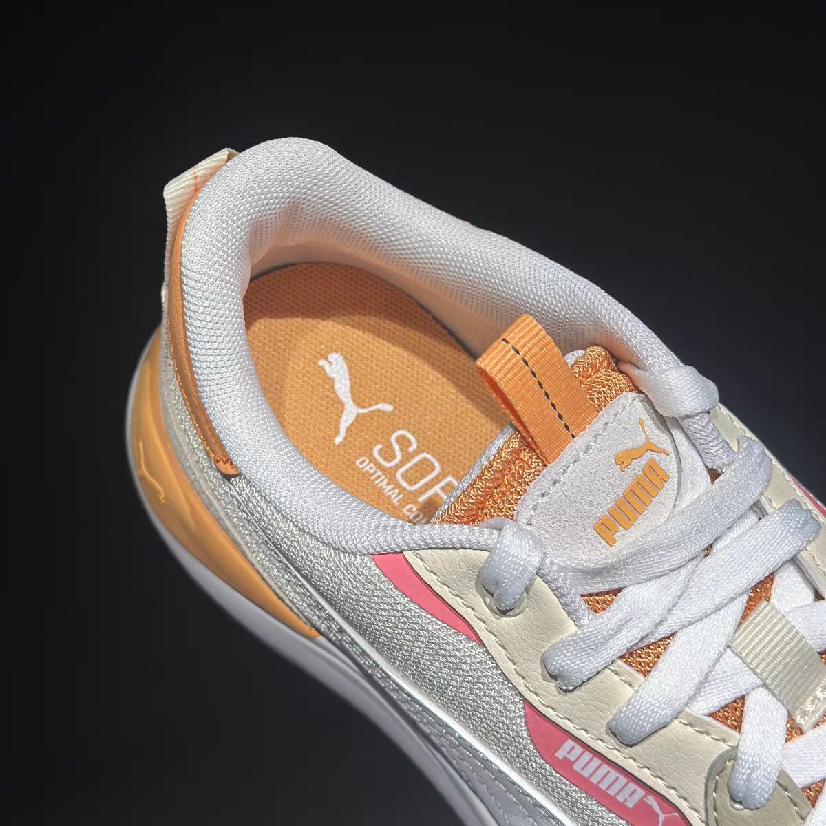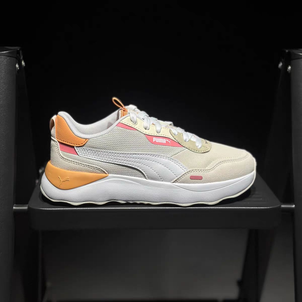 家人们!挖到宝了!这双PUMA休闲鞋真的把春日氛围感焊在鞋面上了,谁穿谁是元气甜妹✨ ✨ 颜值暴击:柑橘撞色太绝了 米白网面打底,搭配元气橘粉撞色,鞋侧经典跑道纹瞬间点亮活力感,温柔又不撞款! 奶油白厚底设计,悄悄拉长腿部线条,小个子姐妹直接闭眼冲,上脚显腿长一绝👟 细节控狂喜!鞋舌后跟贴心提拉设计,穿脱超方便;SOFTRIDE舒适鞋垫,踩上去软乎乎的,暴走一天脚都不酸~ 💨 实穿感:...