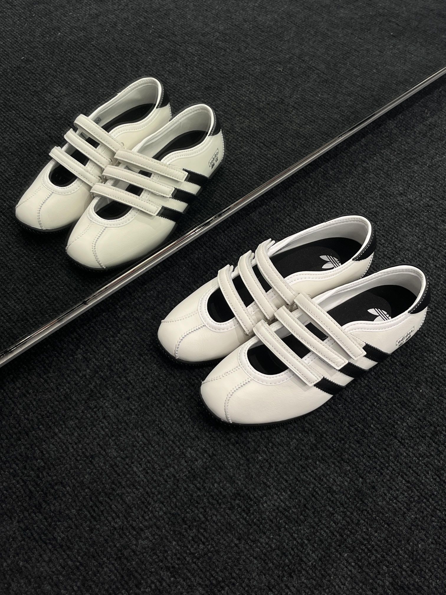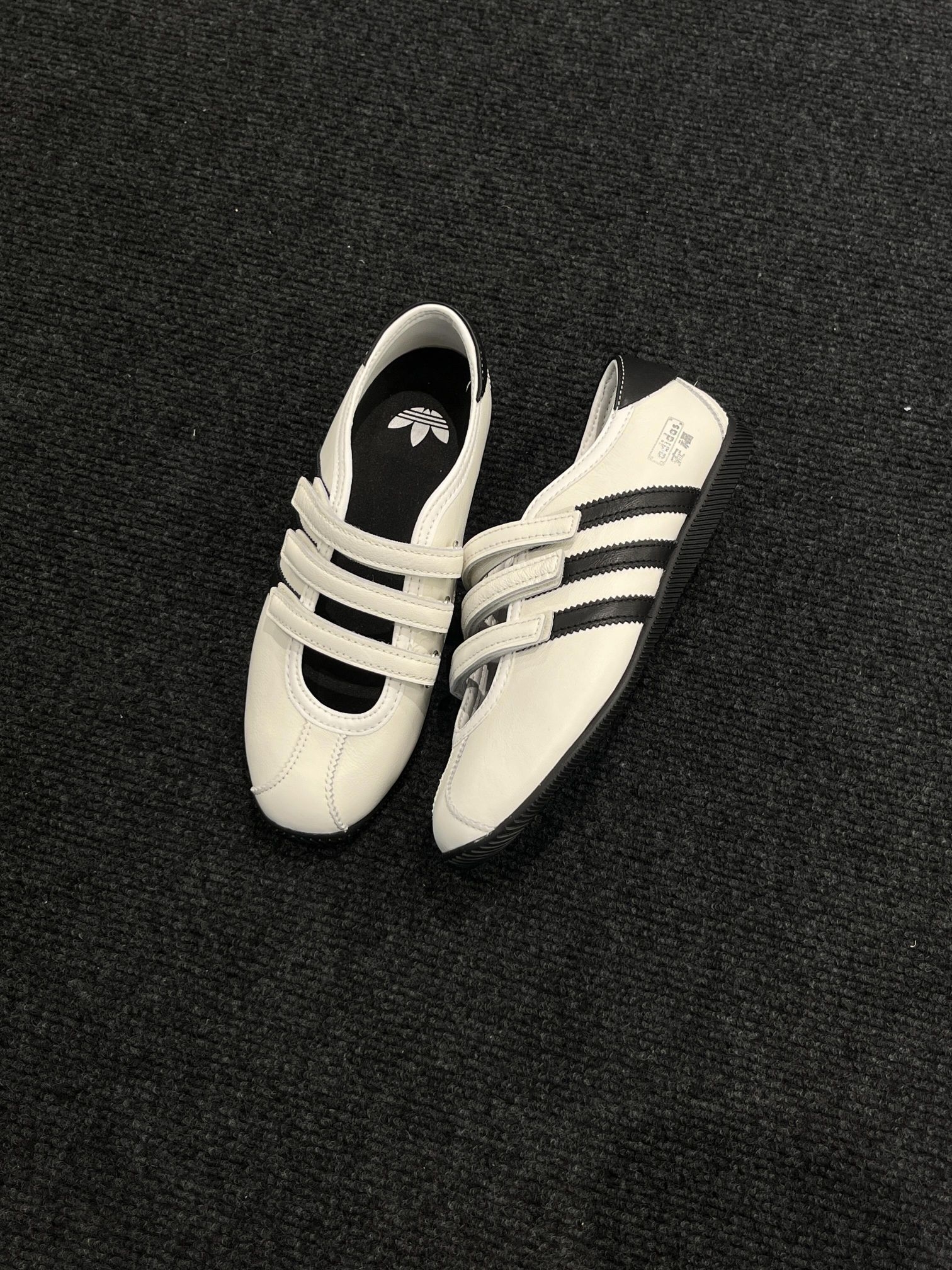 谁能拒绝这双软fufu的魔术贴玛丽珍啊!奶白皮革+经典黑条纹,复古感和少女感直接拉满,三叶草小标藏在细节里,精致感绝了~👟三条魔术贴设计,穿脱超方便,不用系鞋带太适合懒人!软底+浅口版型,上脚温柔又显脚小,配连衣裙、百褶裙、牛仔裤都很绝,通勤、约会、上学都能穿,春夏温柔风穿搭直接锁死这双!!!