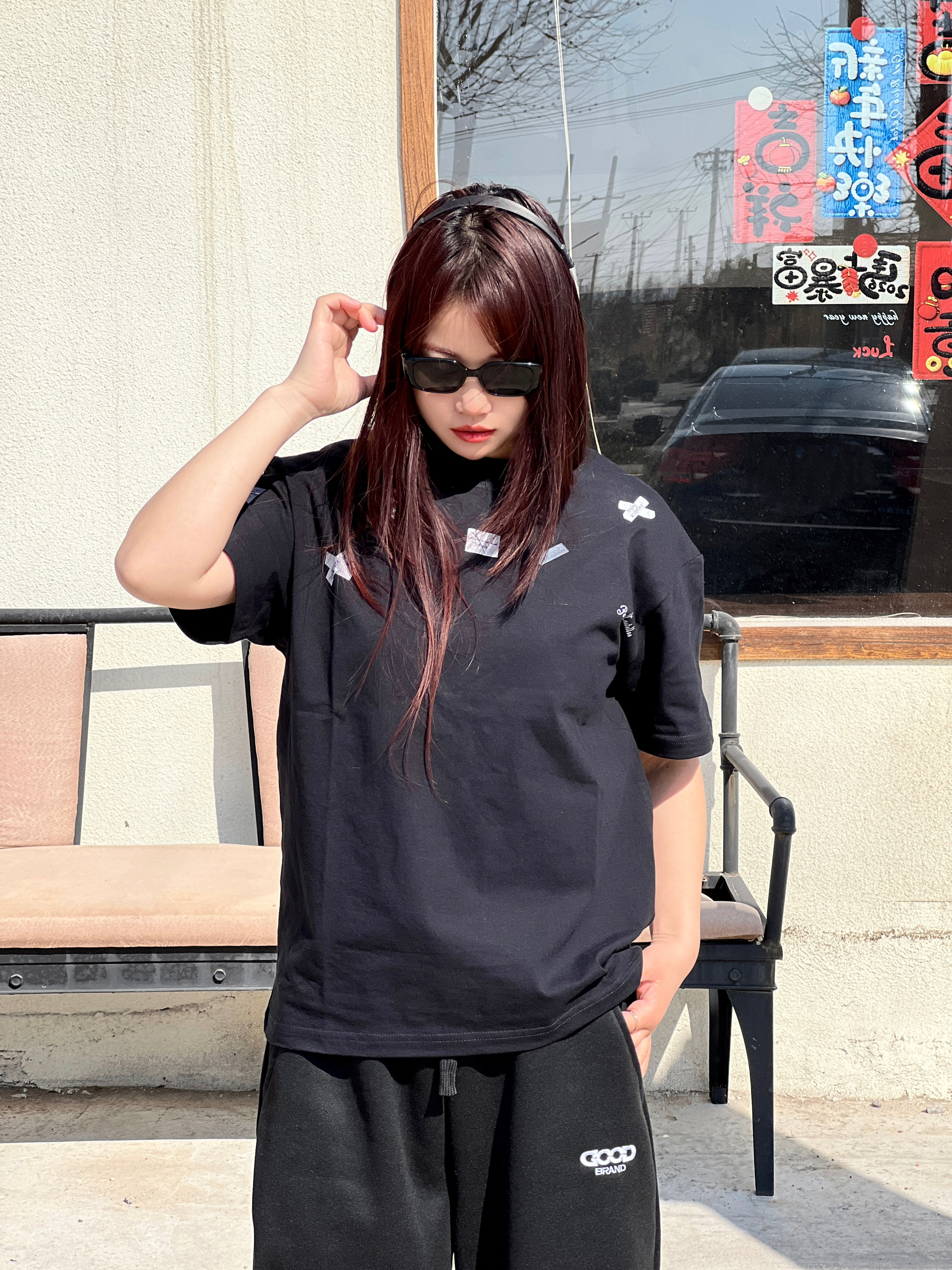 春夏少不了印花T恤 重磅棉质短袖是我的首选 更耐洗♻️更不易变形 看起来也会更有质感 🕶黑色宽松版型的短袖➕黑色阔腿卫裤➕黑色老爹鞋 春夏也要all black复古街头感 我身高158cm,体重52-53kg 穿得S码,挺括显瘦