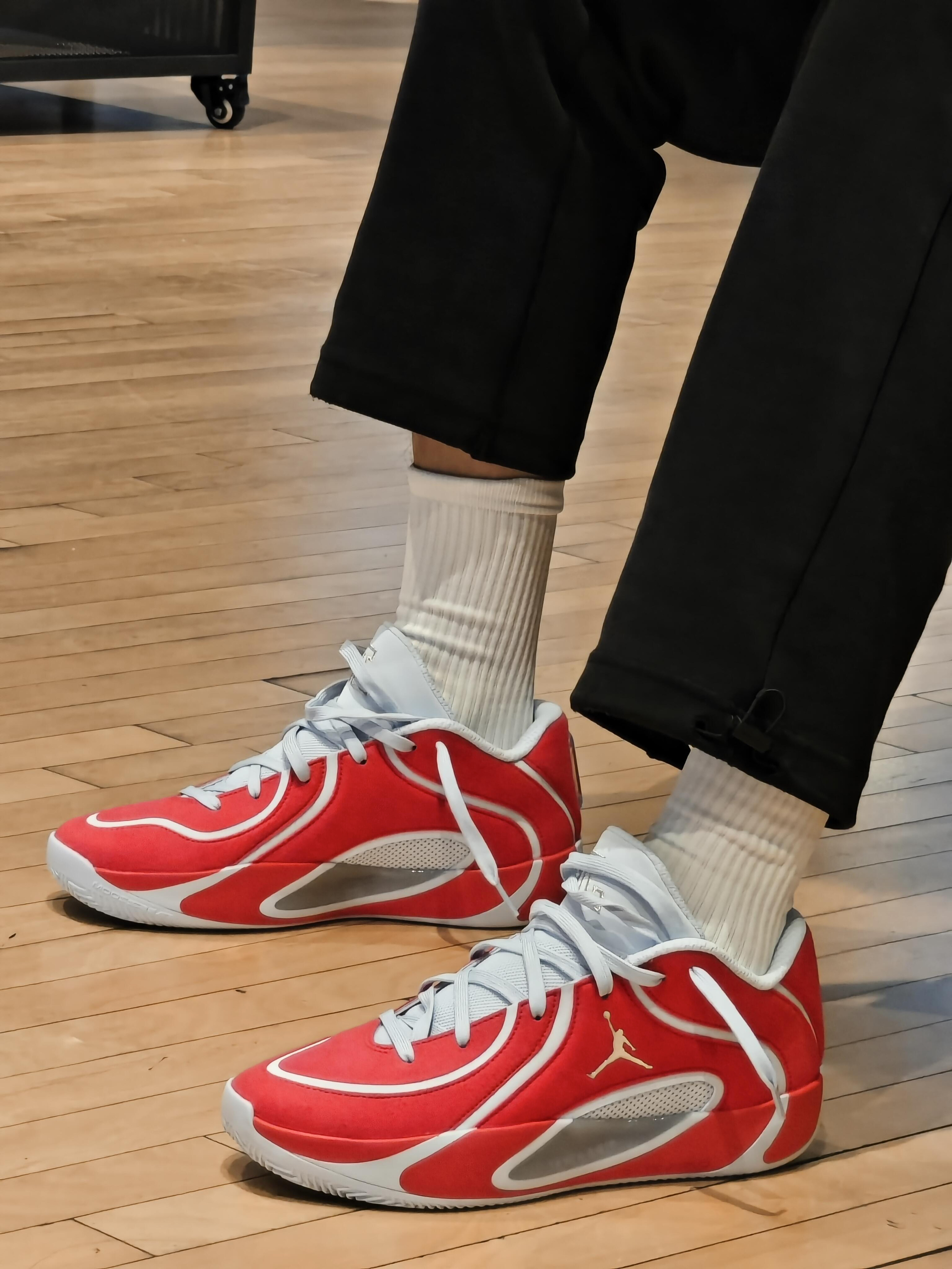 🔥Jordan Tatum 4 红白金战靴| 谁能拒绝这双红白金配色的塔图姆4代啊! 鲜艳红色+白金细节,上场直接slay全场,回头率拉满💯 中底缓震回弹绝绝子,变向突破毫无压力,实战党狂喜~ 日常搭配黑裤白袜,街头感直接拉满,打球出街两开花! 塔图姆球迷和篮球鞋控必冲,这双真的帅到没朋友!