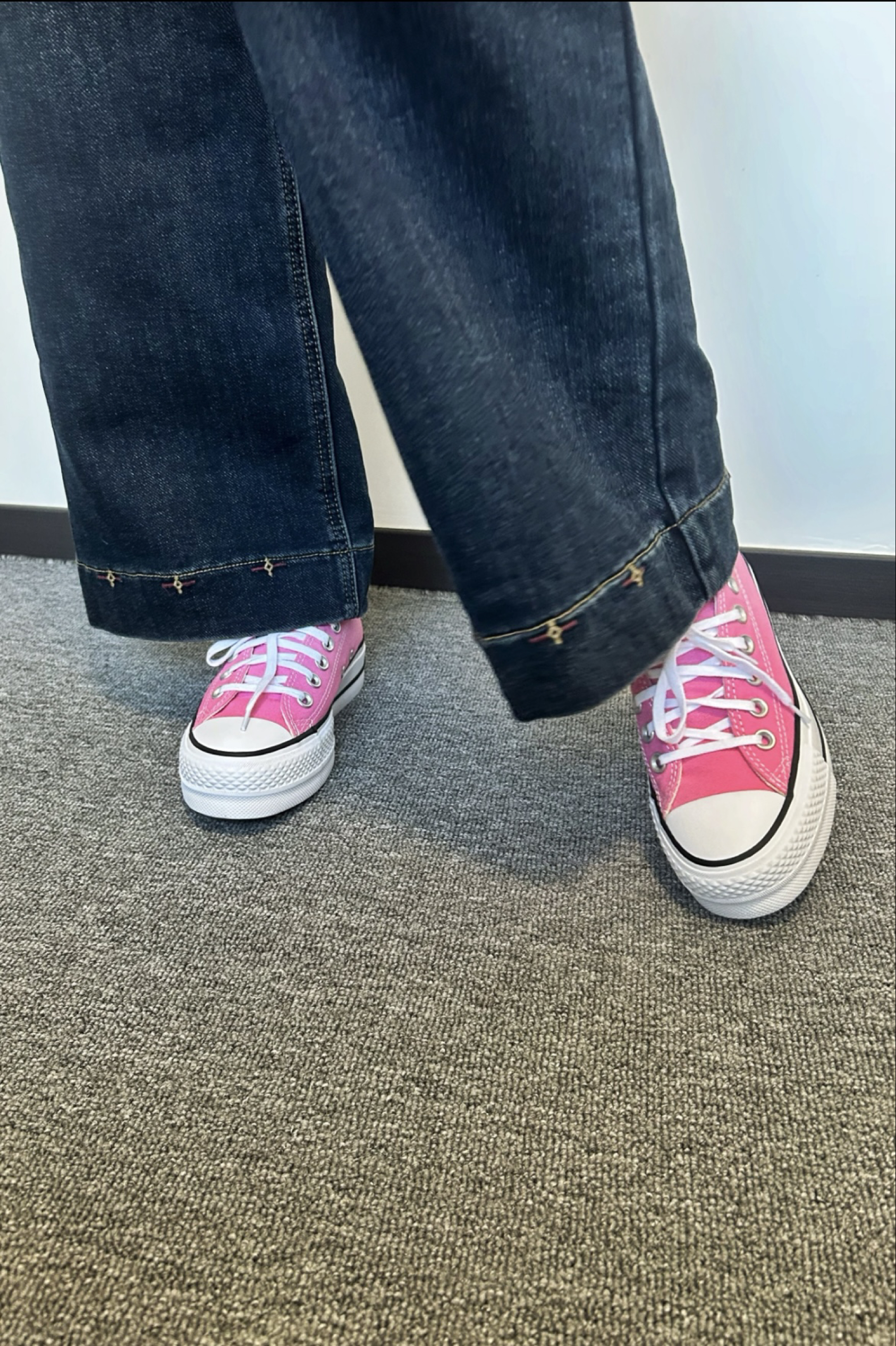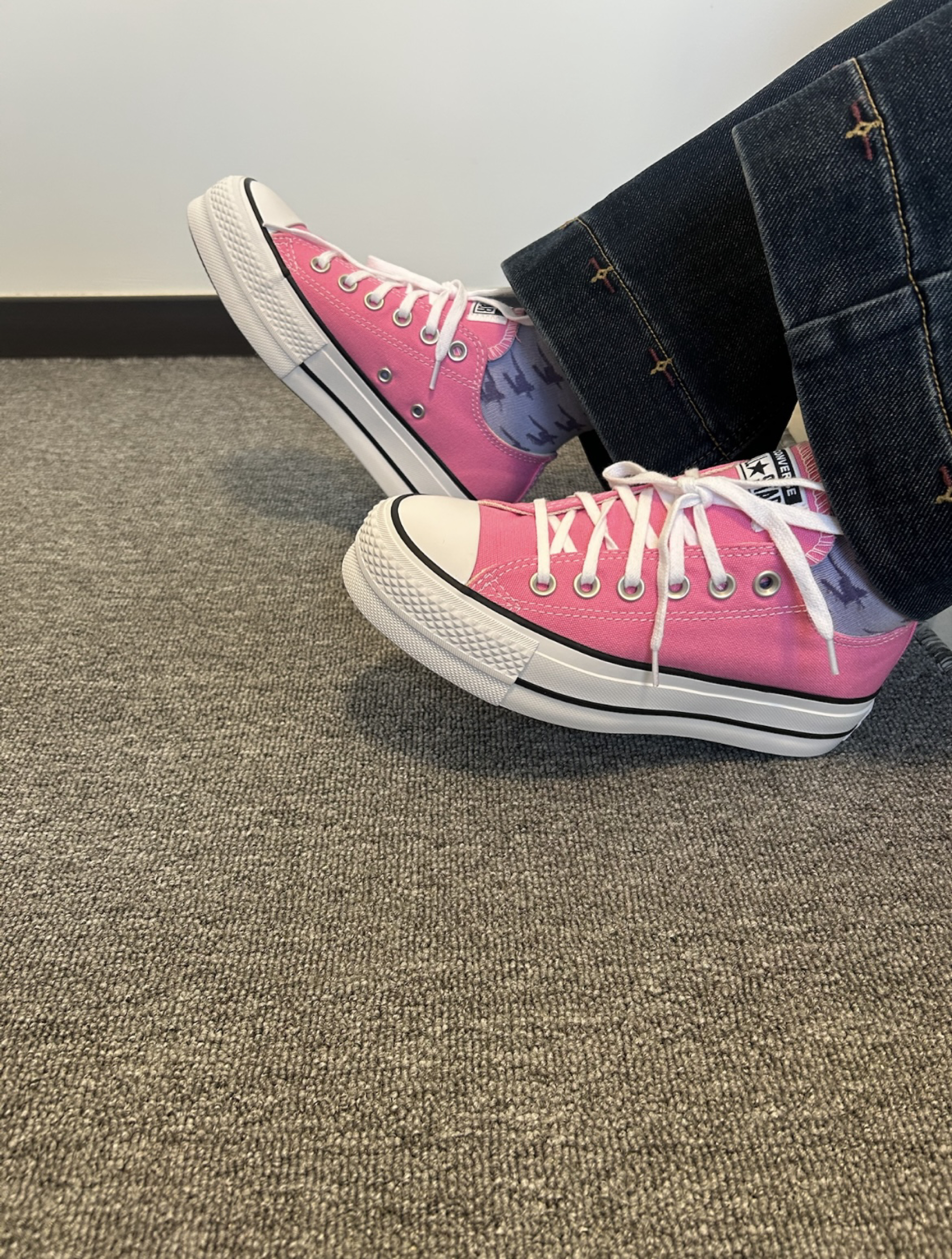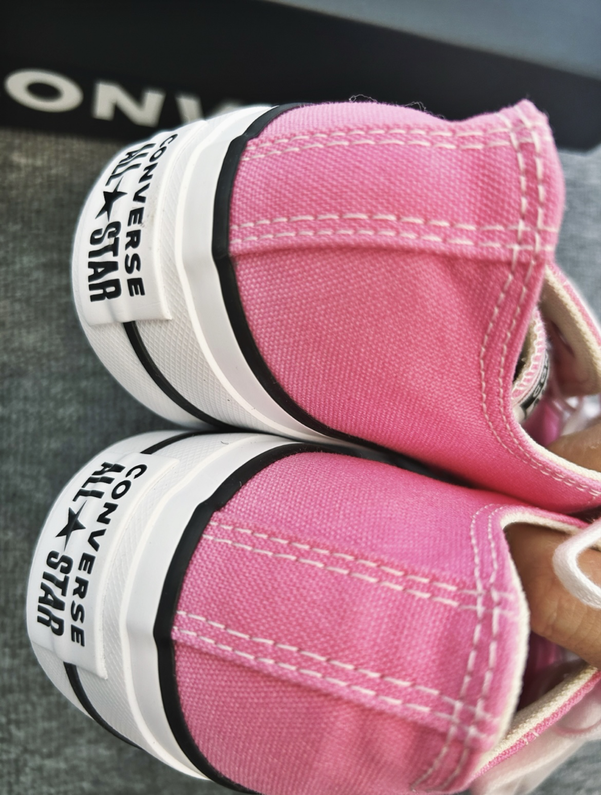 春夏亮色帆布鞋,这双匡威厚底低帮鞋,无滤镜实拍,优缺点全给你们说清楚! ✨ 外观:饱和度刚刚好的蜜桃亮粉色,阳光下自带春夏多巴胺氛围感。经典低帮圆头鞋型,搭配4cm的增高厚底,鞋身走线工整,帆布面料质感细腻,黑白经典包边+鞋尾ALL STAR胶印,匡威的辨识度直接拉满。 👖 穿搭:帆布鞋天生的适配感,配阔腿牛仔裤(就是图片这条),裤脚盖住一半鞋身,厚底悄悄增高,秒变170大长腿既视感,休闲松弛感...