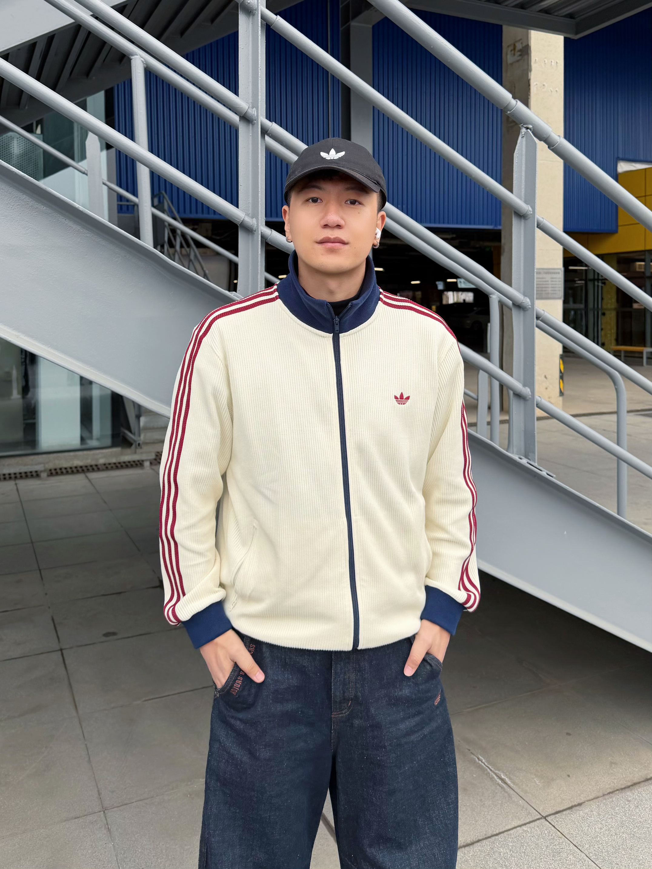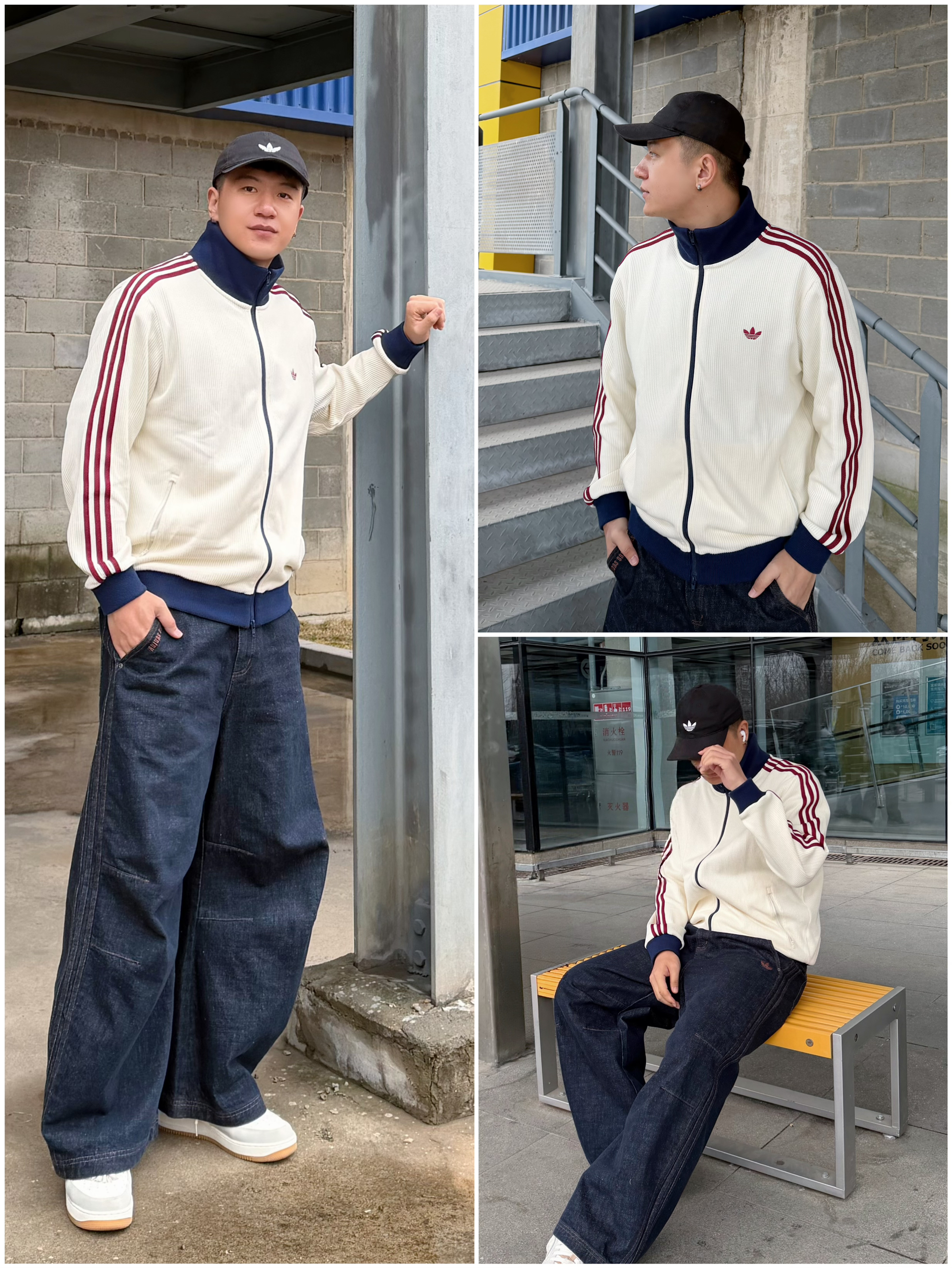 潮人春天这样穿 上身Adidas华格外套 颜色搭配很好看🥰 乳白+酒红+藏蓝拼得刚刚好✨ 裤子Adidas三叶草藏蓝牛仔,宽松裤腿 跟上衣颜色很适配 卡其板鞋收尾 慵懒又清爽 个人感觉这一身,配色高级还不挑人 轻轻松松拿捏少年感 👀 👦🏻:188 | 85 🧥:XXL 👖:36 你觉得这套穿搭更适合什么场景呢
