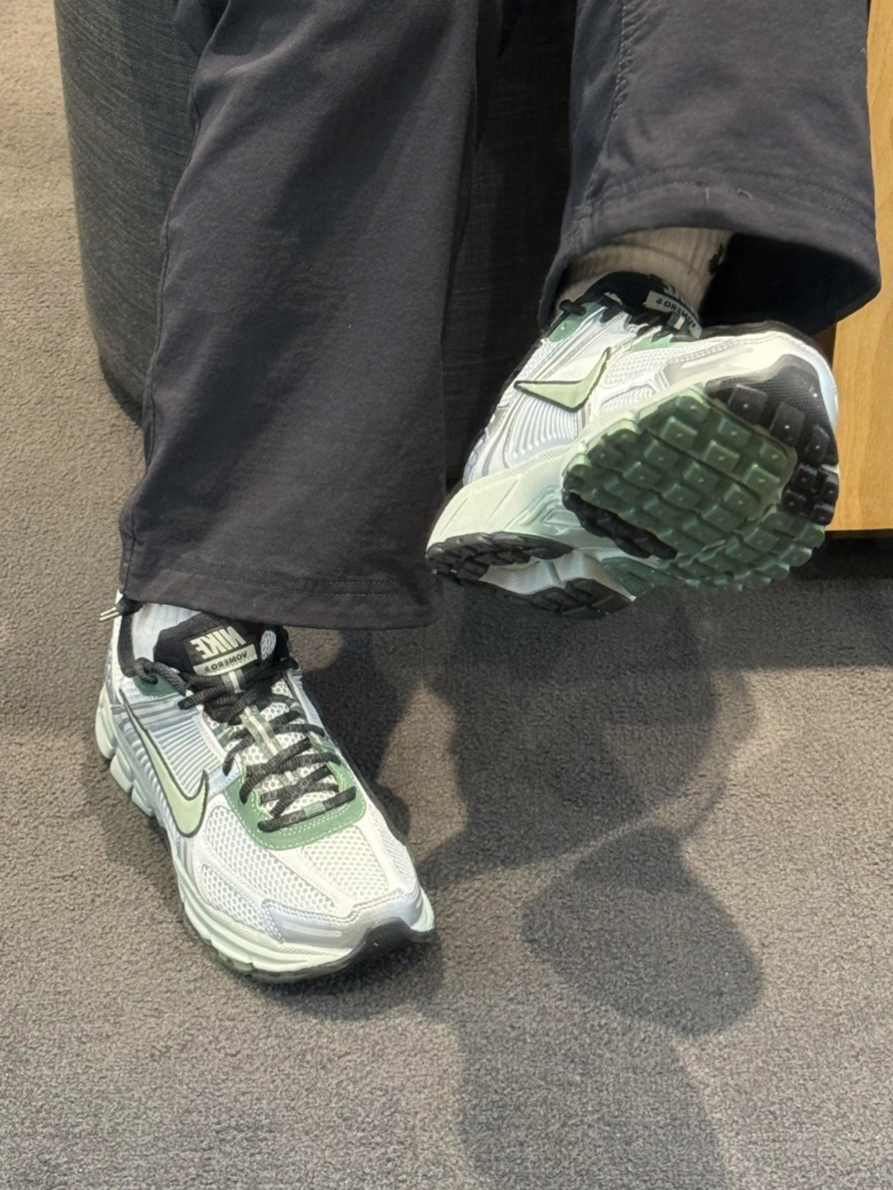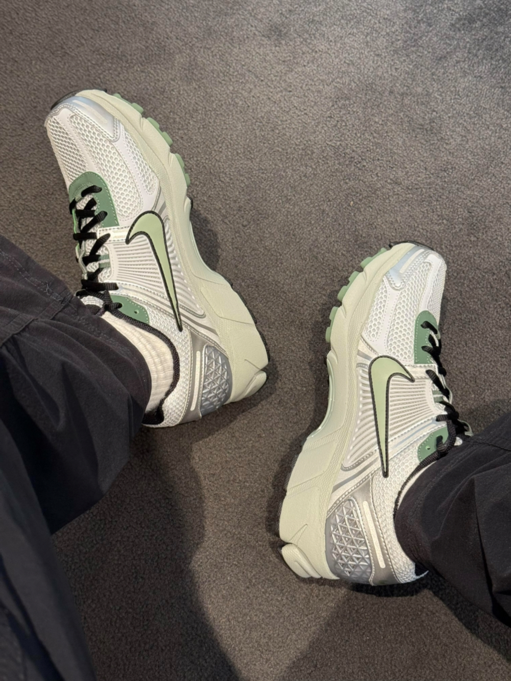 这双Nike老爹鞋颜值真的杀疯了🥹 Nike Zoom Vomero 5 绿银配色也太有质感了吧✨ 清冷绿+高级银撞色,小众又不烂大街,低调里带着满满设计感。 低帮鞋型利落干净,穿脱超方便,日常通勤、运动出街都适配。 颜色不张扬、不挑穿搭,配裤子、裙子都很耐看, 舒适度在线,颜值也在线,日常穿完全不违和。 百搭又耐看,越穿越上头,通勤党、运动党闭眼入都不亏💚