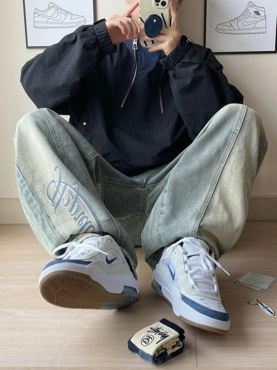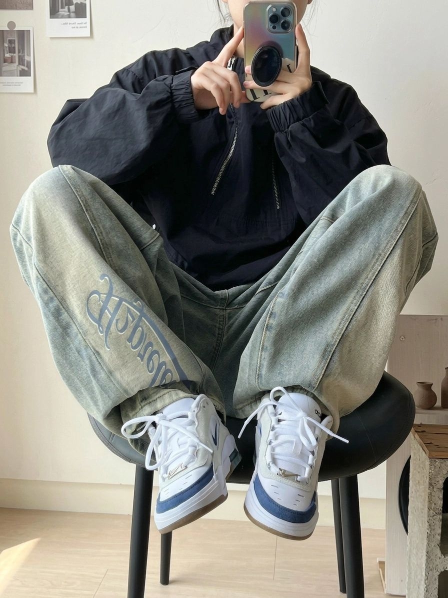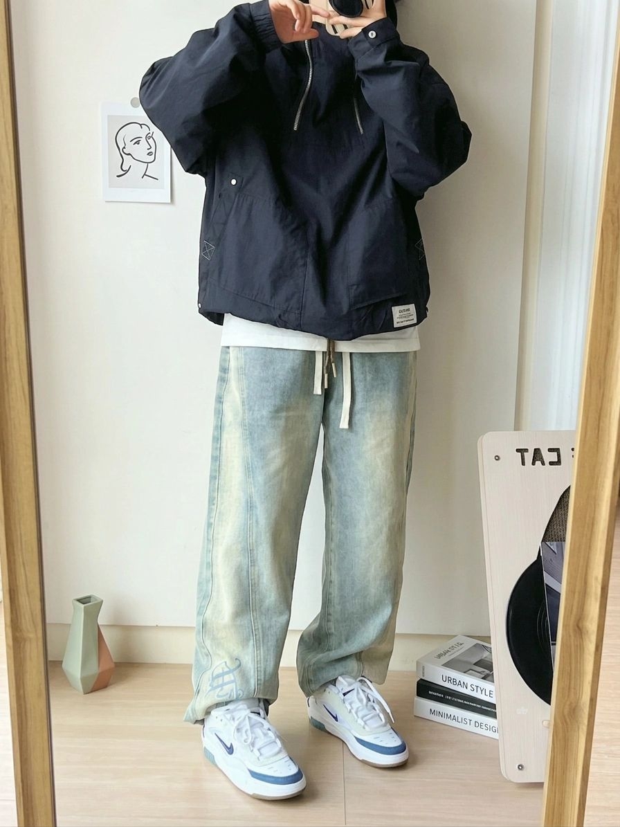 谁懂啊!这条印花阔腿裤也太酷啦🛹|||想买宽松牛仔裤,看中这独特的复古印花和贴布直接买啦~ 穿上就是那种垮垮的街头感!面料软软的很舒服,hin遮肉。随便搭件黑外套和运动鞋就能出门,帅气又自在··😎 #街头风宝藏牛仔裤 #街头风宝藏百搭牛仔裤 #酷飒男生宝藏百搭牛仔裤 #甜酷男生宝藏裤子推荐 #街头风宝藏牛仔裤穿搭