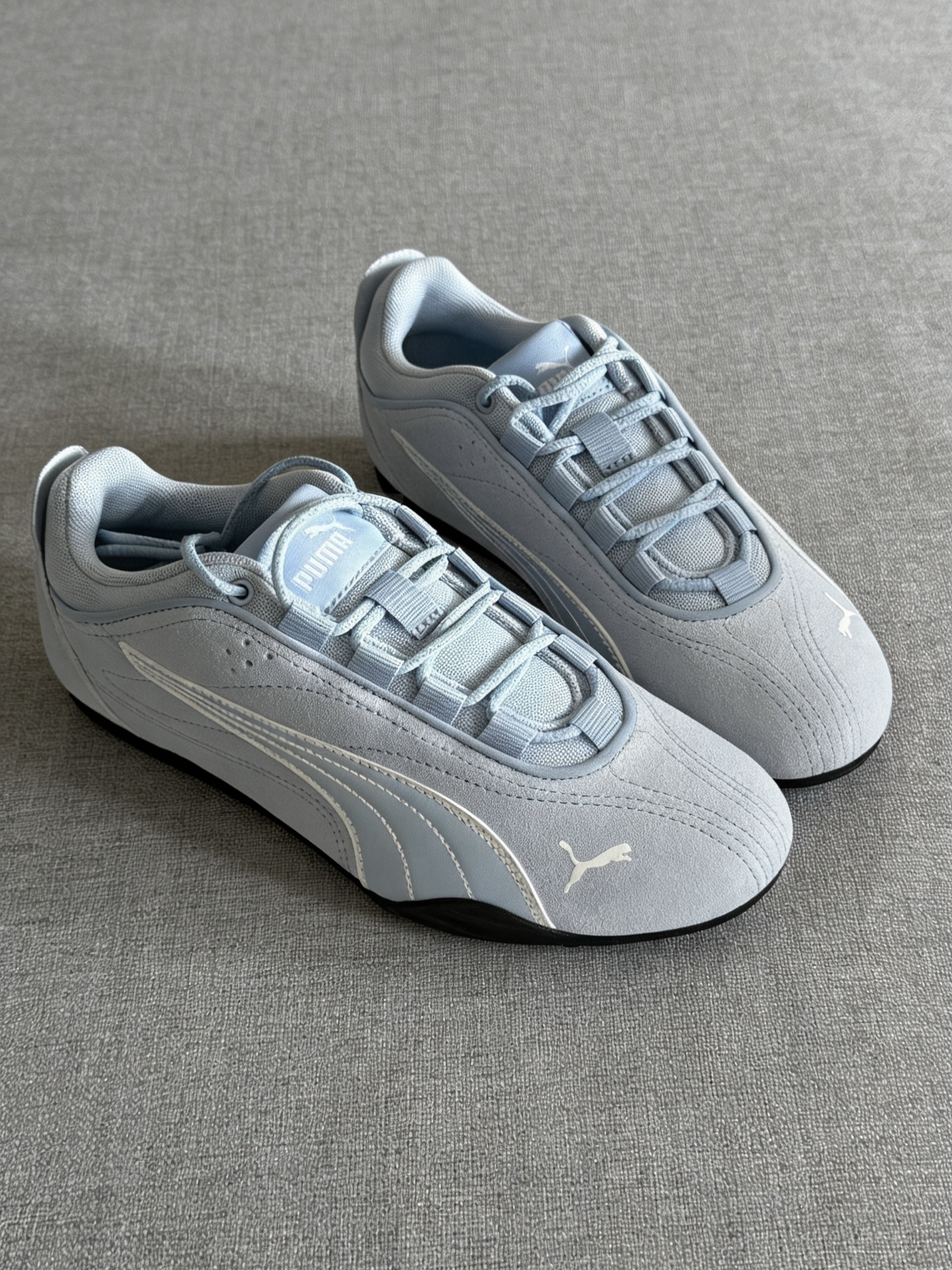 谁能拒绝一双温柔又有质感的鞋啊!这双PUMA真的把极简温柔风玩明白了✨ 细腻麂皮鞋面摸起来软乎乎的,车线工整细腻,鞋侧的白色流线型线条和美洲狮logo低调又有辨识度,魔术贴+鞋带的设计兼顾美观与实用性,每一处细节都透着精致感! 低帮设计+复古赛车鞋轮廓,显脚小还显腿长,搭配牛仔裤、半身裙都很和谐,日常出街、约会通勤都适配,实用性拉满! 上脚轻便不磨脚,雾霾蓝耐脏又百搭,属于那种越看越喜欢、越穿越有...