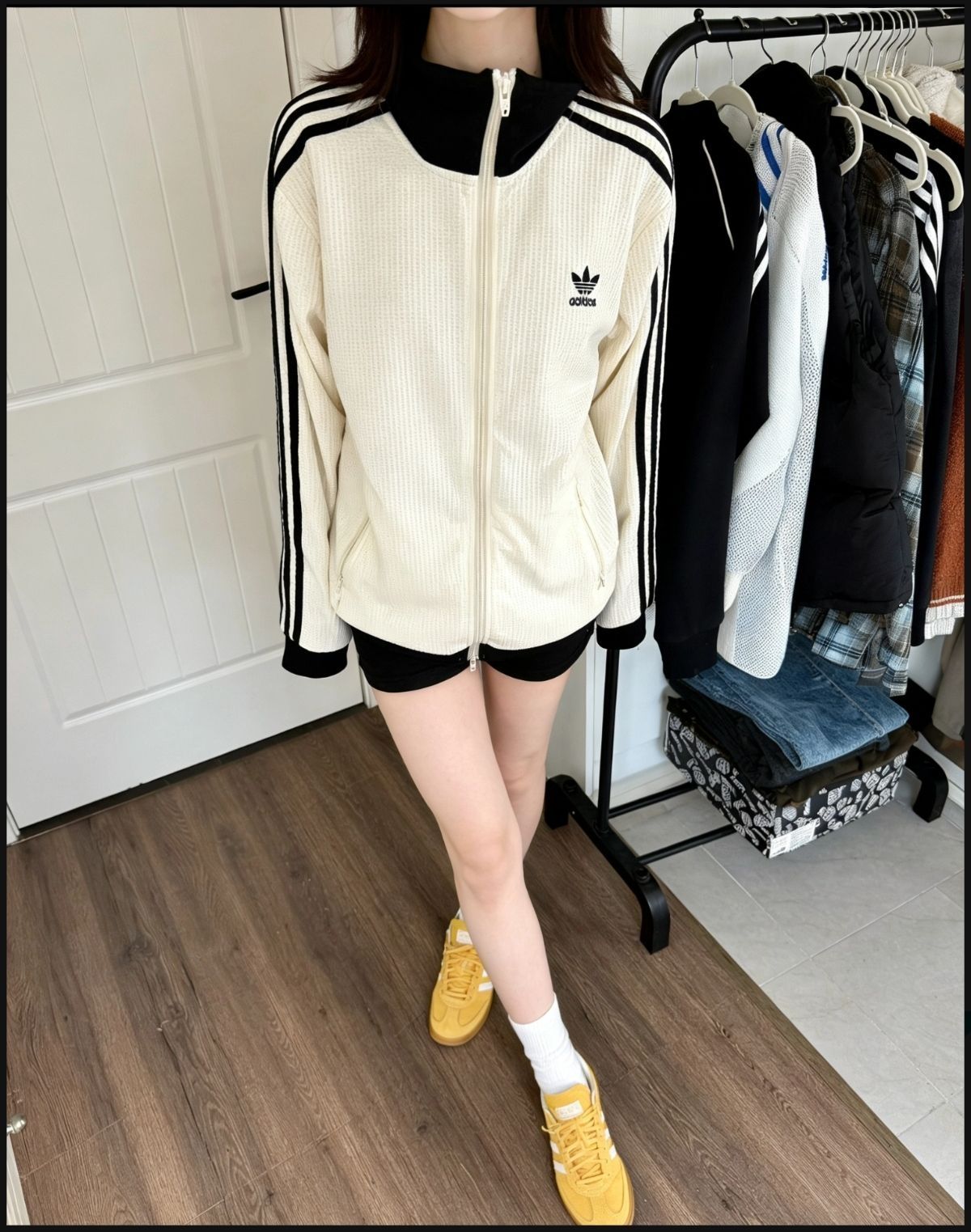 朴宰范欧阳娜娜同款!三叶草复古夹克太绝了✨ 春天citywalk封神外套来啦🌷adidas originals三叶草WAFFLE BBTT奇妙白夹克,复古立领+经典条纹,华夫格质感超高级👌男女同款宽松版型,藏肉显瘦不挑人,甜酷随意切换😎 明星同款气场拉满,日常出街、校园通勤都好穿~搭配阿迪达斯板鞋绝配👟干净清爽又有范儿,春天穿它出门回头率爆表💥百搭耐看不挑人,闭眼入不亏!