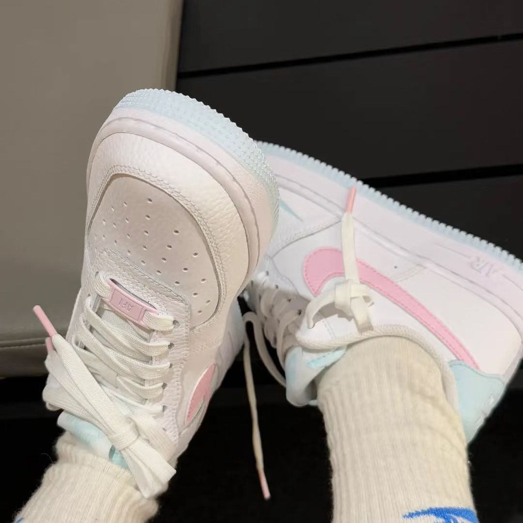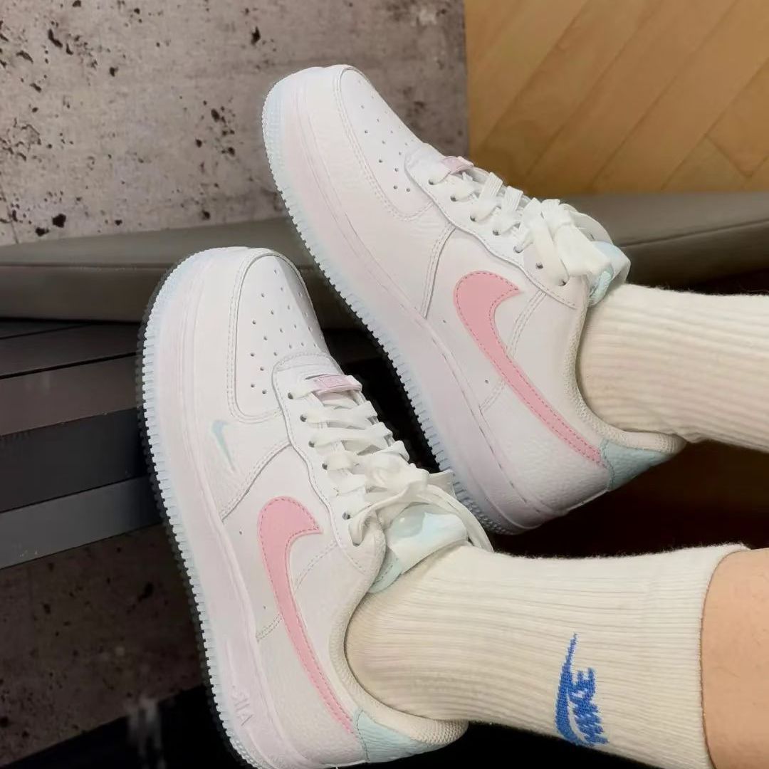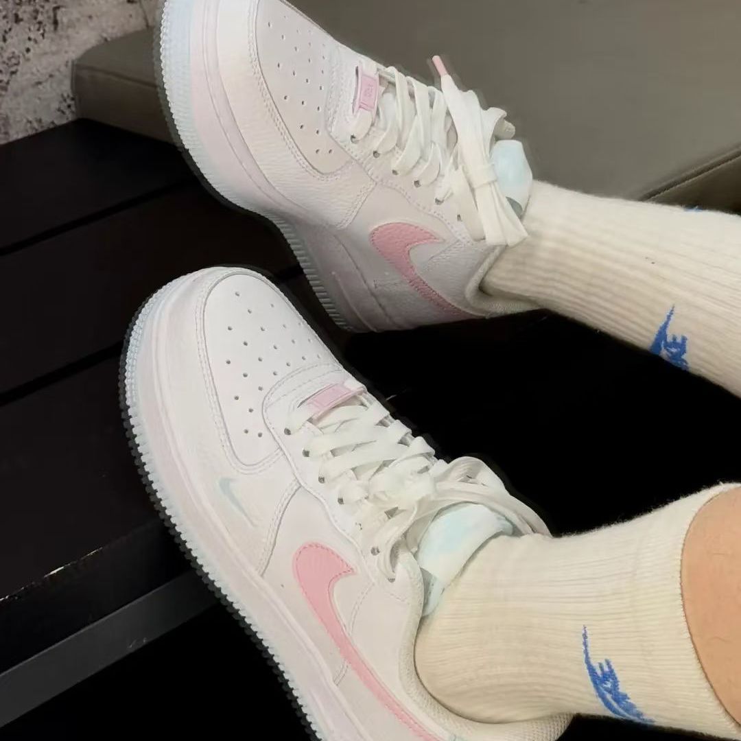 这双Nike Air Force 1真的把少女感拿捏得死死的!白+粉+浅蓝的配色,像咬了一口草莓薄荷冰淇淋,温柔又清新,春天穿它出门回头率直接拉满💖 ✨ 颜值细节 - 荔枝纹鞋面:摸起来细腻有质感,耐造又显高级 - 粉蓝撞色:粉色Swoosh+浅蓝后跟+冰蓝外底,温柔又清爽,完全不挑皮 - 小勾点缀:鞋身侧面的迷你浅蓝小勾,细节控狂喜! 👟 穿搭万能公式 - 配白色长袜+百...