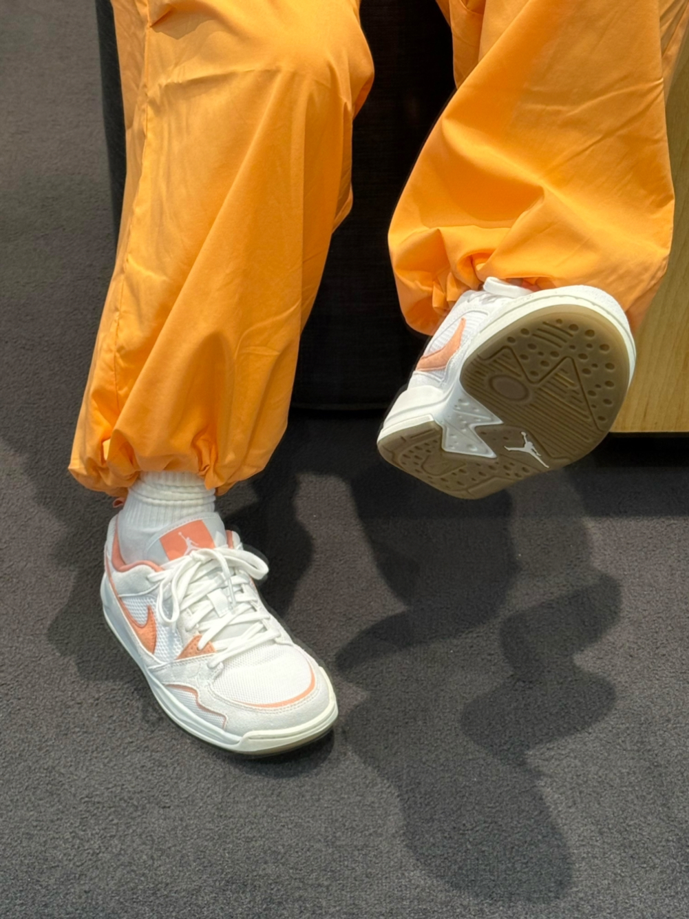 终于对这双Jordan CMFT ERA下手了!白橙撞色真的温柔到骨子里,像把春日里的白桃奶冻穿在了脚上🍑 网眼鞋面透气又清爽,搭配奶白色中底,复古感拉满还不挑穿搭,配束脚裤、牛仔裤都超和谐。 上脚轻便又软弹,走路久了也不累脚,日常通勤、周末出街都能hold住,颜值与舒适度双在线,温柔系女生闭眼冲都不会错!