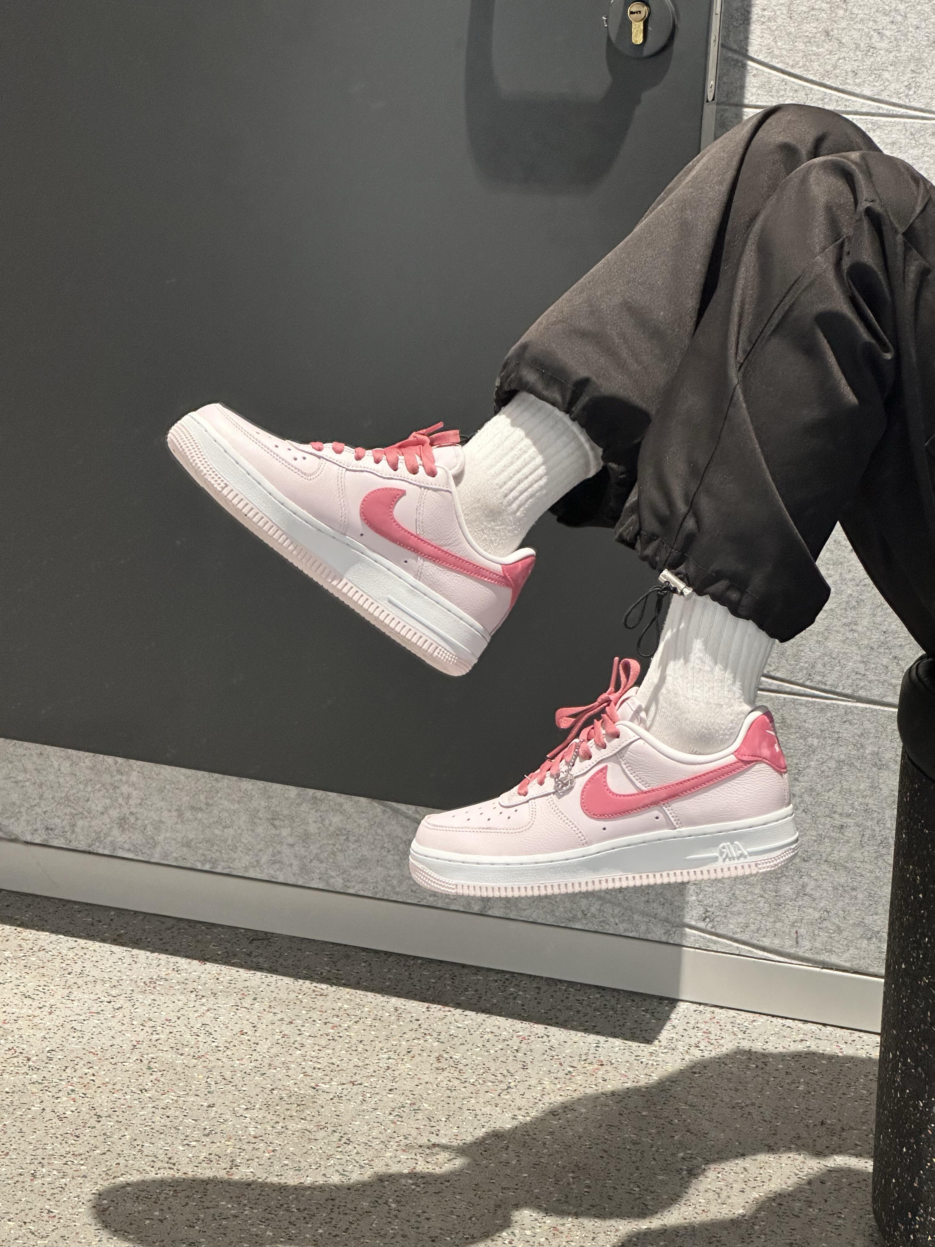 被这双Nike Air Force 1 粉桃配色狠狠拿捏了!上脚就是行走的春日樱花🌸 • 颜值设计:浅粉鞋身+深粉Swoosh与鞋带,渐变感温柔又有层次,像把蜜桃汽水穿在脚上,甜而不腻,少女感直接拉满;鞋侧还挂着迷你小挂饰,细节精致又可爱,辨识度拉满。 • 脚感体验:经典AF1厚底设计,缓震软弹,走路轻便不磨脚,皮革鞋面耐造又好打理,日常穿抗造不心疼,春夏穿也透气不闷脚。 • 搭配场景:配黑...