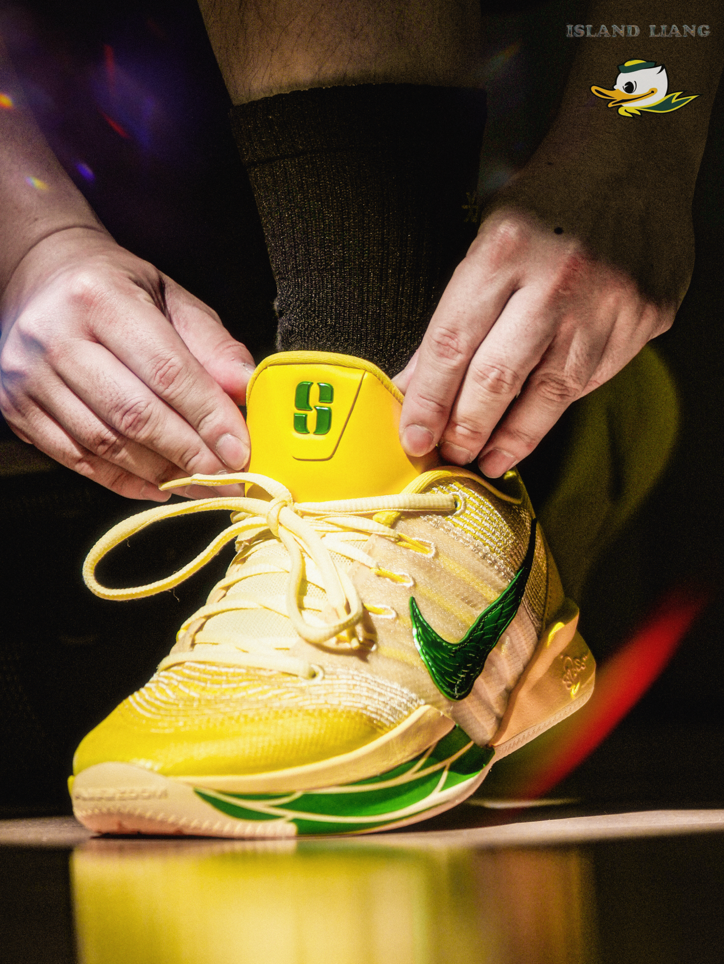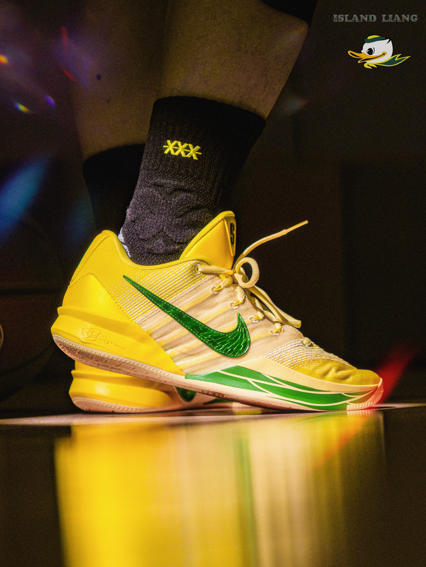 从首次看到这款配色开始我就一直期待入手 直到近期遇到好的机会所以如愿拿下! 这款Sabrina 3的俄勒冈配色 可以说完全被细节质感征服 对比于前两代的俄勒冈配色 诚意完全上了一个档次 侧向的Swoosh有着羽翼的浮雕暗纹 以及防侧翻脚处标志性的翅膀图案 味是真对上了 距离完全体的俄勒冈大学PE配色 只差个鸭头🦆~ #新鞋零时差 #红包到手球鞋就有 #Sabrina3代俄勒冈鸭子