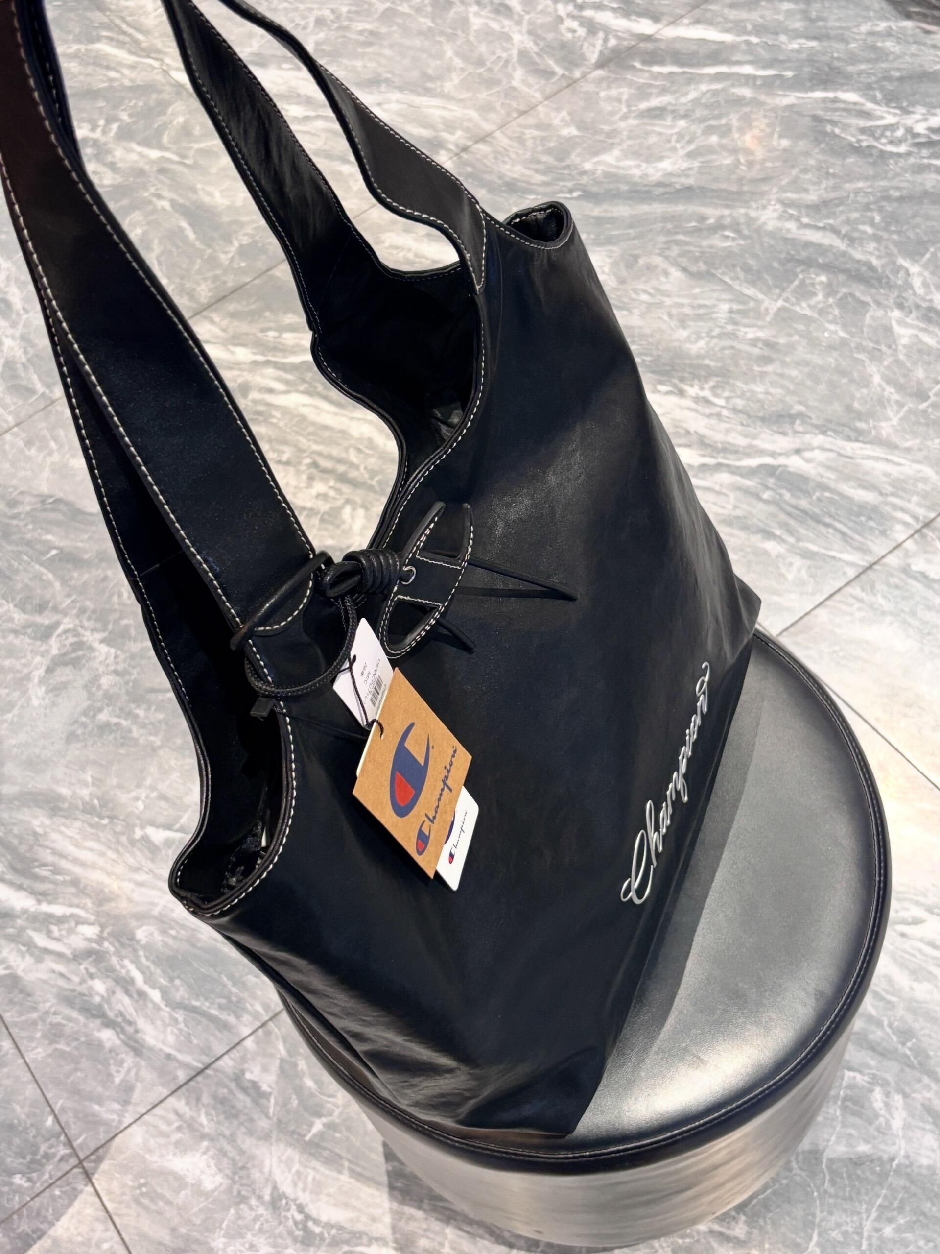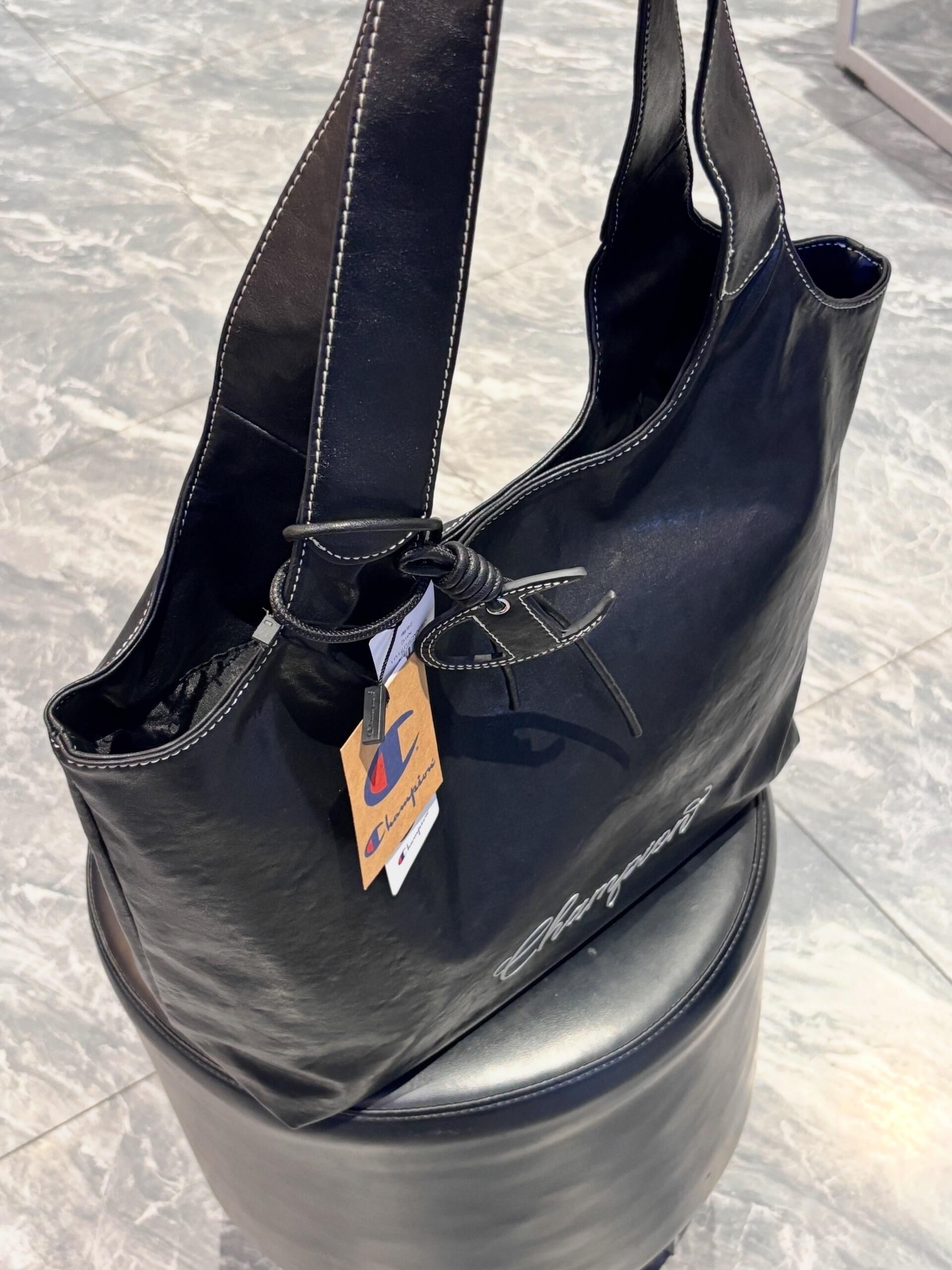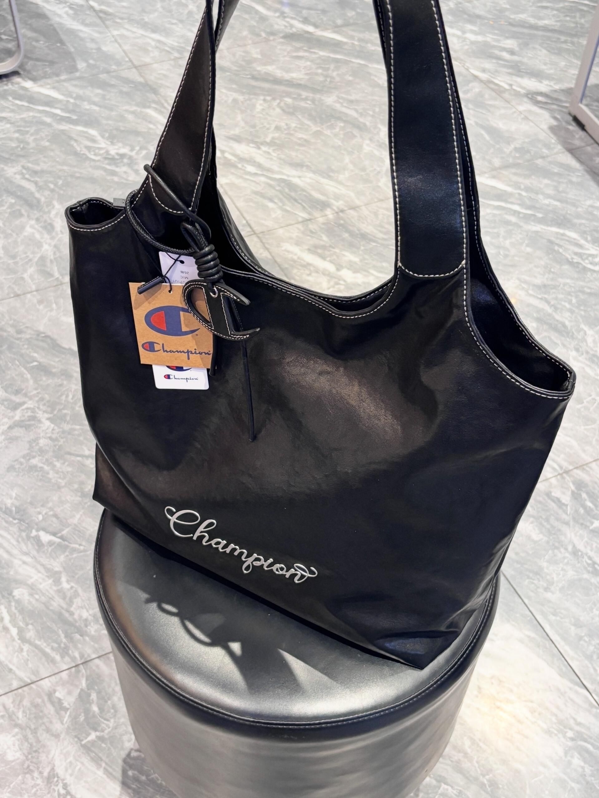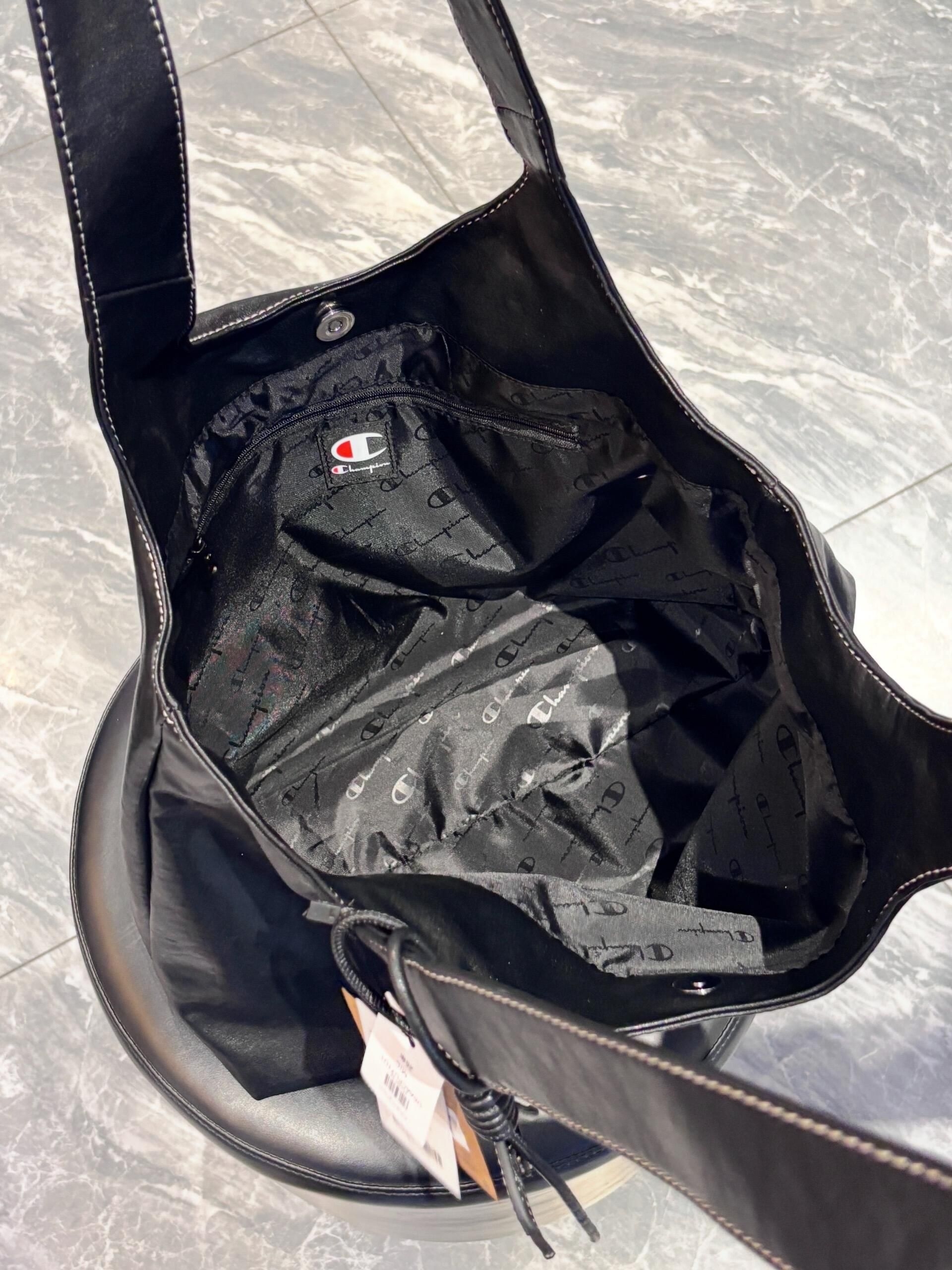 冠军介个黑色托特包也太实用了吧 包包皮质手感摸起来很舒服 正面有一个冠军logo 挺有设计感的 容量还蛮大的 平时可以装下课本ipad折叠伞啥的 我感觉背出门尊滴很方便呀!
