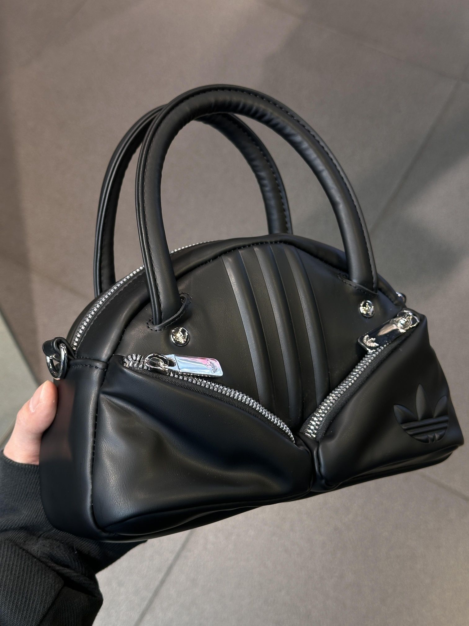🖤阿迪达斯三叶草2025新品MPS ITEM BAG,黑色PU材质,表面光滑有质感,简约又带点机能风✨。弧形包身+双拉链设计,手提斜挎都OK,通勤休闲都能搭!尺寸刚好,日常物品轻松装下,实用又时髦,是运动休闲风的百搭神器🎒。
