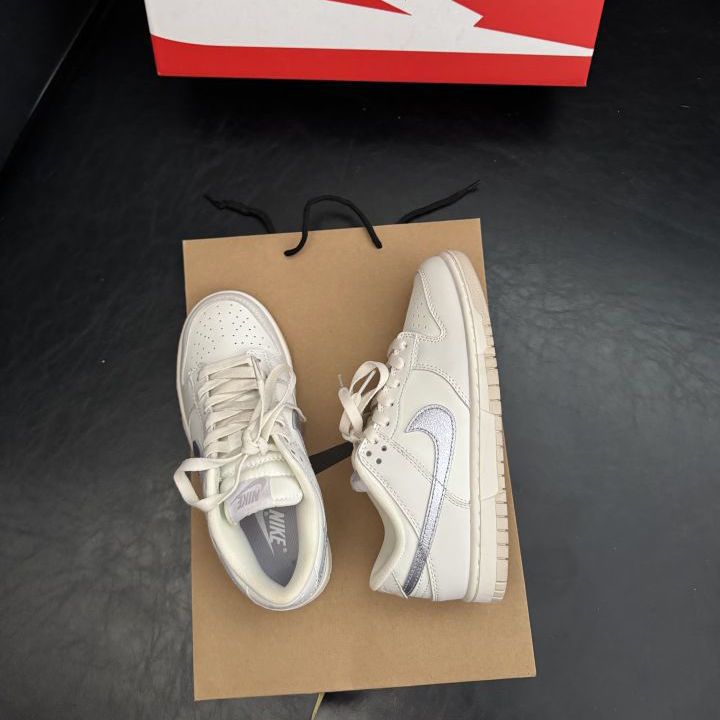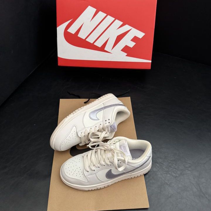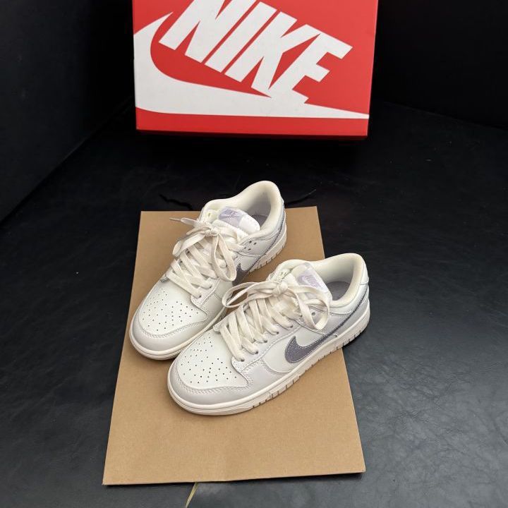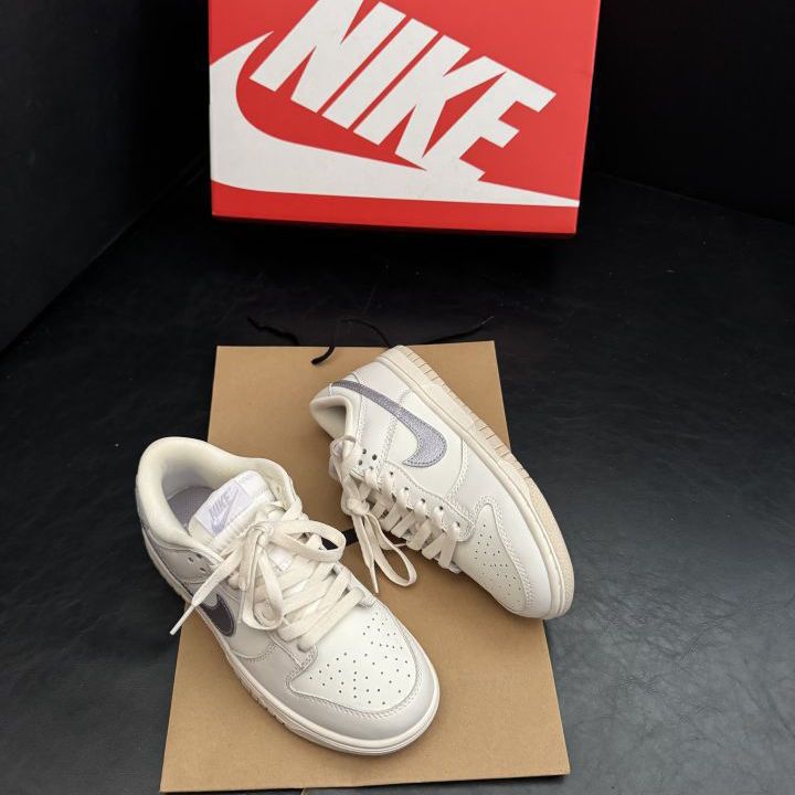 谁懂啊!这双Dunk Low真的长在我的审美点上🥹 奶fufu的米白色鞋面+自带光泽感的淡紫Swoosh 低调又高级,温柔到骨子里的氛围感直接拉满! - 材质是细腻的皮革,鞋头透气孔设计,夏天穿也不闷脚 - 淡紫勾在光下会有微微的金属光泽,细节感拉满 - 百搭到离谱!配牛仔裤、百褶裙、运动装都好看 - 女款专属尺码,小码姐妹也能轻松拥有 日常出街、上学、约会都能穿,温柔又不挑搭...