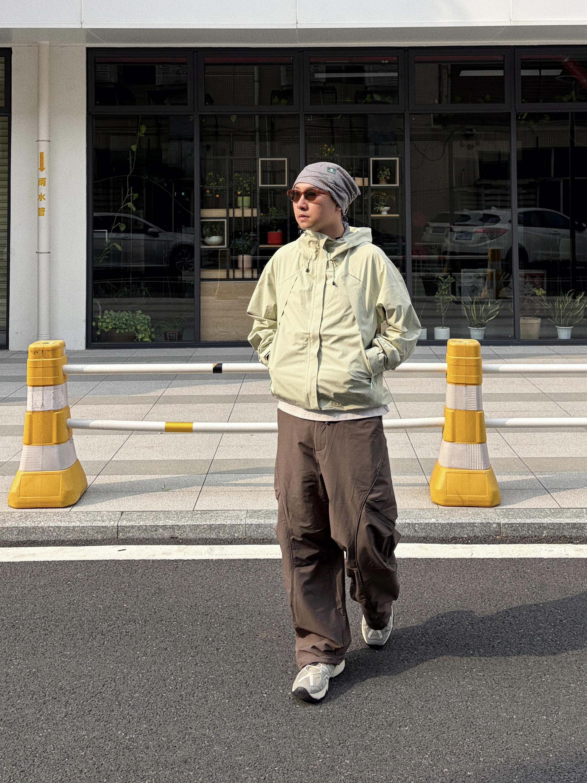 caps/top/pants:瞬时山野Monterest shoes:Camel 雨水较多的开春选择一款大雨防护级别的冲锋衣是很有必要的 强耐磨复合工艺不仅实穿还耐造 高颜值冲锋衣搭配一款流线型很赞的户外休闲长裤 真是完全不挑人 保型又保帅 作为长期主义日常通勤完全可以的(豚草绿这个颜色太适合开春了)