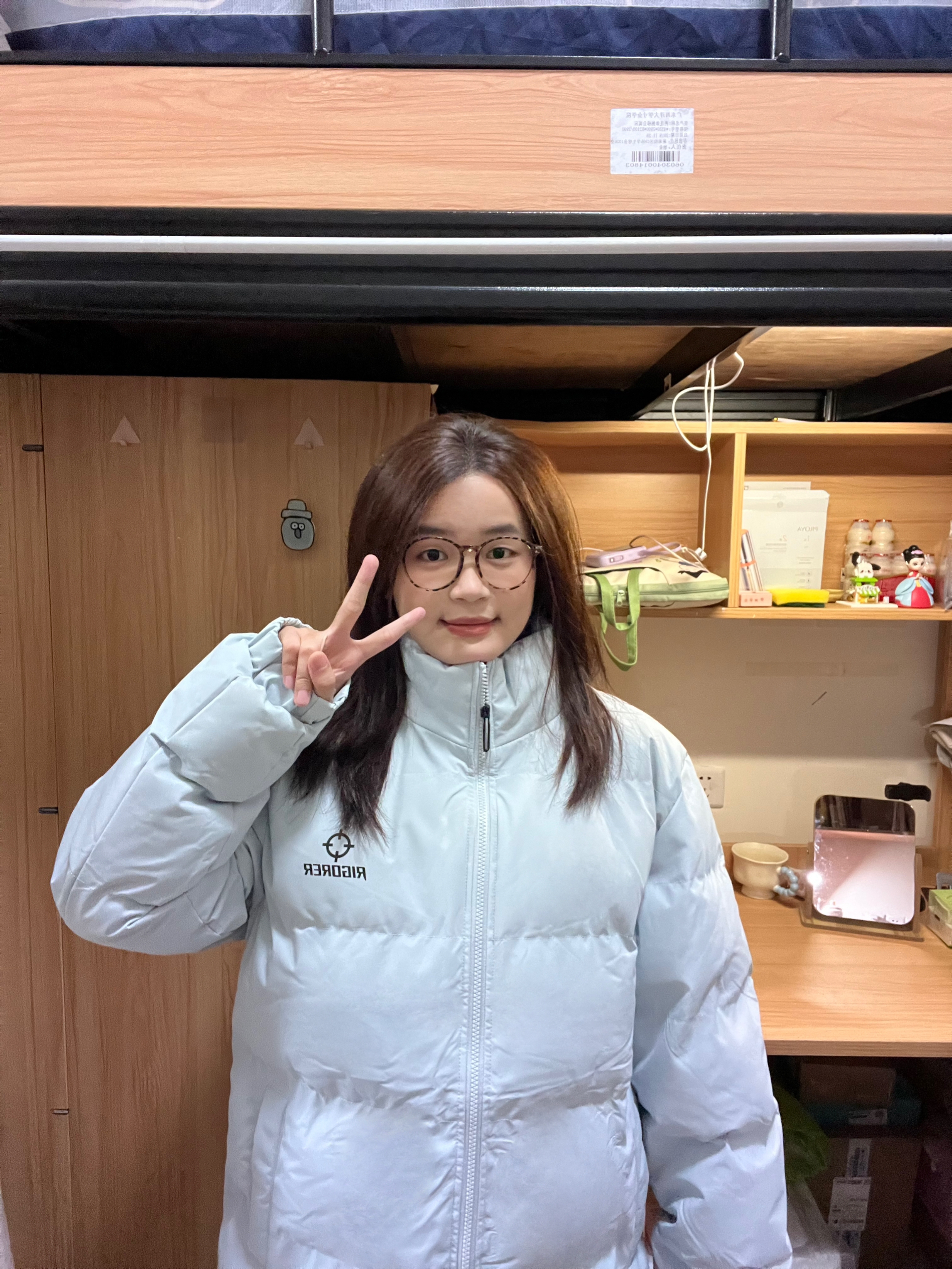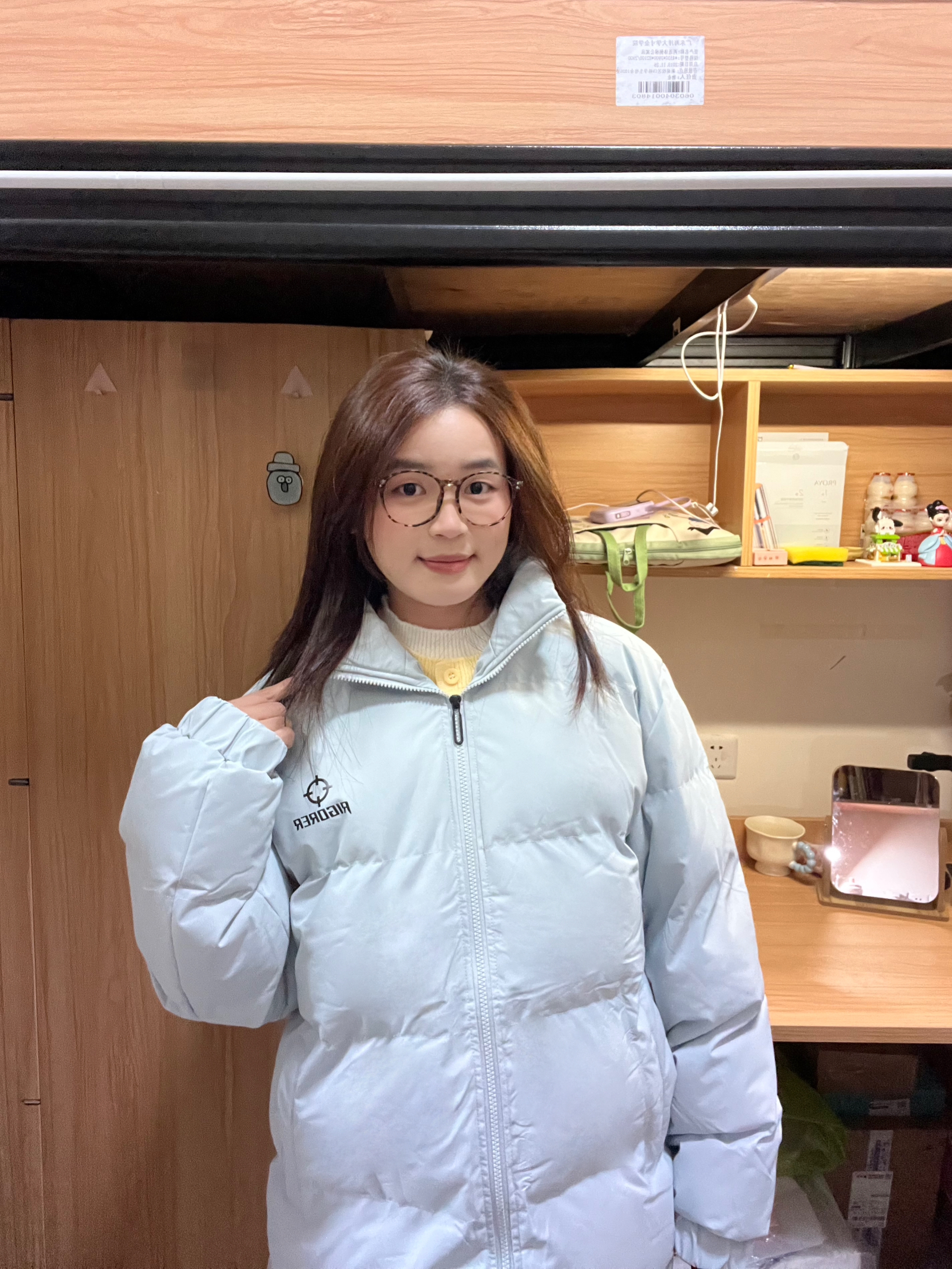 分享一件我平时穿的羽绒服呀~ 奶呼呼的蓝色 很显白哦! 而且羽绒服保暖效果很好~ 平时外出和宿舍穿都很暖和哦~ 而且上身很舒服呢!男生女生都可以穿哦 本人163/108入的L码哦~