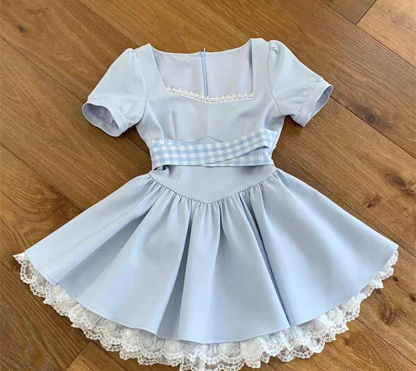 天啊,这个裙子真的太好看了😍 蓝色的衬托天空 非常好看,清新 漂亮的短裙和美女一起搭配哈哈哈